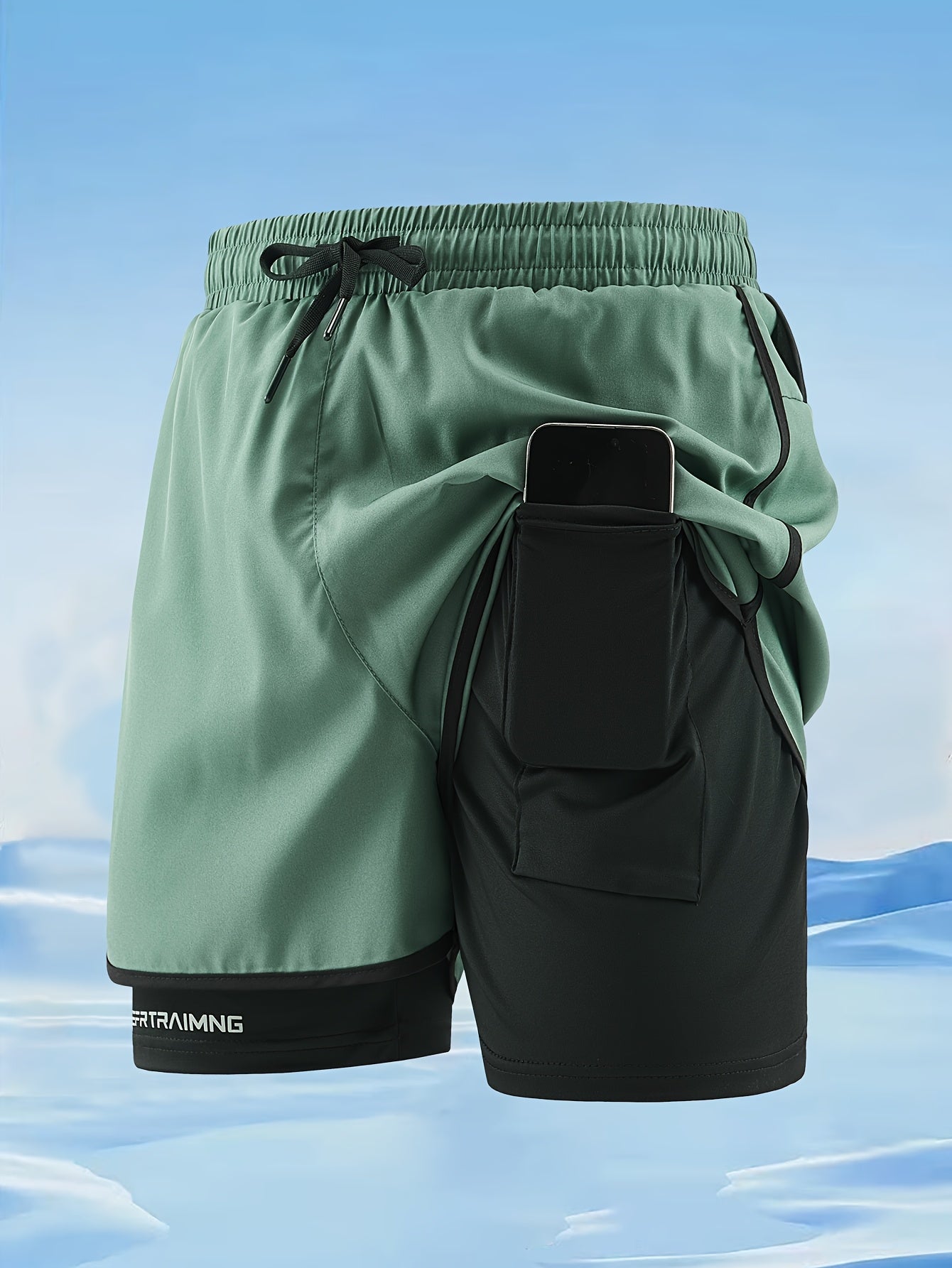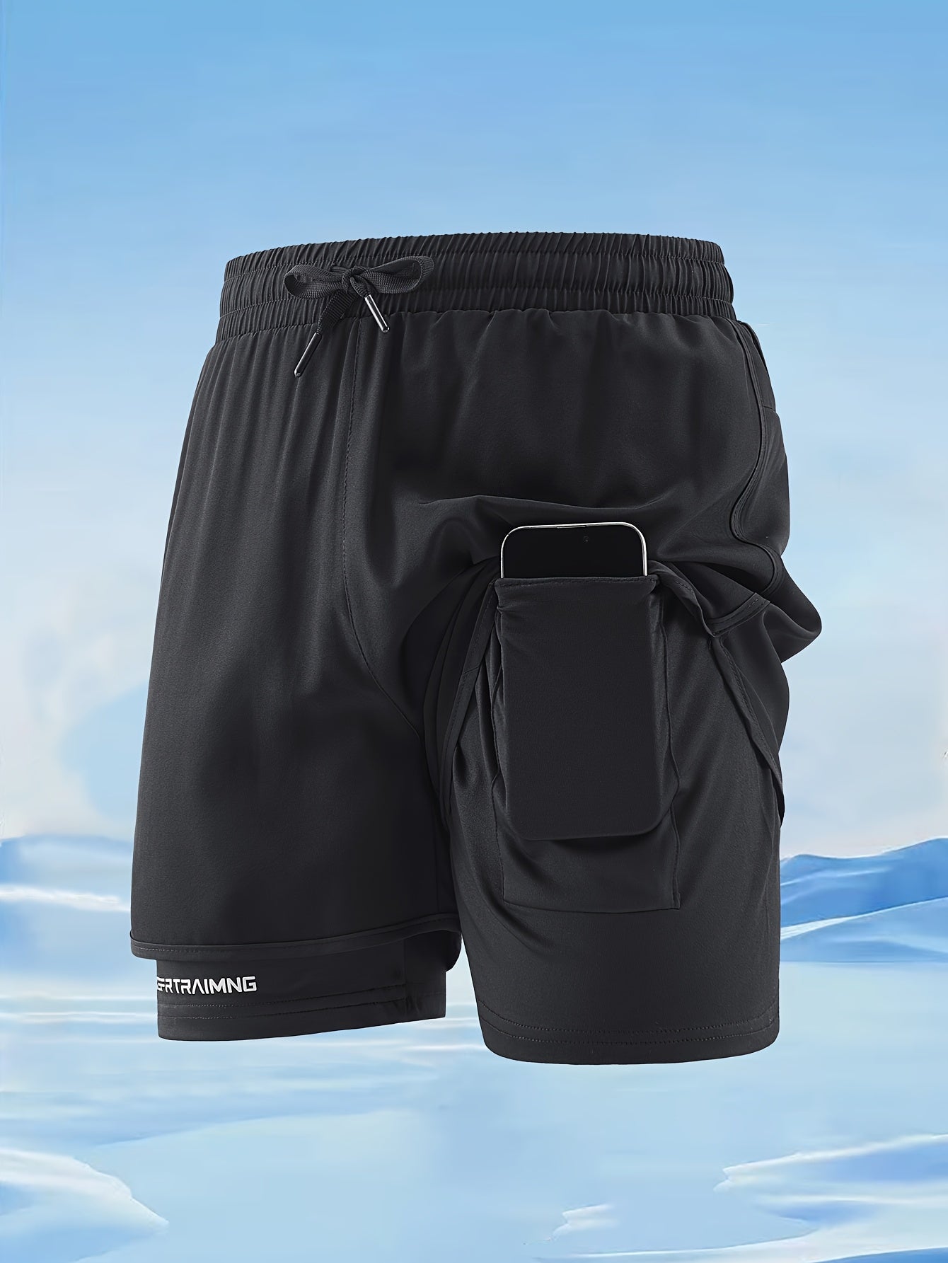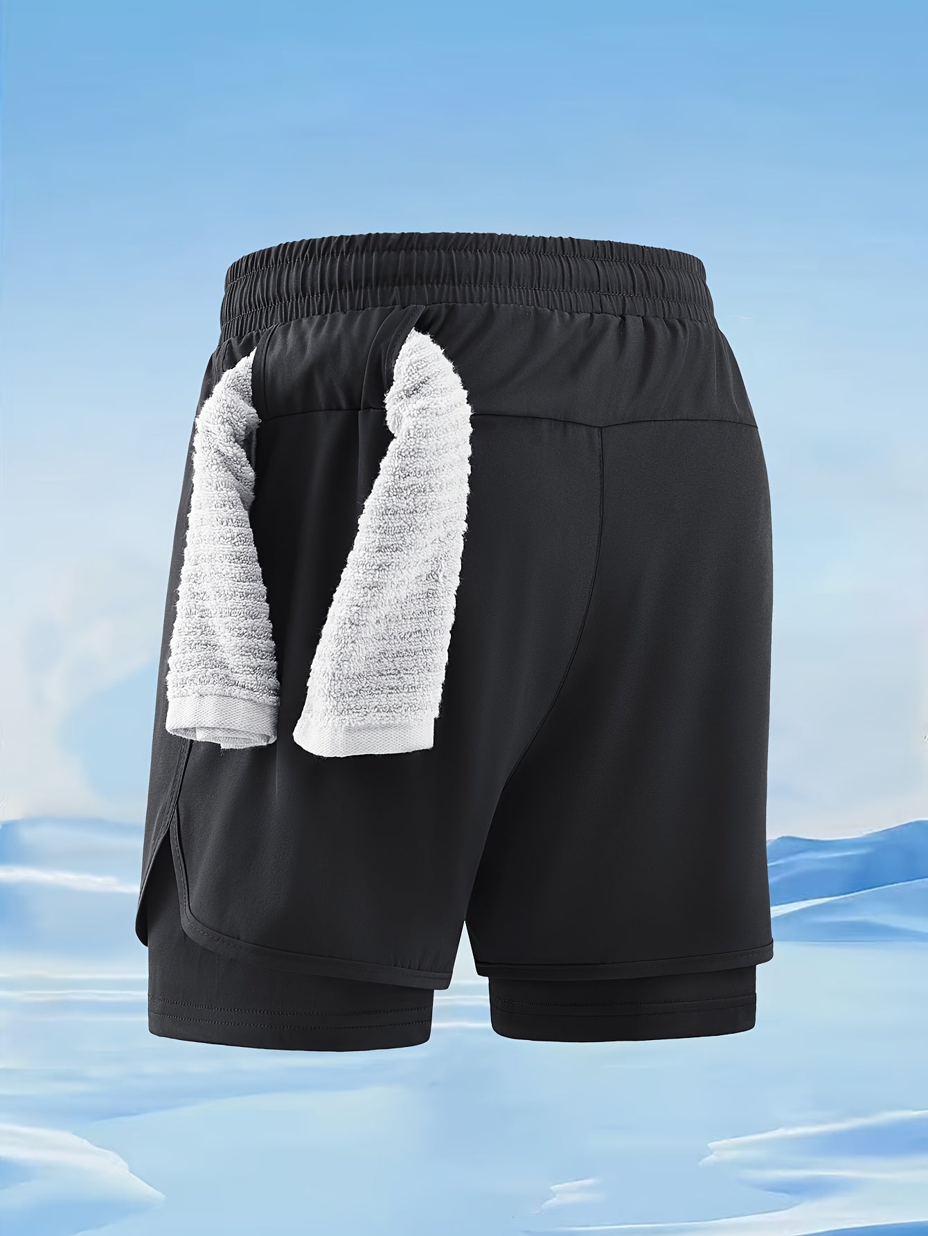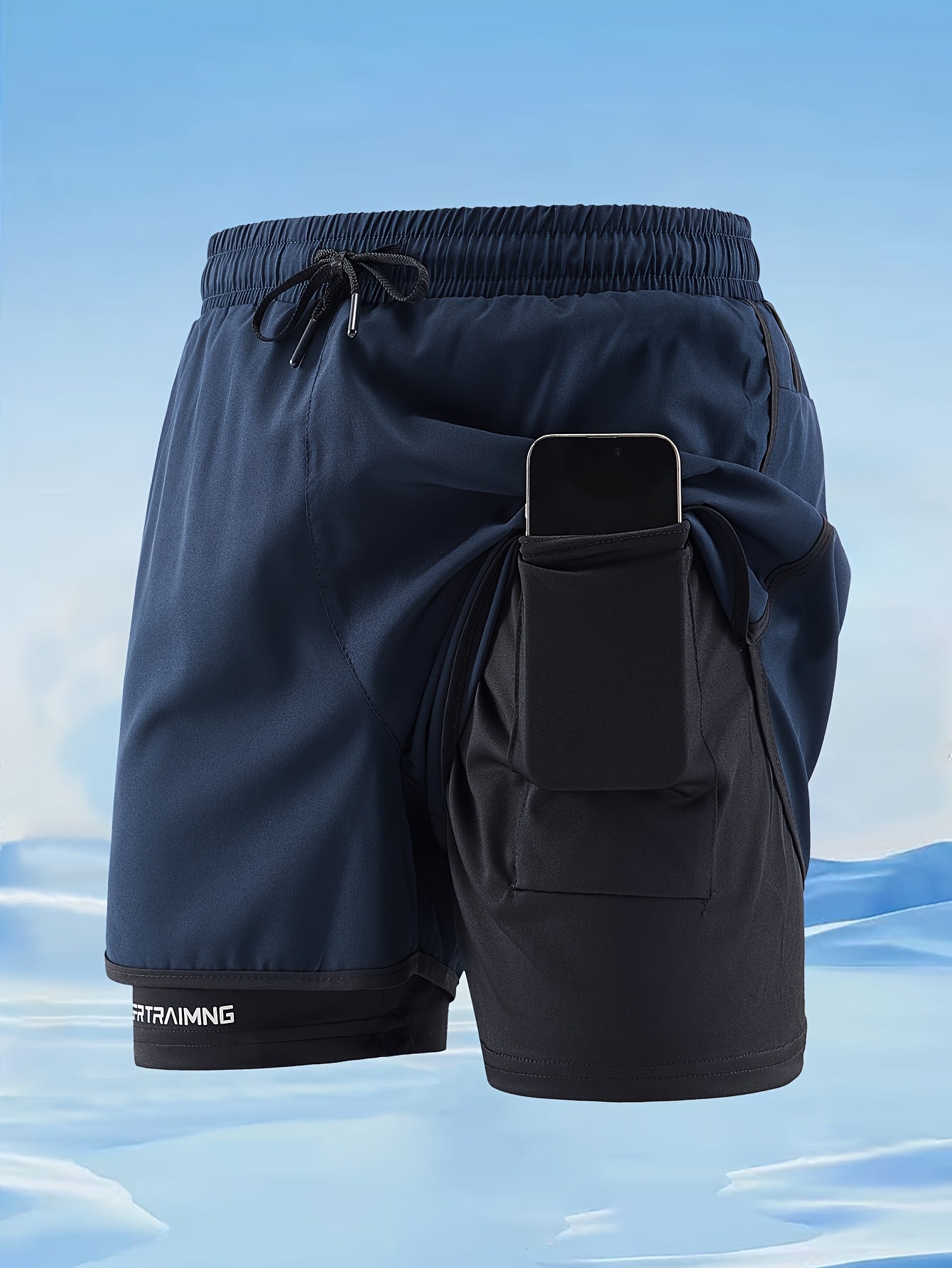 3pcs Men's 2-in-1 Running & Fitness Shorts - Breathable Polyester Blend, Elastic Waistband, Zipper Pockets for Gym, Training