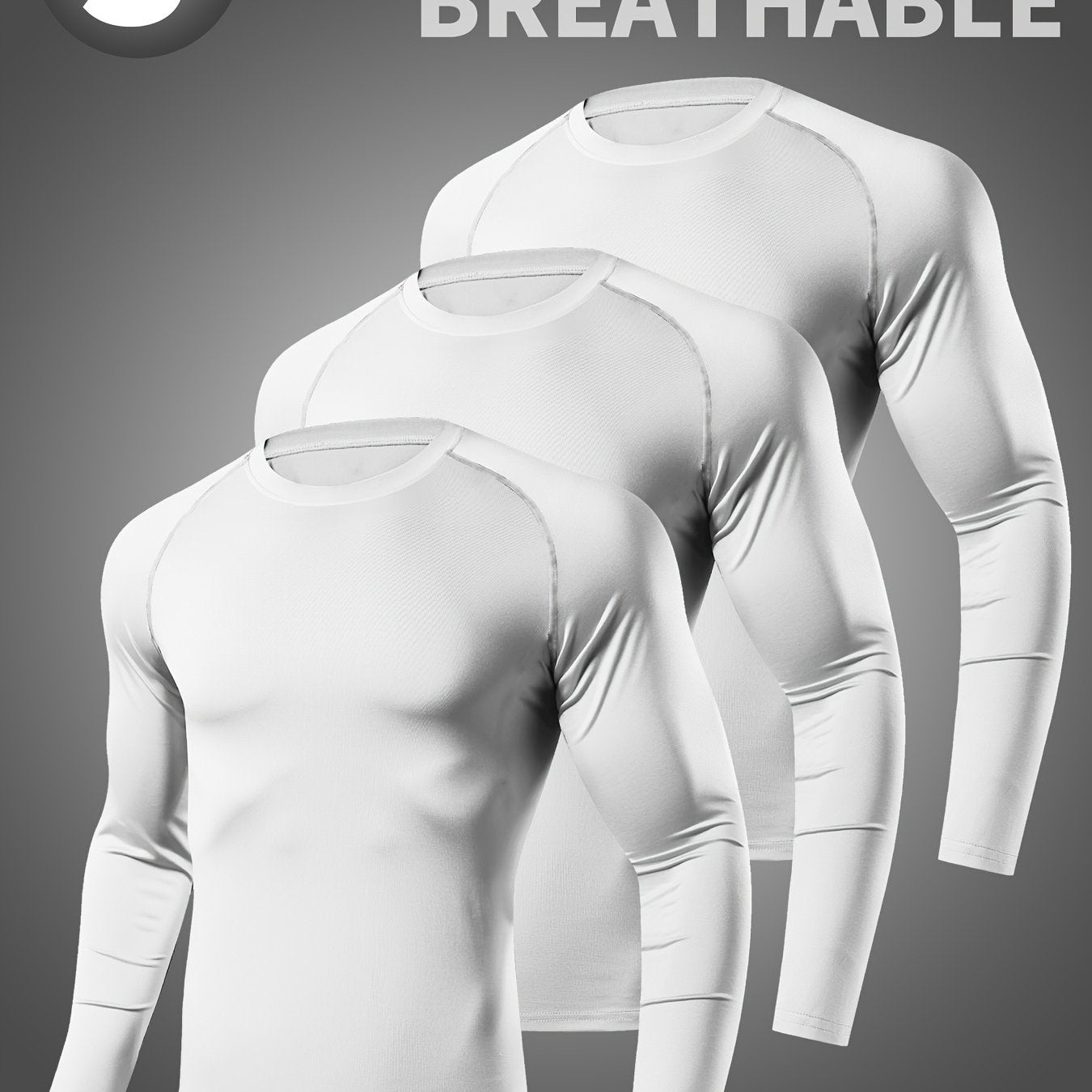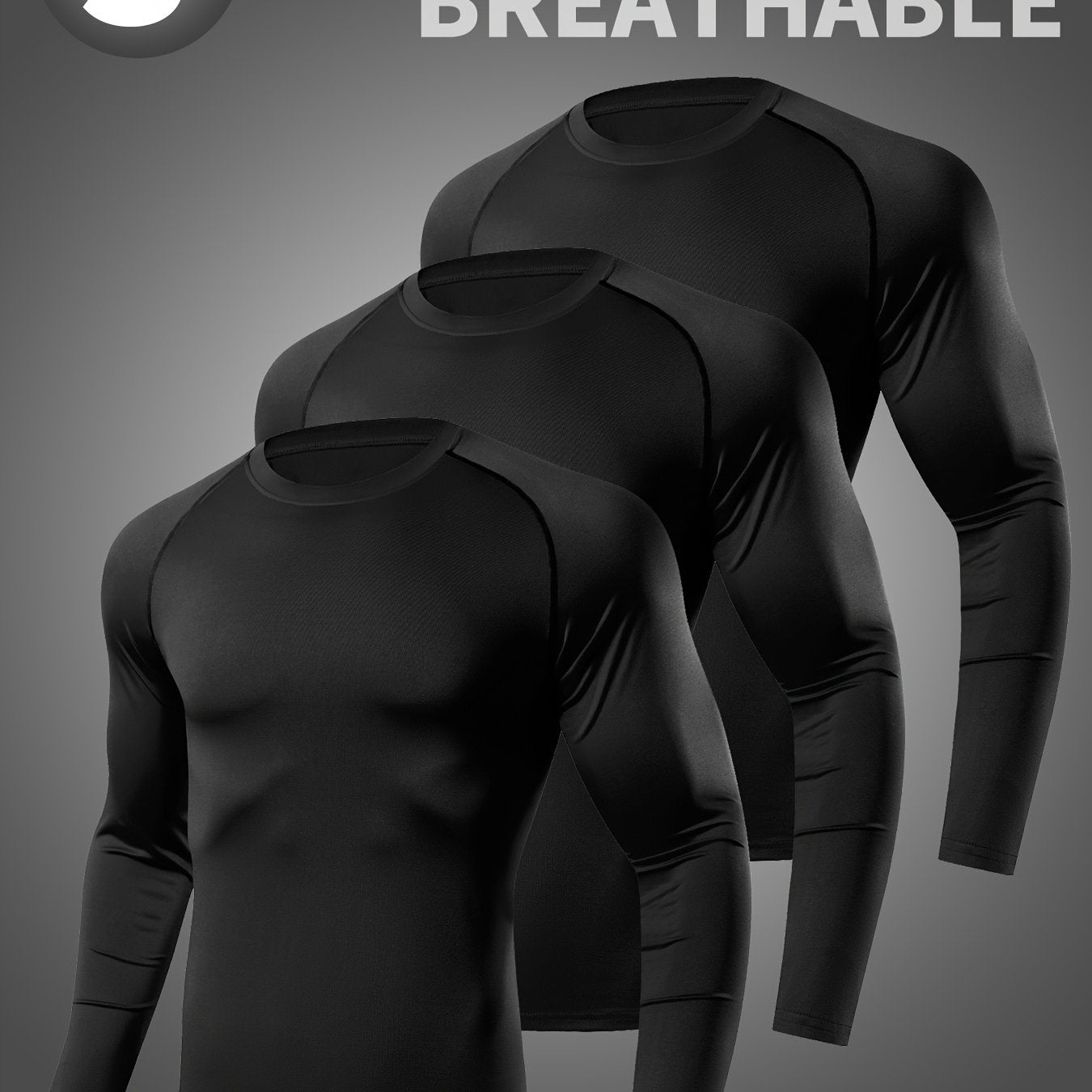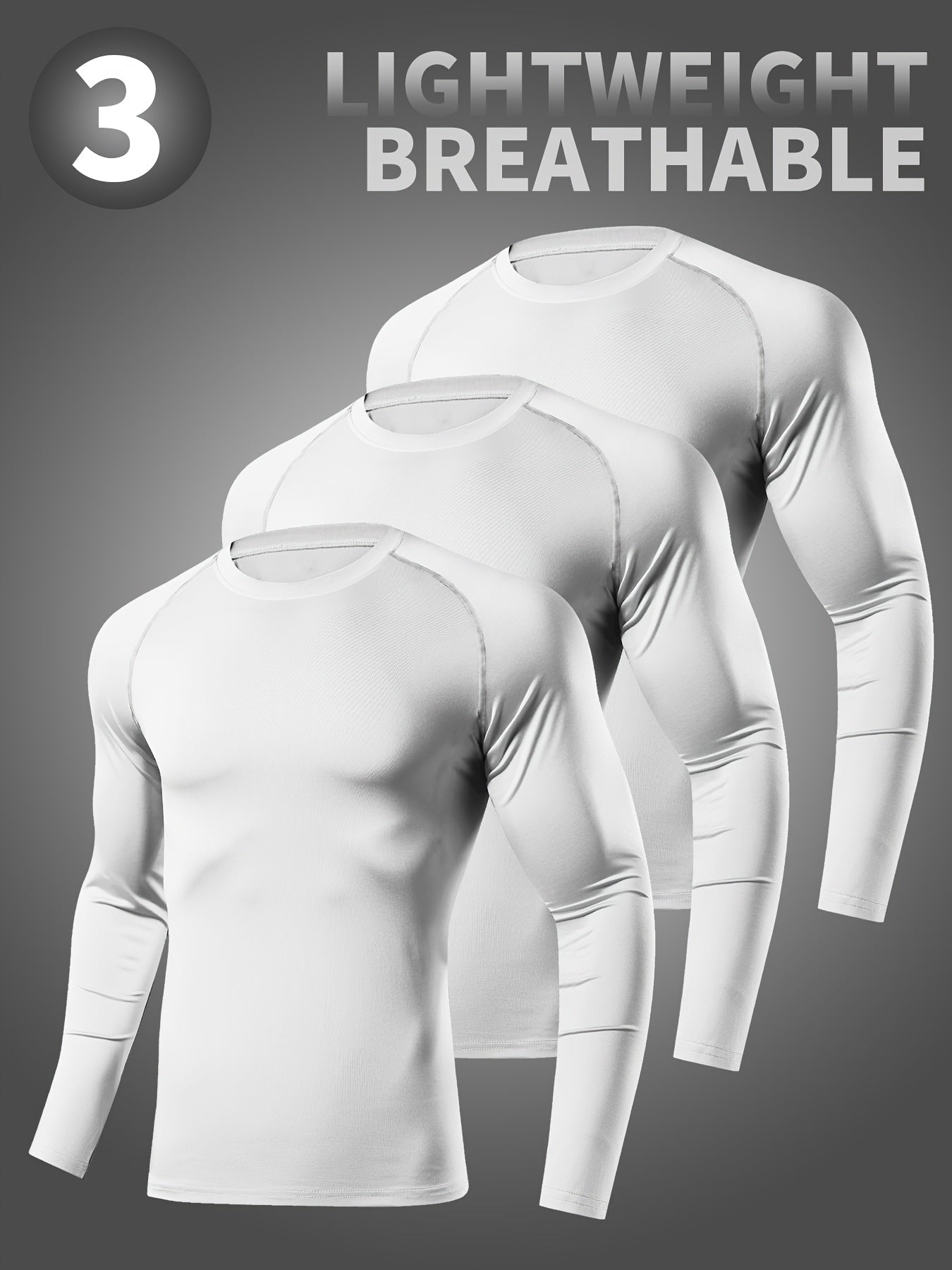 3pcs Men's Quick-Dry Breathable Long Sleeve Athletic Shirts - Solid Color, Sweat-Wicking, High-Stretch Polyester for Running, Training, Basketball, Cycling & Outdoor Sports
