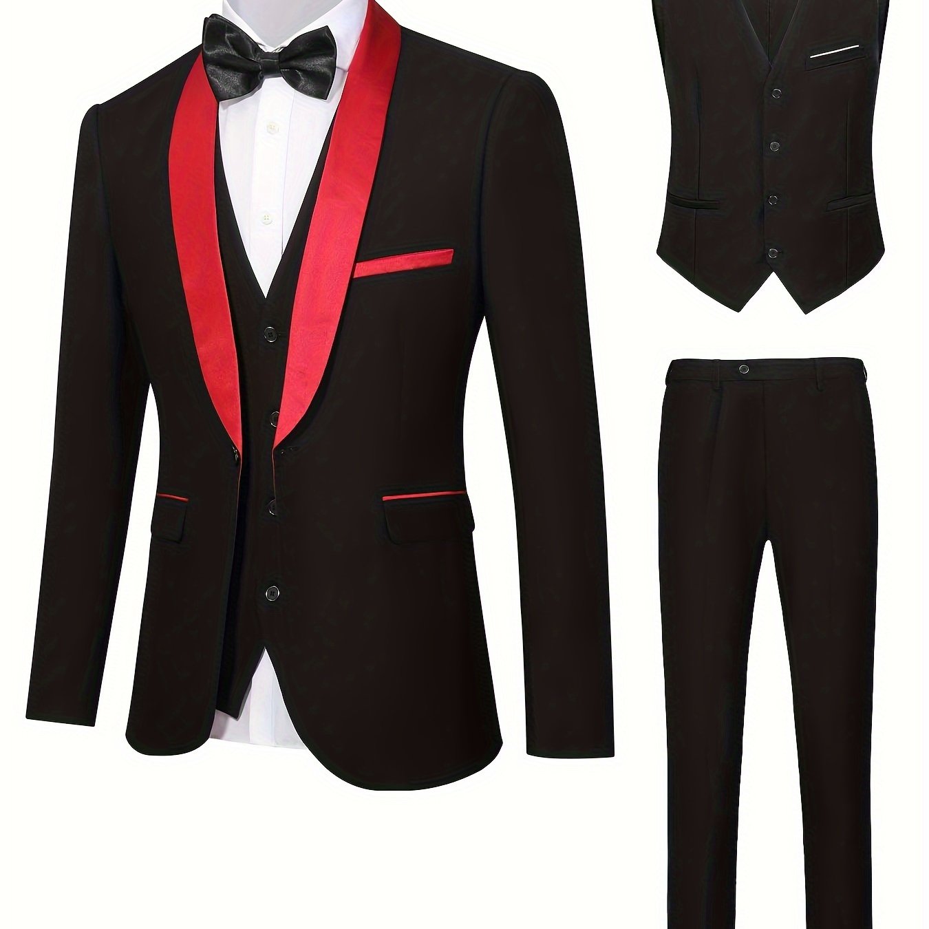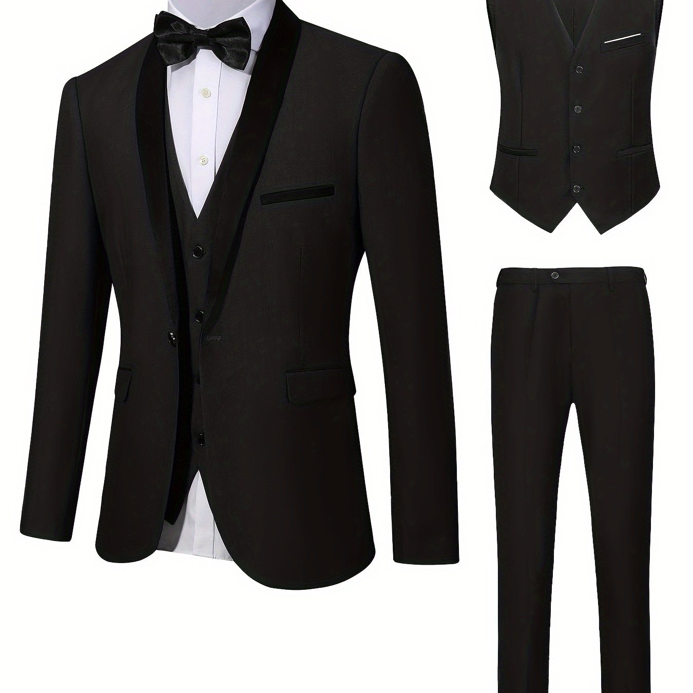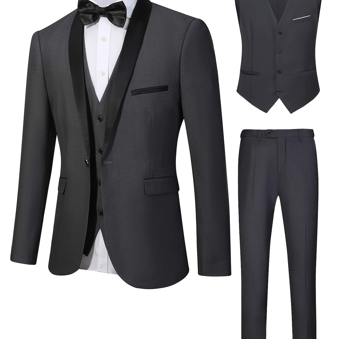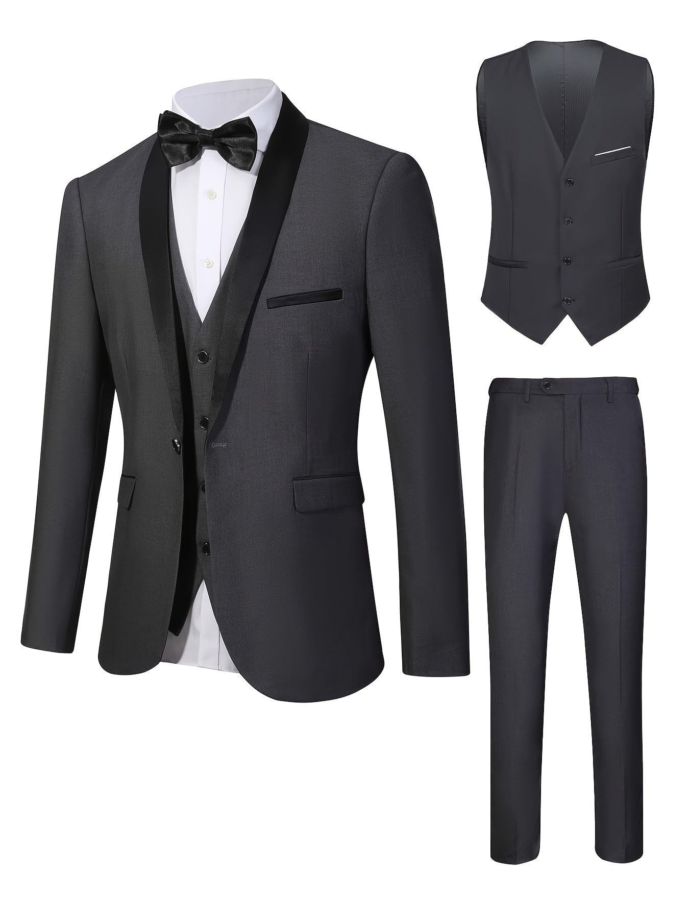 3pcs Suit Set - Stylish & Premium-Quality for Wedding, Party Or Formal Events - Classic Lapel Tuxedo, Comfort-Fit Waistcoat & Pants Ensemble