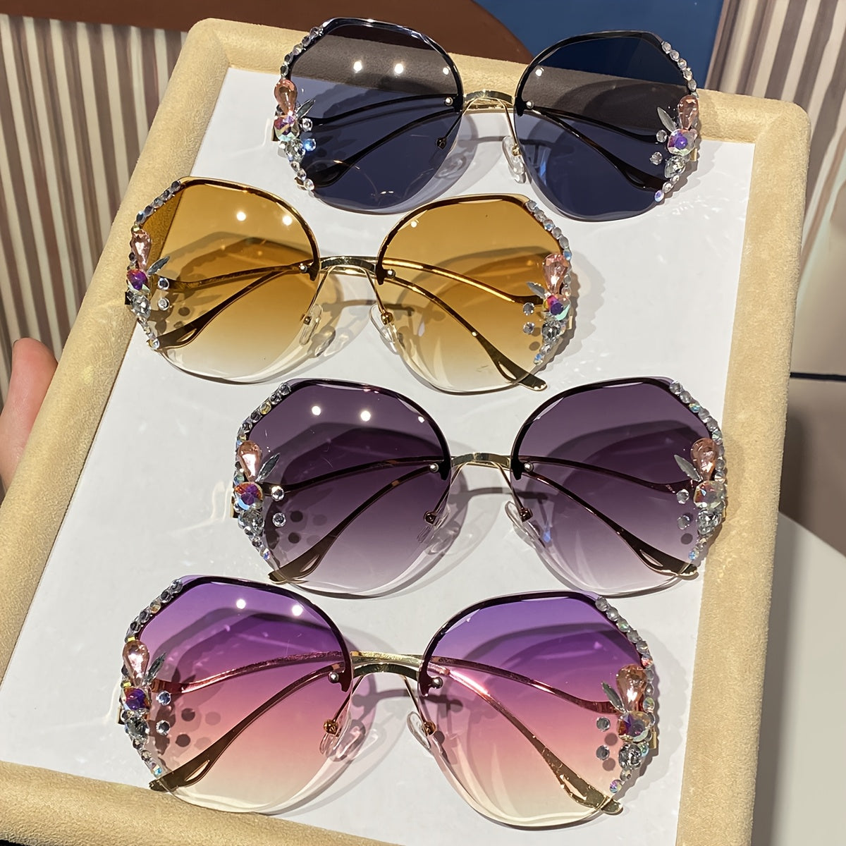 4 Pairs of Women's Metal Round Frameless Dot Heavy Work Exquisite Light Luxury High Dopamine Elegant Temperament Fashion Glasses Suitable for Daily Hot Style Matching