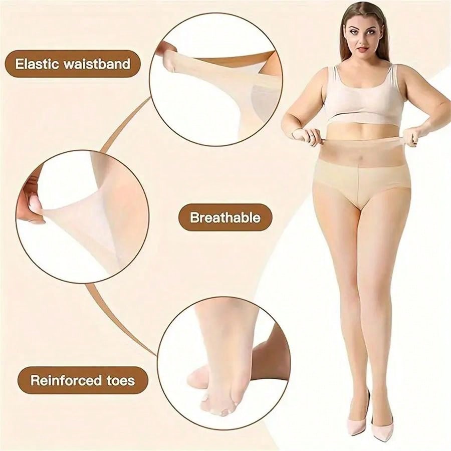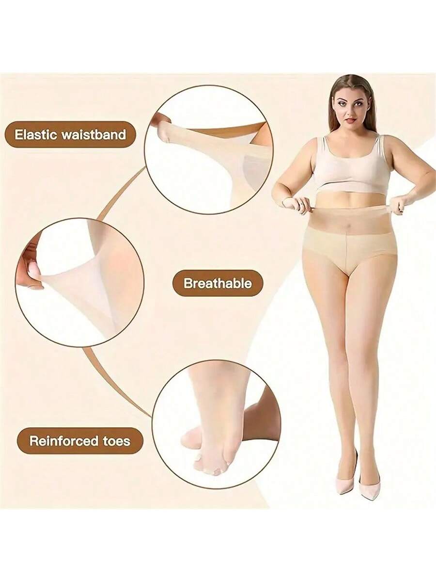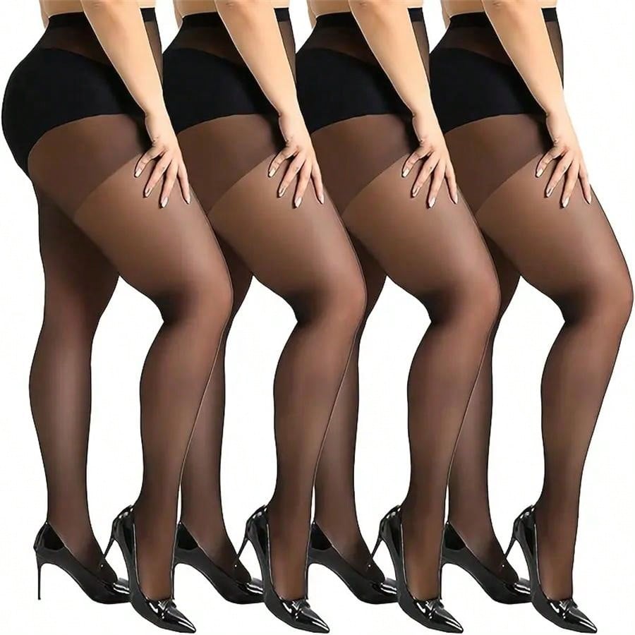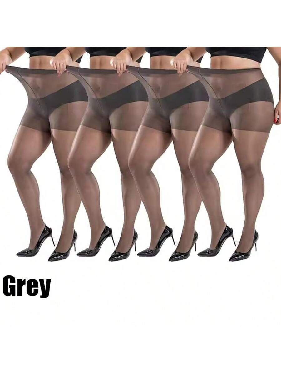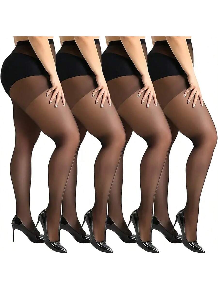 4 Pairs Plus Size Women's Lightweight Breathable High Waisted Elastic Stockings, Leg Shaping, Fashion Versatile