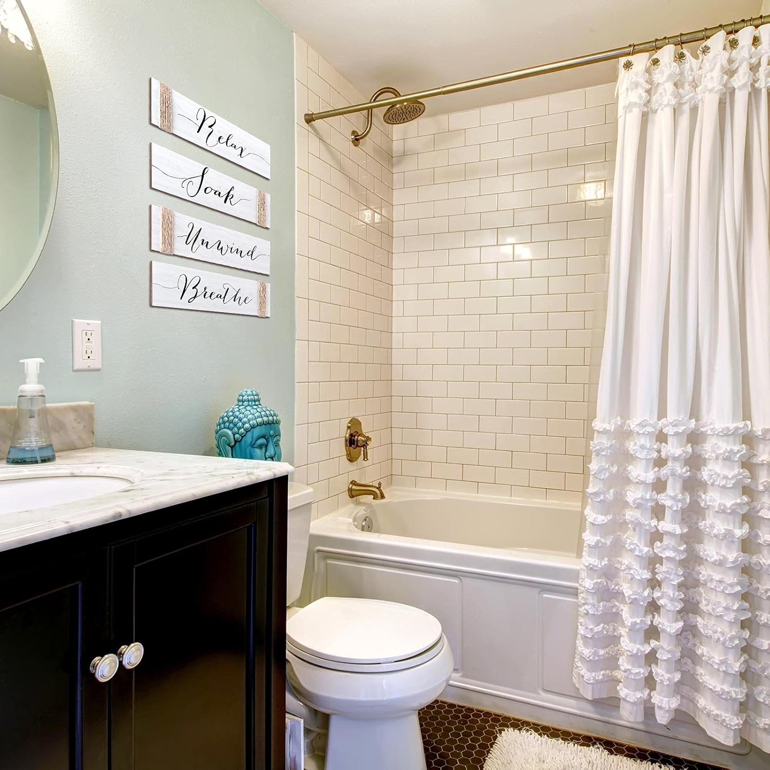 4 Pieces Farmhouse Bathroom Decor Wall Art Bathroom Sign Rustic Bathroom Decor Relax Soak Unwind Breathe Wood Sign for Home Spa Bathroom Decor, 11.8 x 3 Inch (White)