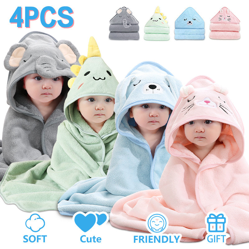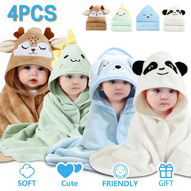 4PCS Hooded Baby Towels for Newborn Baby Bath Towel with Hood for Babies, Infant, Toddler and Kids,Soft and Absorbent Newborn Essen,tial