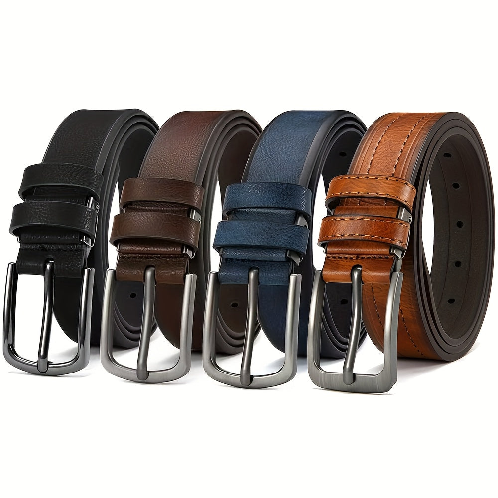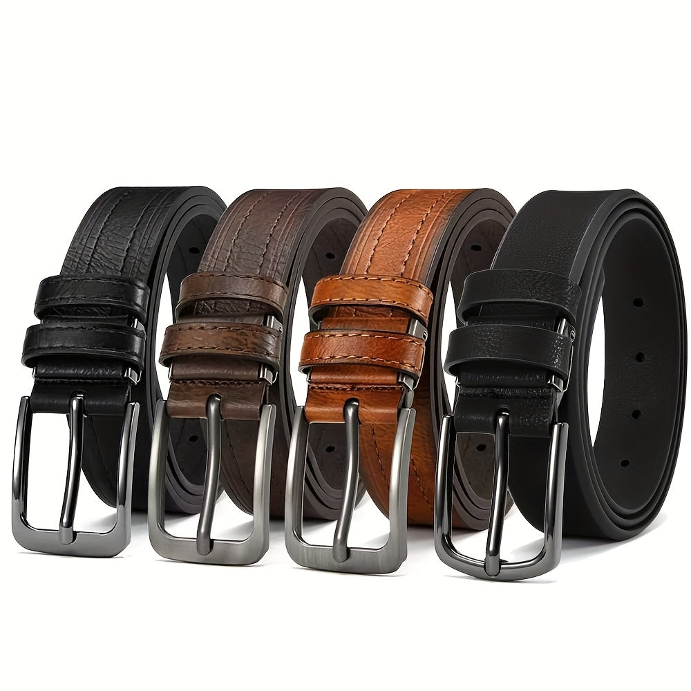 4pcs Men'S Casual Vintage Leather Belt - Durable, Strong, and Breathable Perfect for Business Professionals, Mature Men, and Fashion Enthusiasts - Ideal Gift Accessory