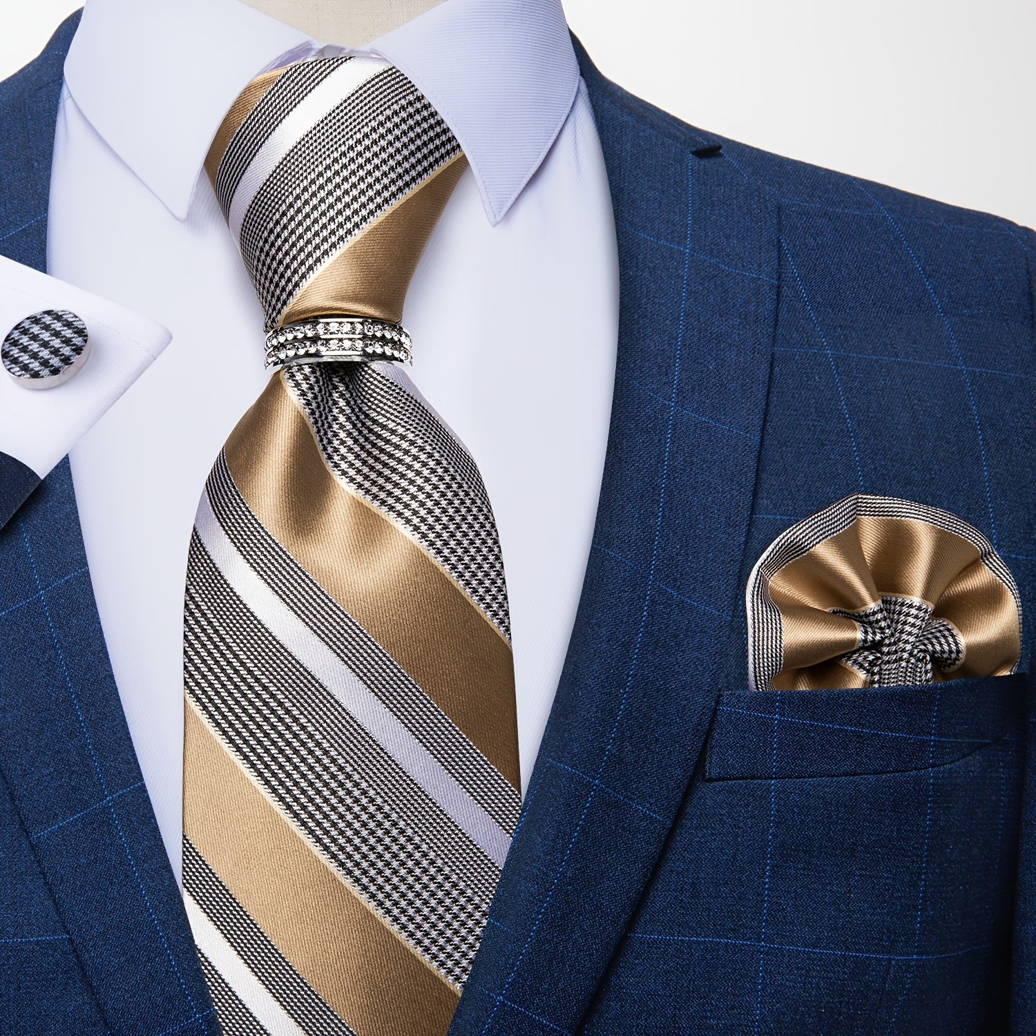 4pcs/Set Men'S Tie Silk Necktie And Pocket Square Cufflinks Ring Set For Wedding Festival