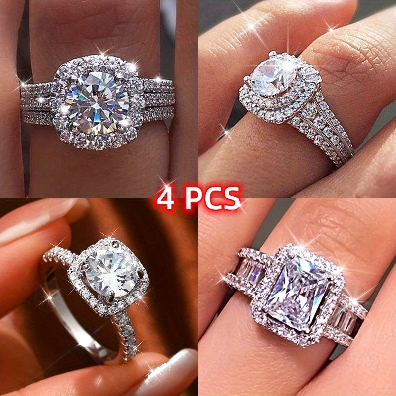 4pcs Sparkling Silveryy Jewelry Ring Womens Rings Synthetic Zirconia Rings For Men/Women Engagement Wedding Band Promiss Rings Merry Christmas/Valentine'S Day/Mother'S Day/New Year'S Eve/ Elegant Anniversary Gift For Her