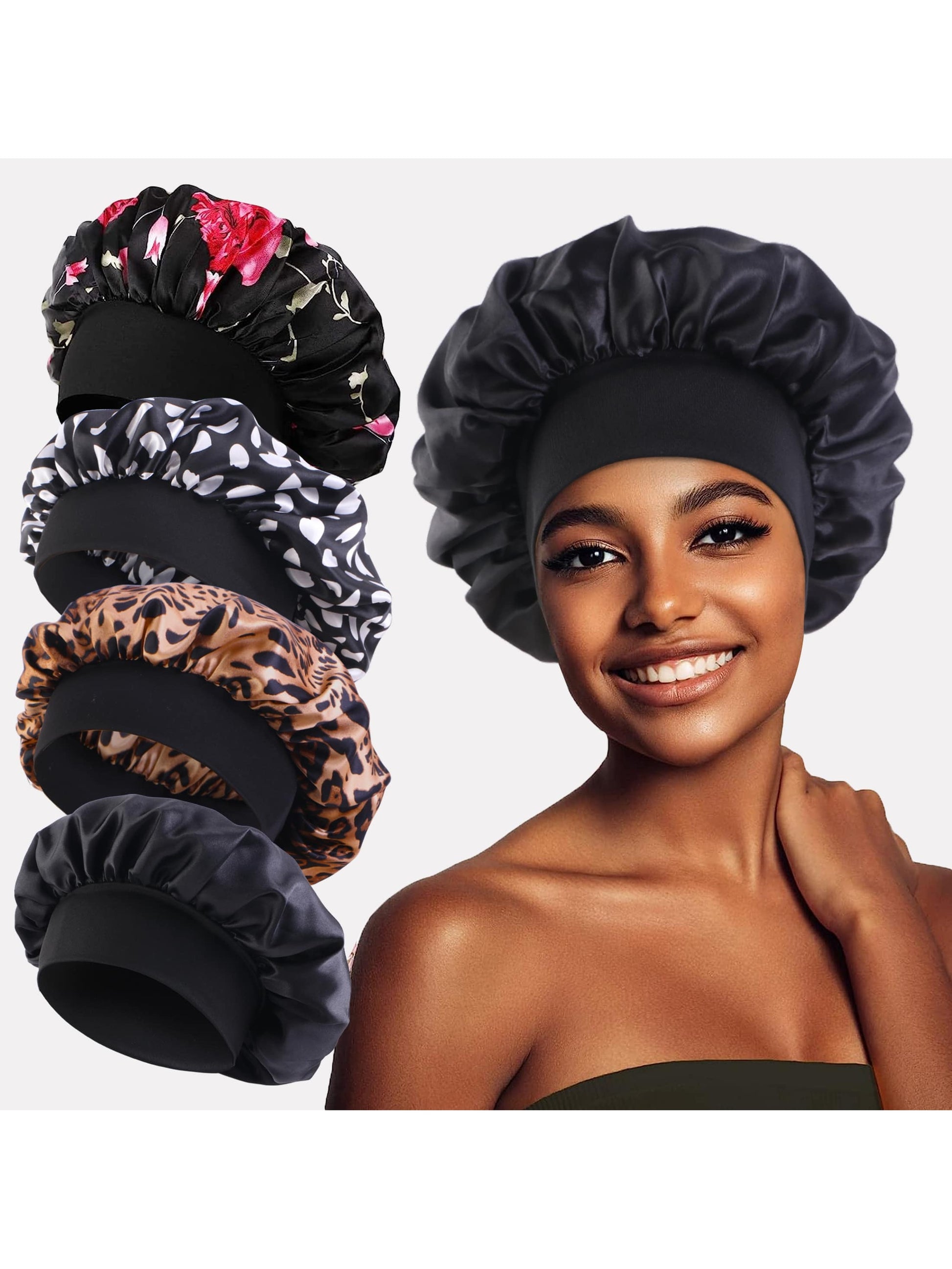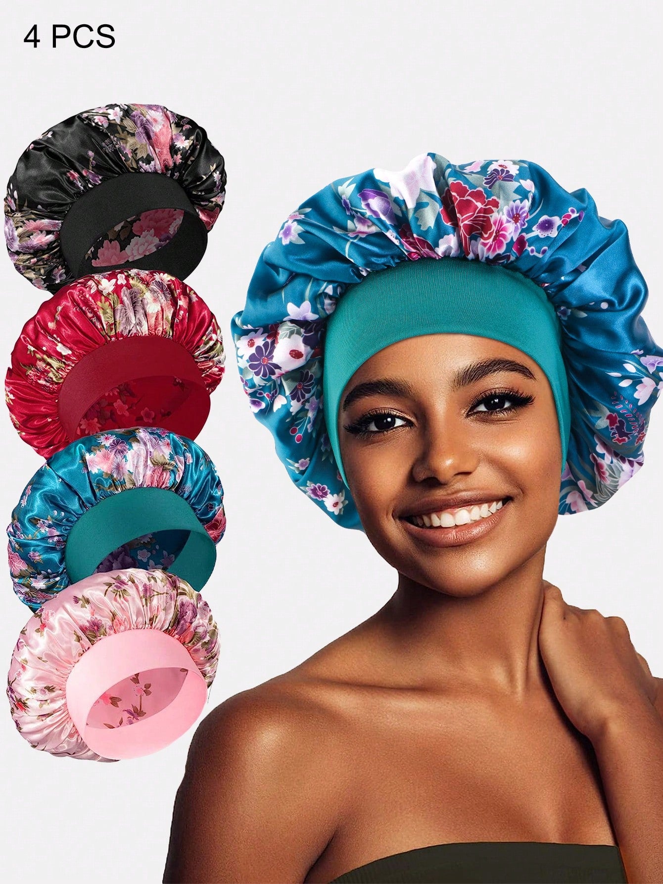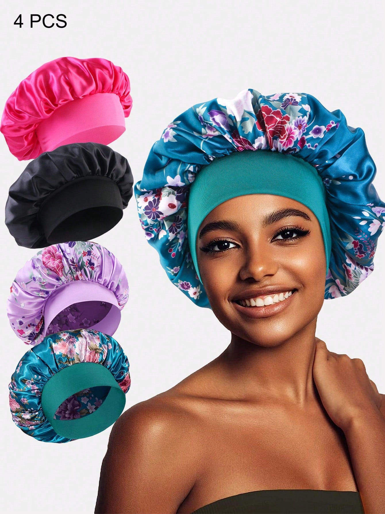 4pcs Women's Multicolor Elastic Wide Band Slouchy Beanie Cap Headband, Suitable For Daily Use Silk Bonnet Satin Bonnet