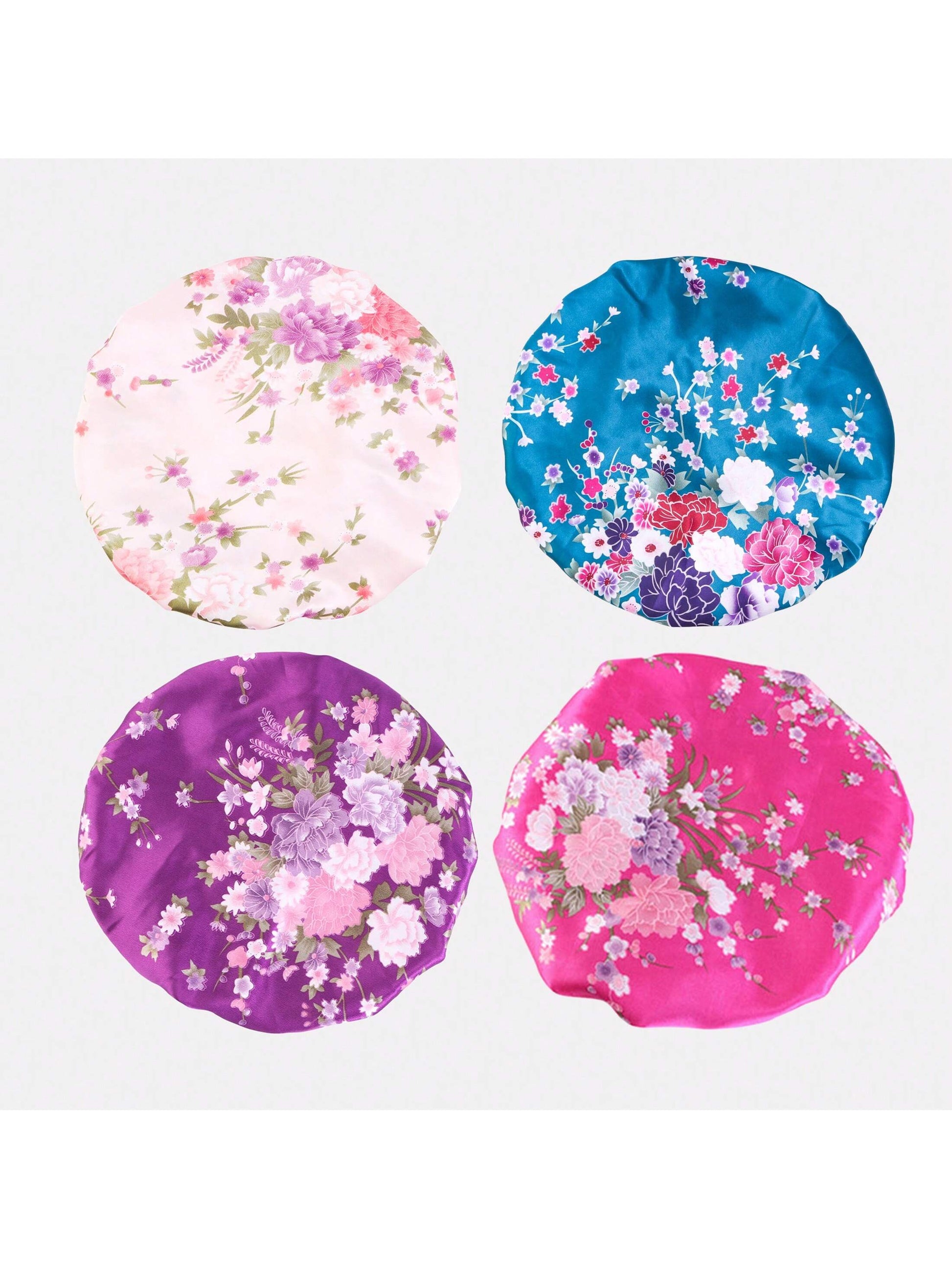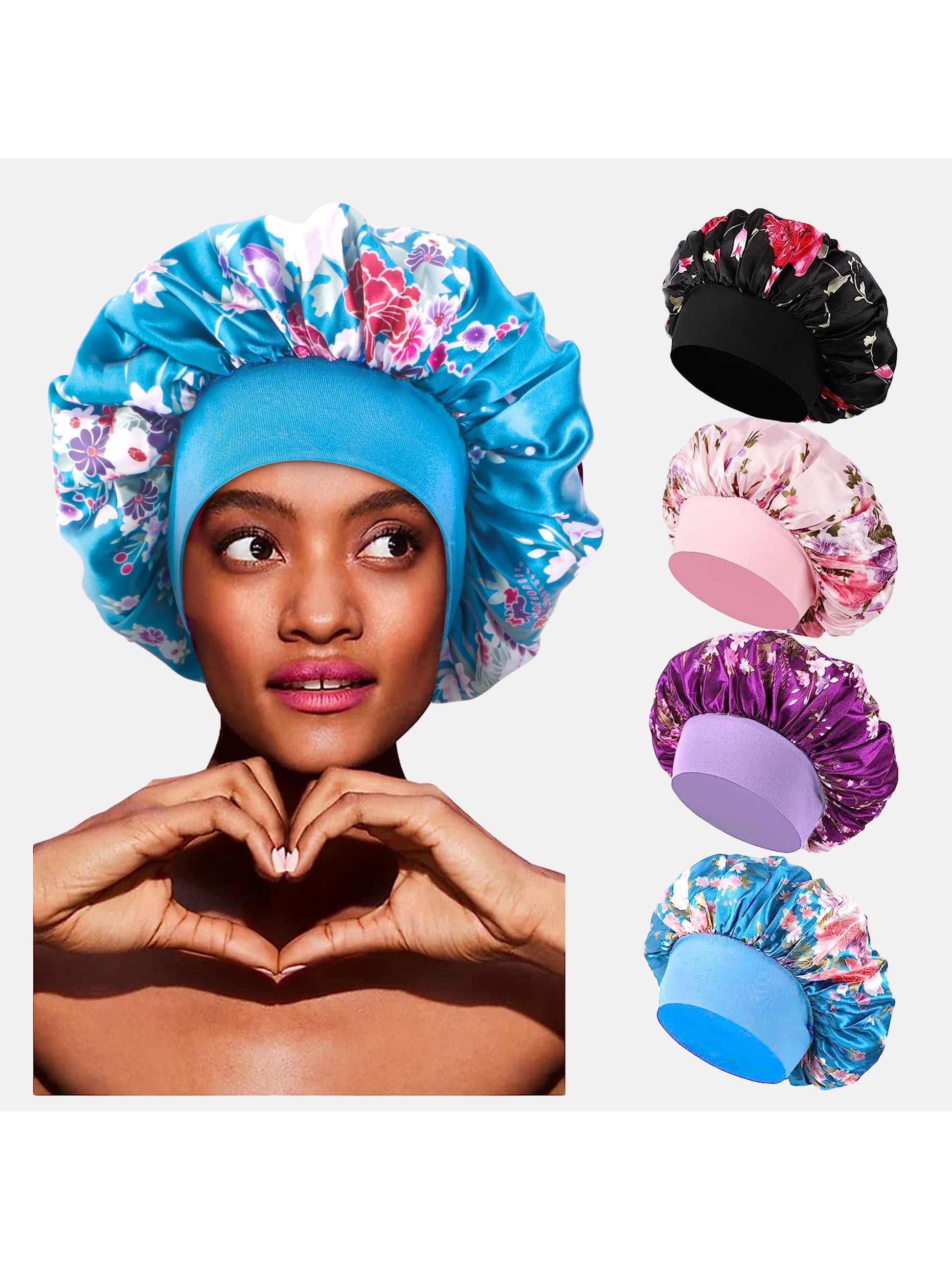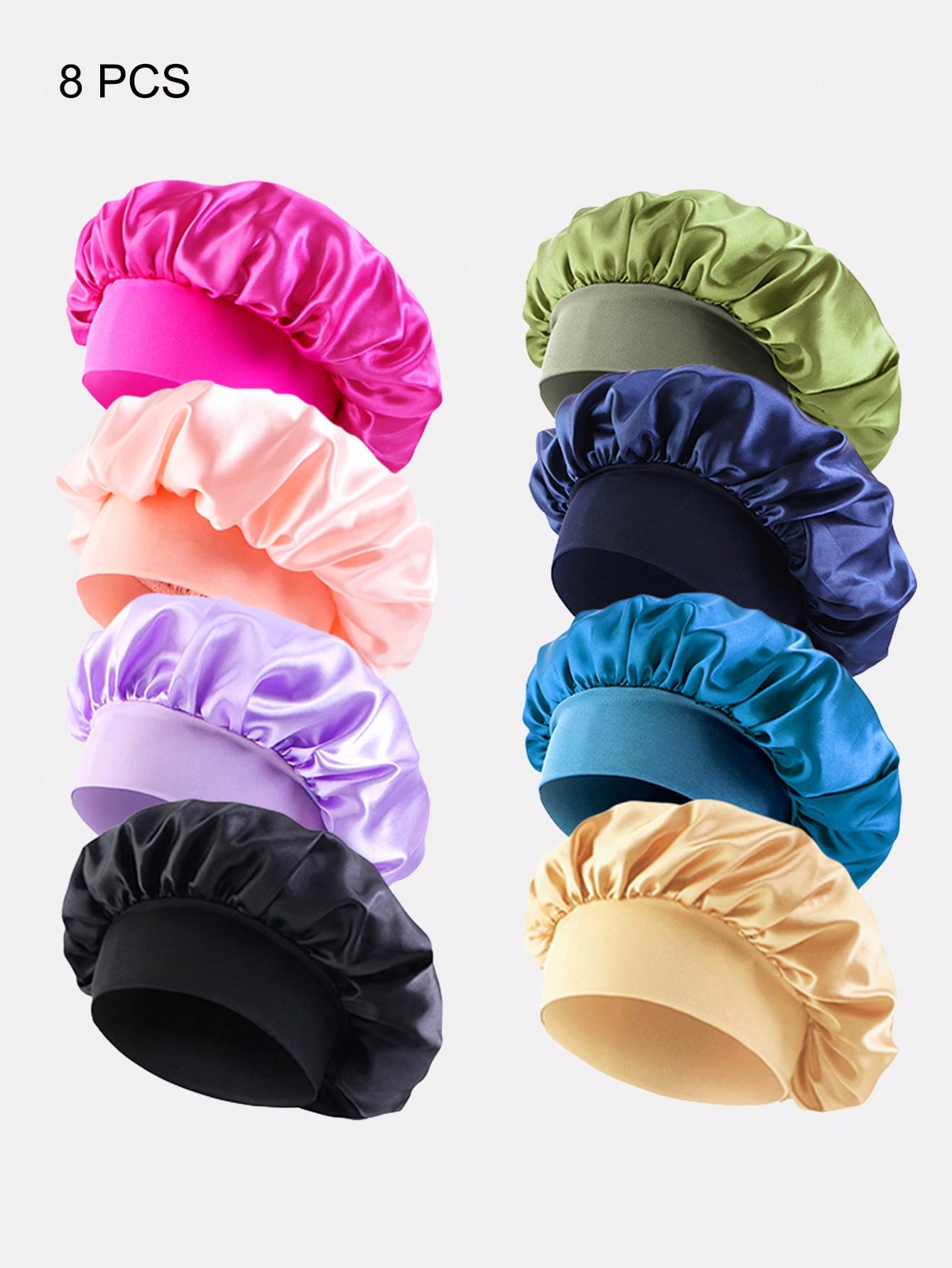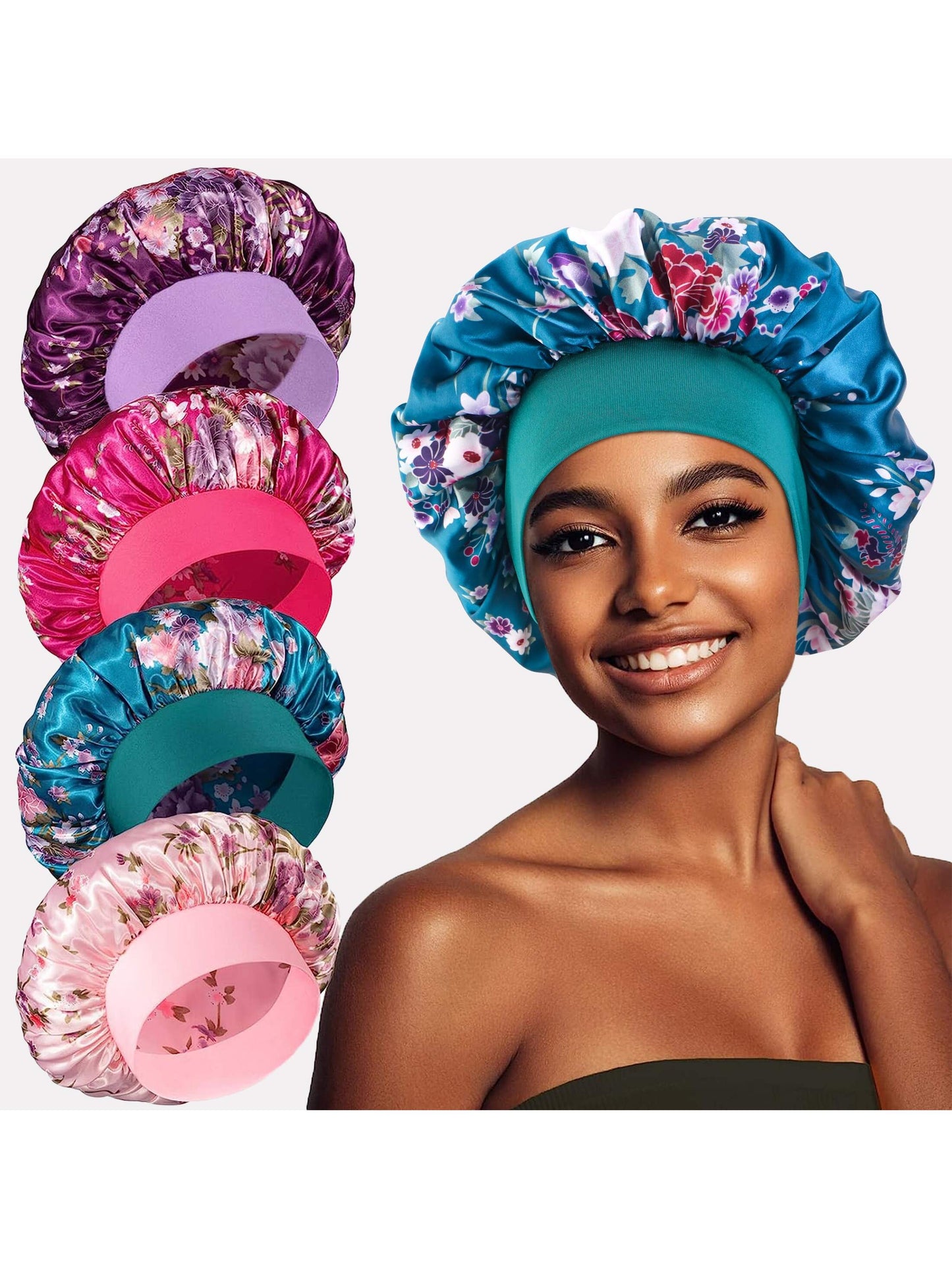 4pcs Women's Multicolor Elastic Wide Band Slouchy Beanie Cap Headband, Suitable For Daily Use Silk Bonnet Satin Bonnet