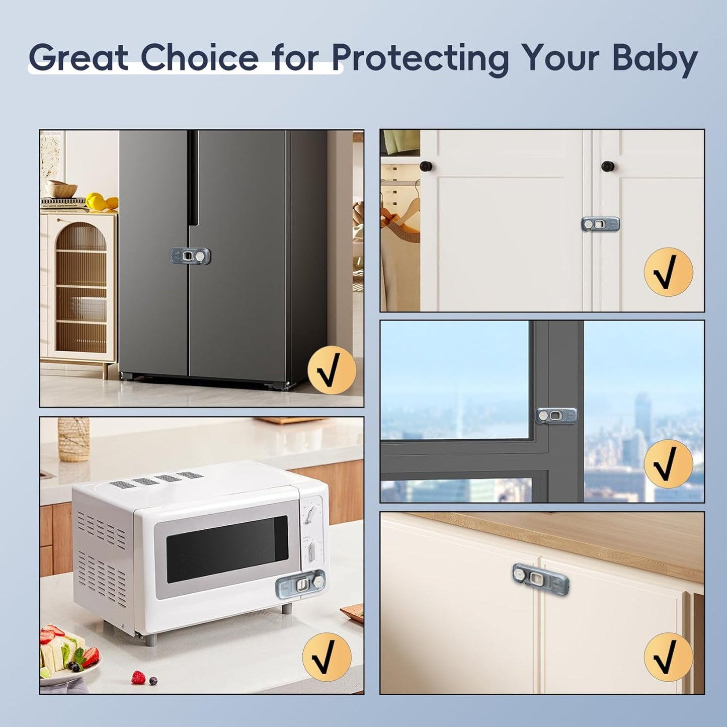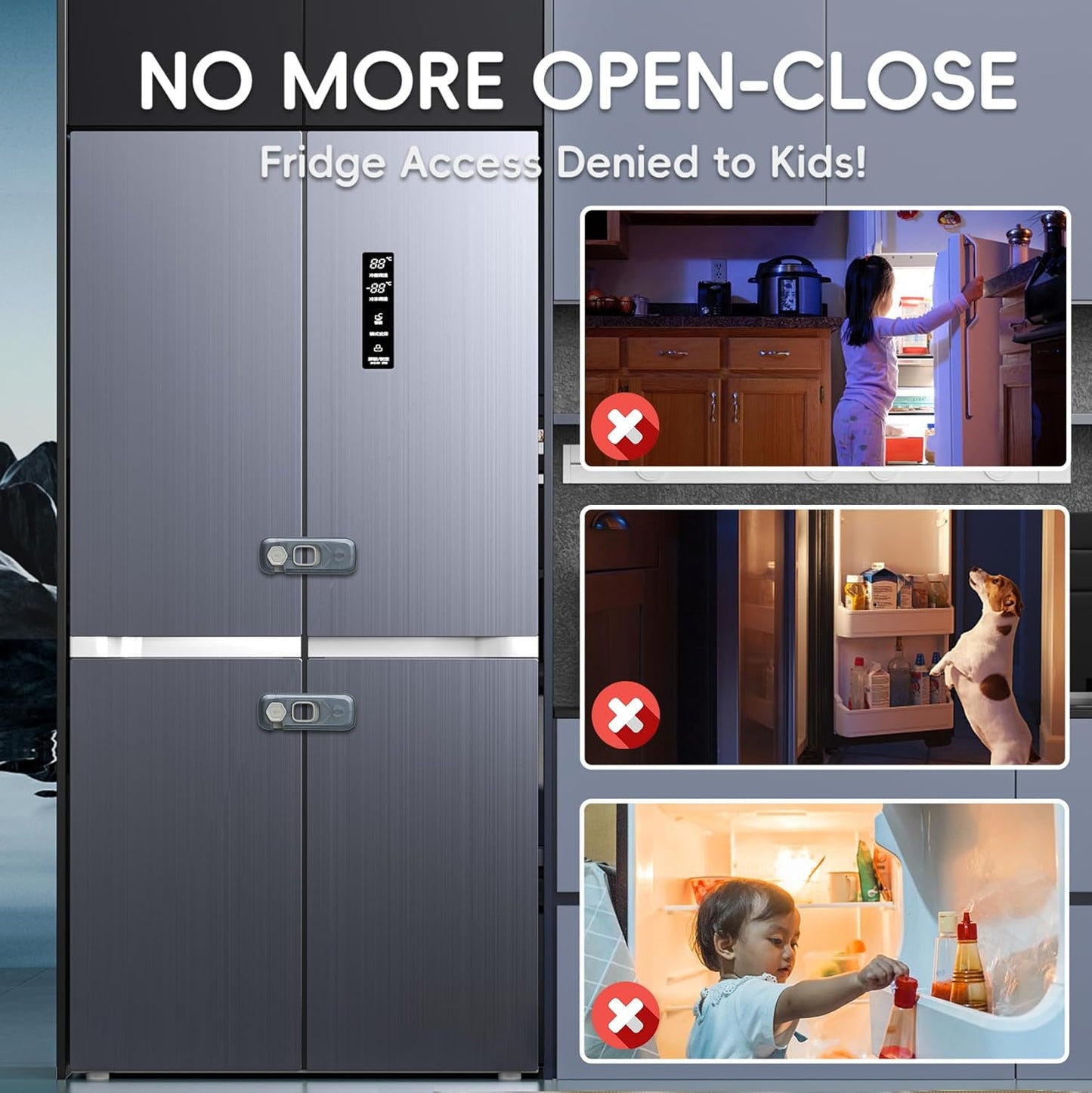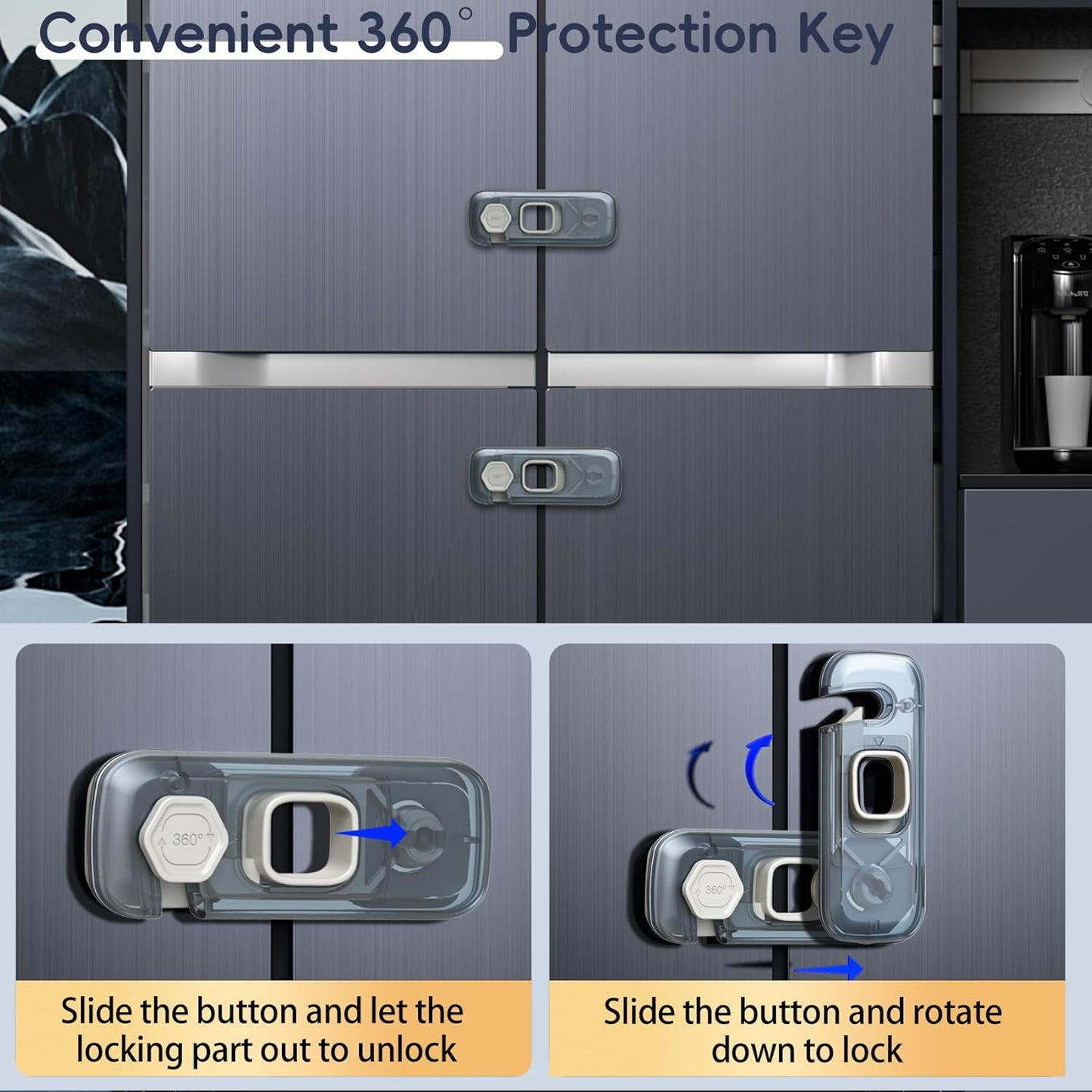 - KEEP BABY SAFE - This fridge locks for kids prevent your babies'fingers from being hurt by cabinet's doors or dangerous objects in it. It is easy for adults to open while extremely difficult for toddlers.