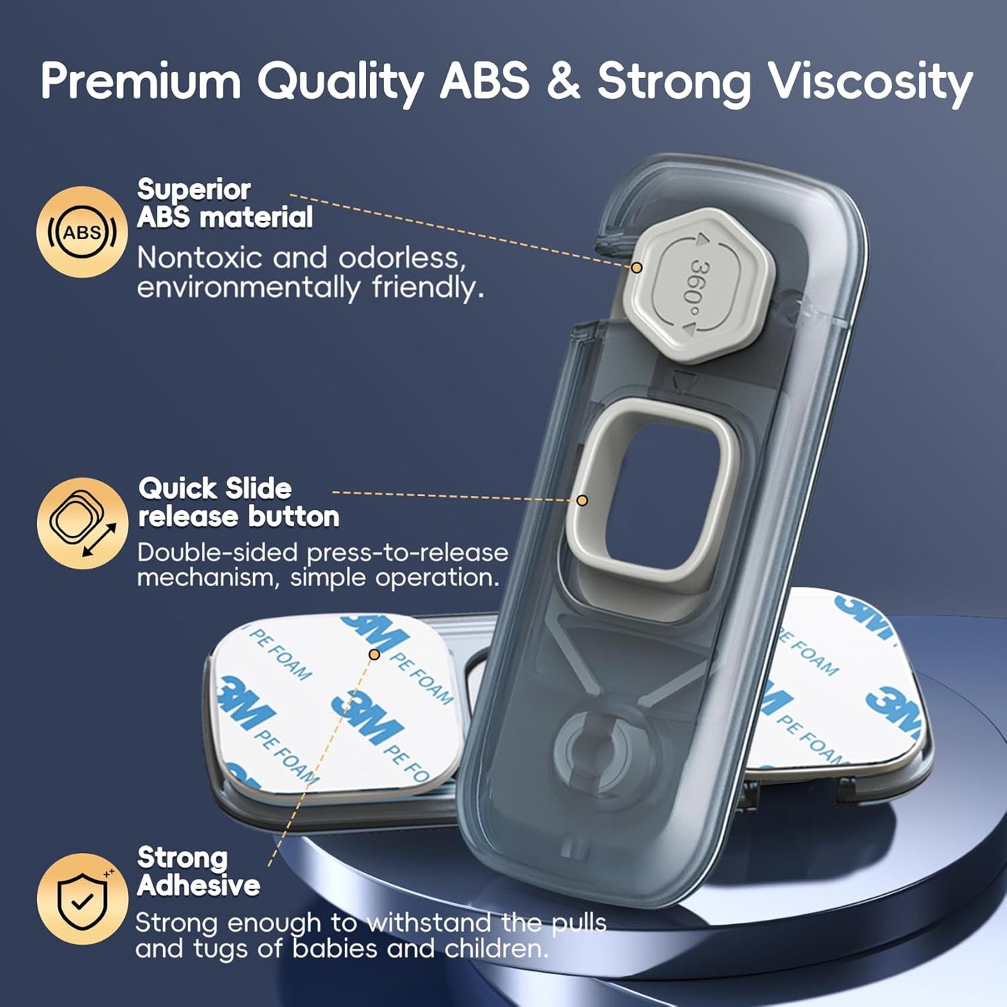 - DURABLE MATERIAL - The locks are made of superior and durable ABS material. Nontoxic and odorless, it is difficult to be damaged by toddlers. Provide long lifespan service.