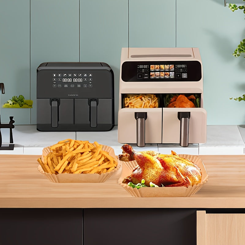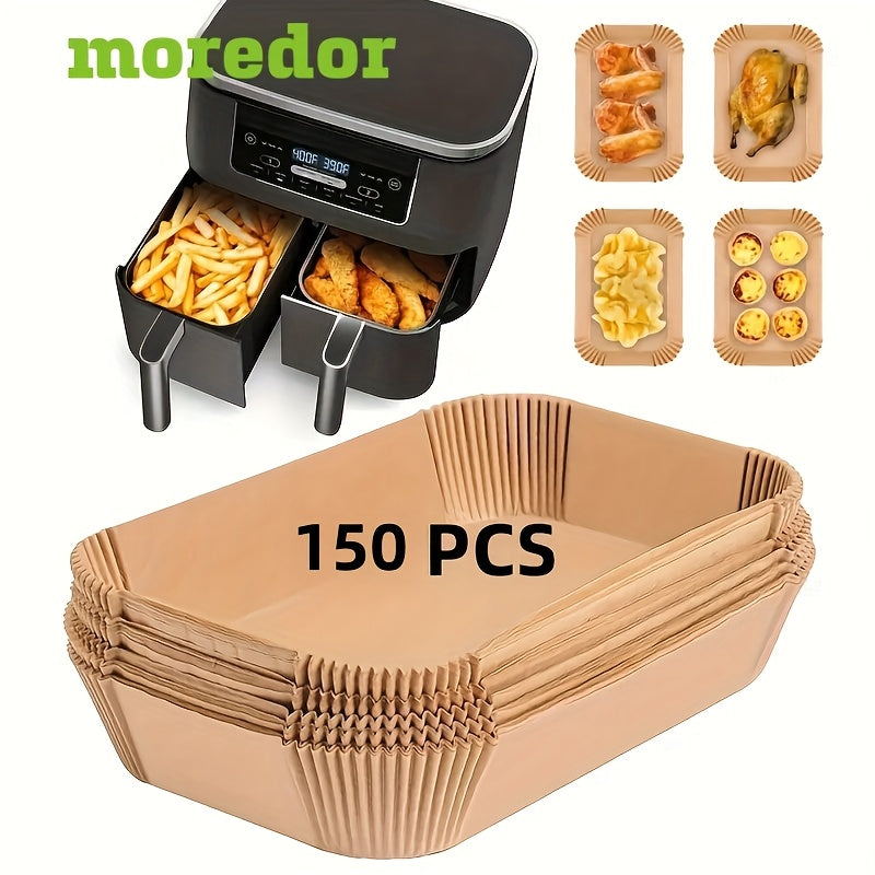 50/100/150/200pcs Air Fryer Disposable Paper Liners Rectangle, Non-Stick Parchment Baking Paper For Ninja Dual Air Fryer, Air Fryer Accessories, Oil Proof & Waterproof Kitchen Accessories, Baking Supplies