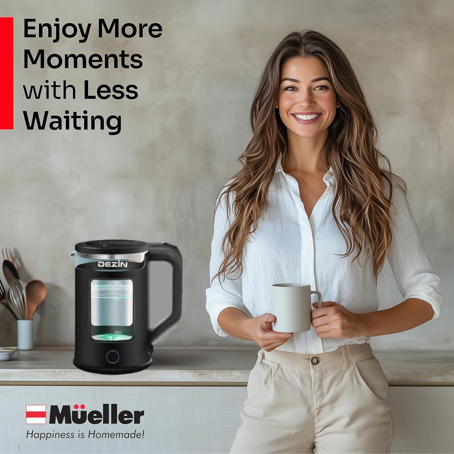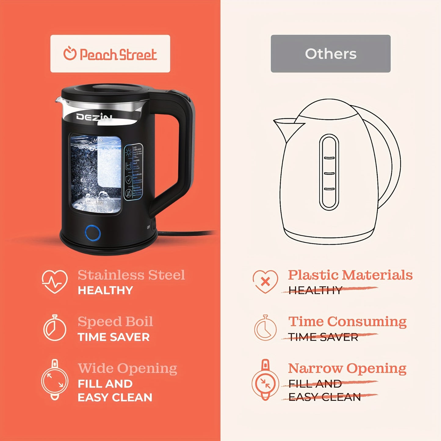 50.72oz Glass Electric Kettle with Blue LED Light - Borosilicate Glass Hot Water Kettle Electric - Electric Glass Kettle Water Boiler with Auto Shut-Off And Boil-Dry Protection