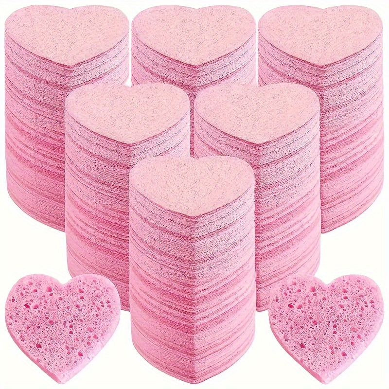 50 Pieces Heart-Shaped Facial Sponges With Container - Natural Sponge Pads For Washing, Cleansing, Exfoliating, And Makeup Removal