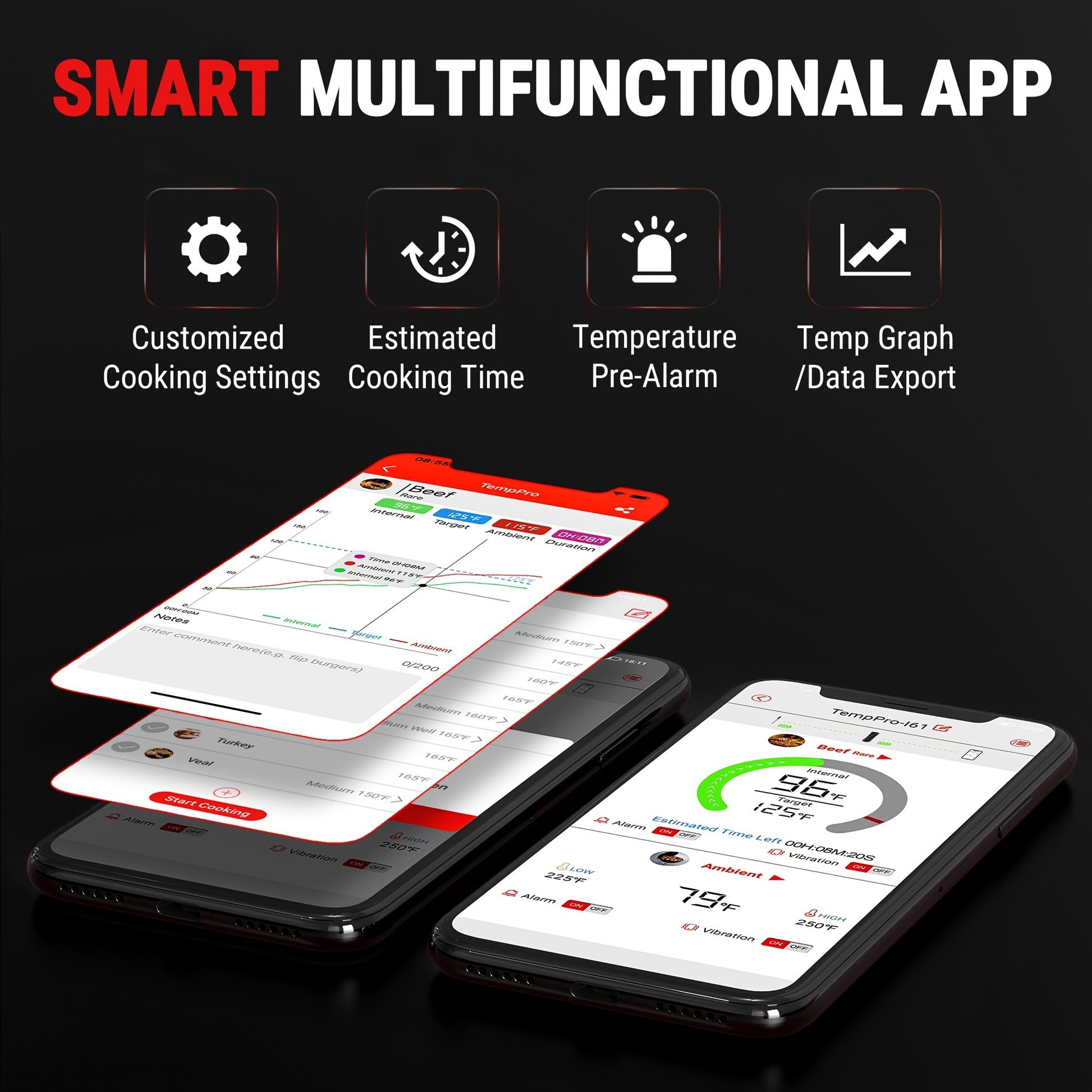 500-ft Wireless Range Digital Meat Thermometer, Food Thermometer with Temperature Alarm for Oven, Grill, Kitchen, BBQ, Smoker & Rotisserie