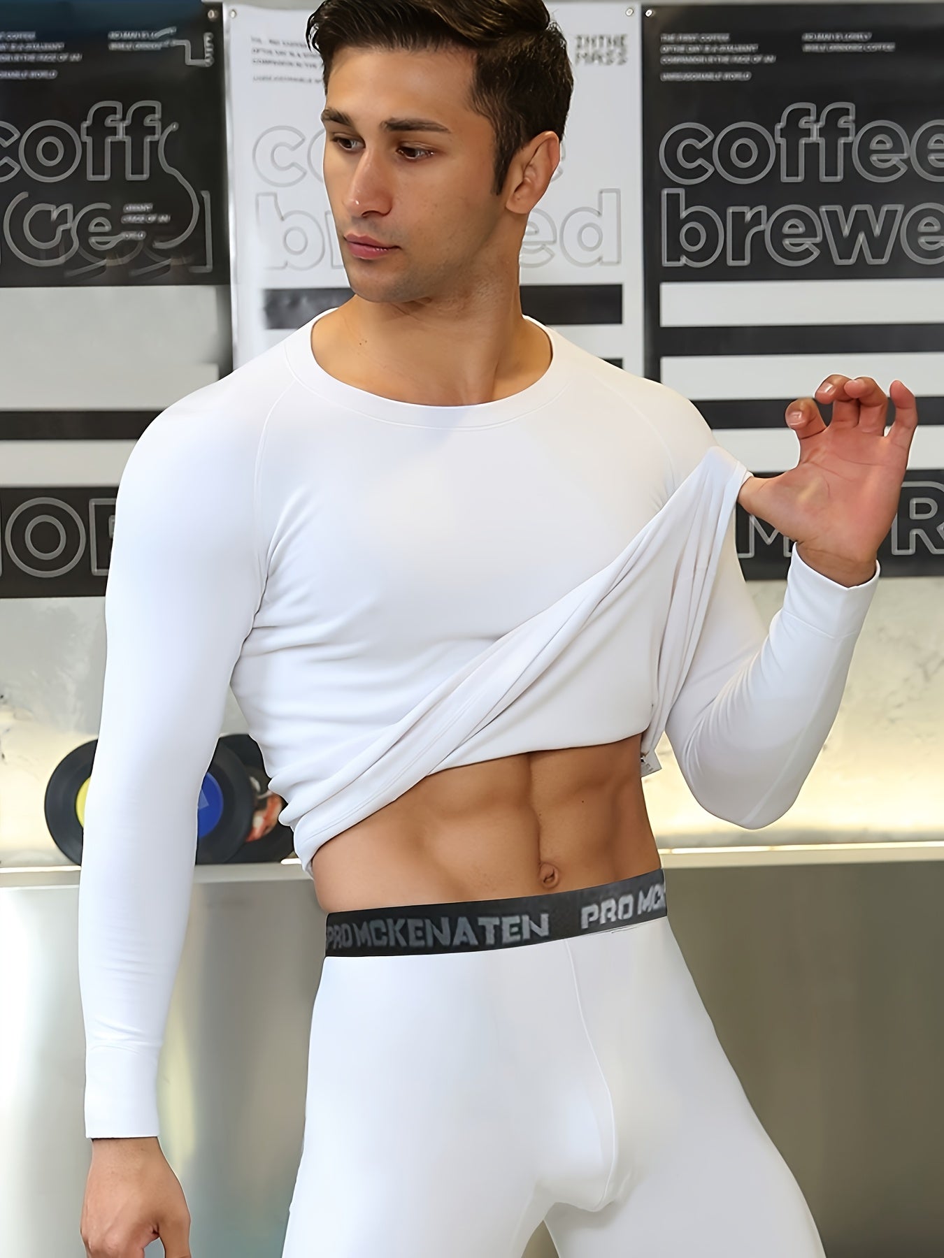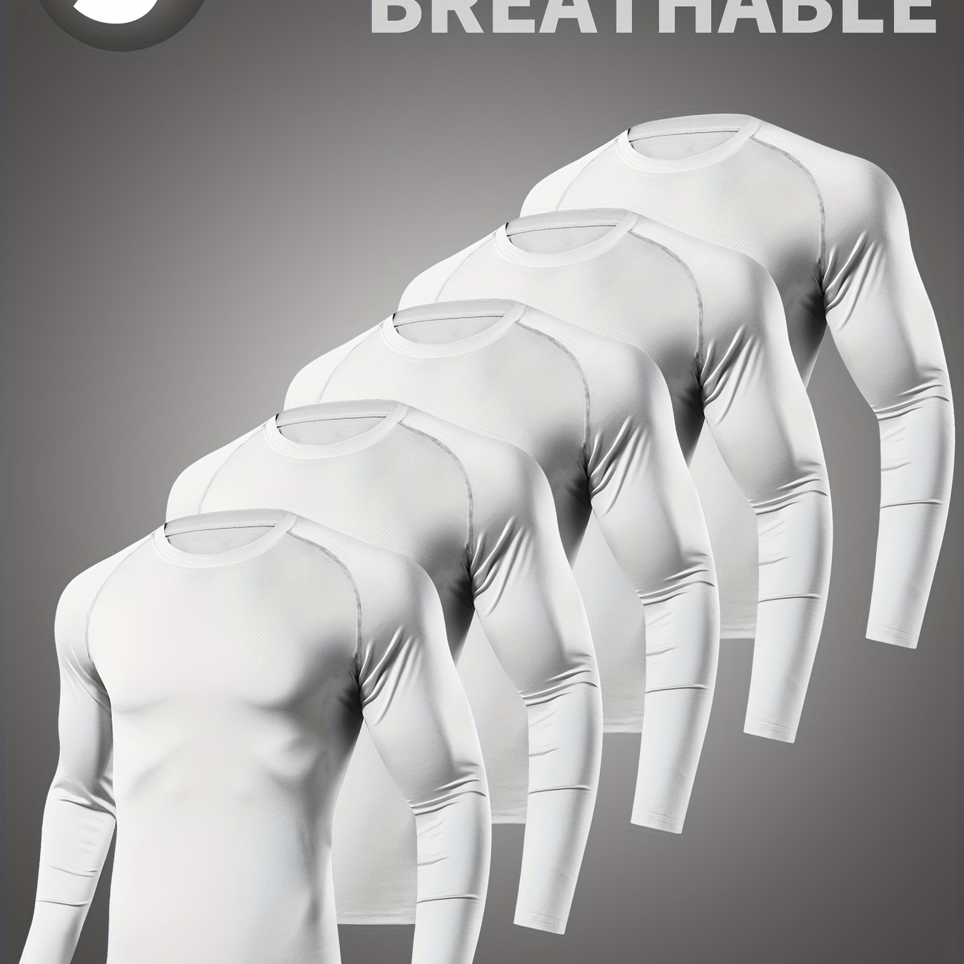 5pcs Men's High-Stretch Round Neck Long Sleeve Pullover Shirts - All-Season Comfort, Polyester & Elastane Blend, Solid White, Snug Fit for Basketball, Running, Cycling, Fitness & Outdoor Sports, Sports Activewear | Sleek Design | Stretch Fabric, Gym Shirt