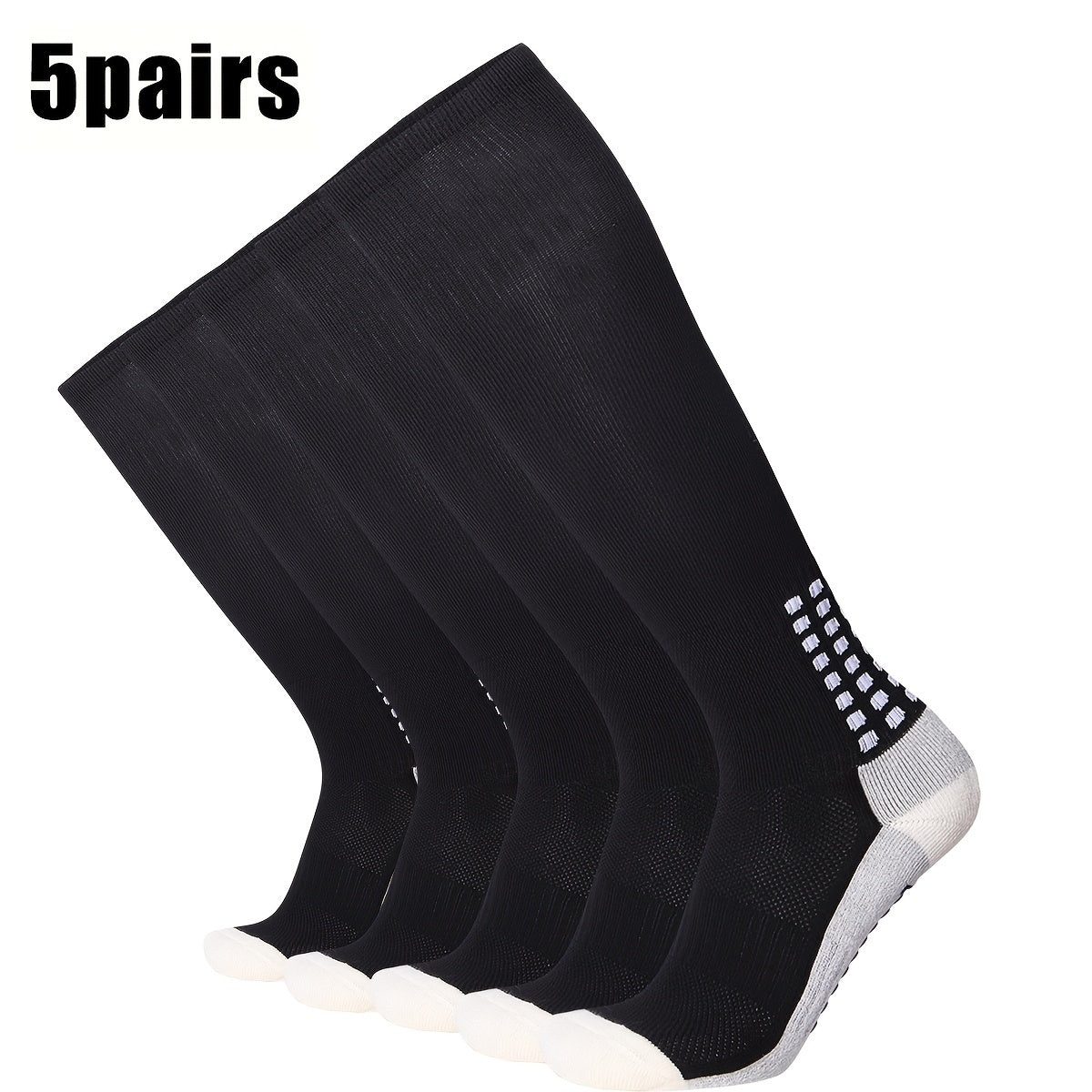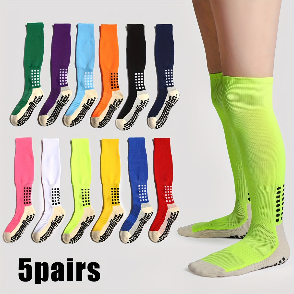 5pcs Men's Knee-High Soccer/Football Socks with Non-Slip Grip - Cushioned Bottom, Breathable & Comfortable for Running, Cycling & Outdoor Activities, in Variety of Colors