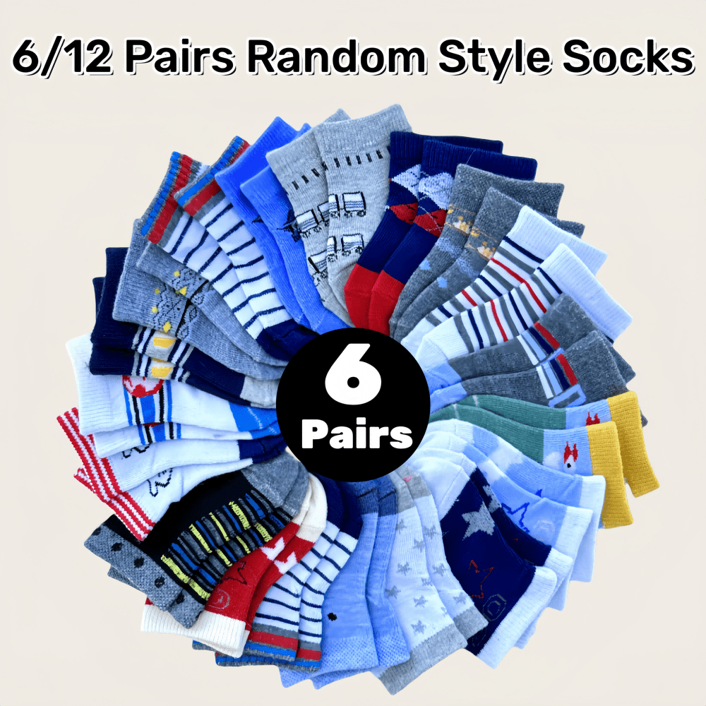 6/12 Pairs Random Style Baby Socks for Boys And Girls, Size 0.0-39.37ft, Newborn to Toddler, First Walkers, Hand Wash Or Dry Clean, Polyester And Spandex Fabric