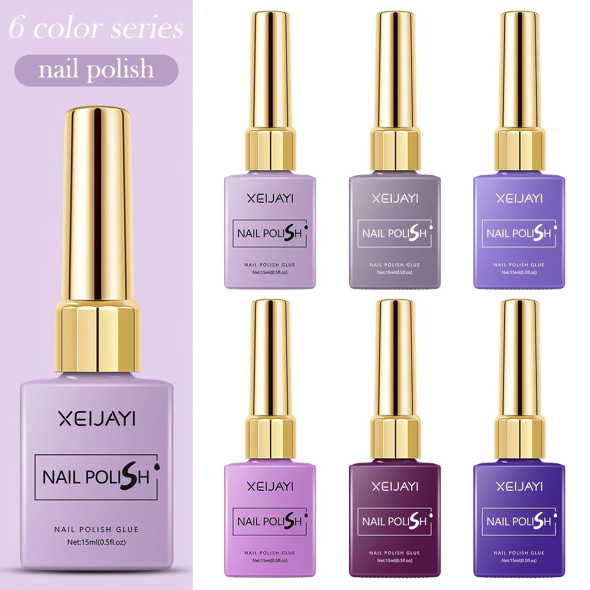 [6 Colors Shiny Nail Gel Set] XEIJAYI Colorful Bottle 6 Colors---A New Mysterious And Romantic Purple Nail Gel Set with 6 Ultra-Bright UV Nail Polishes, Featuring Shiny, Long-Lasting, High-Saturation Salon Gels, an Essential for Home Salon Manicures And a