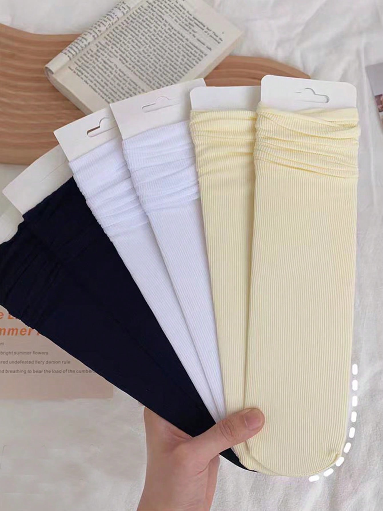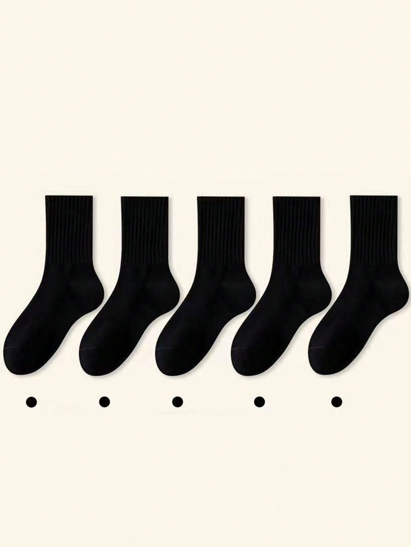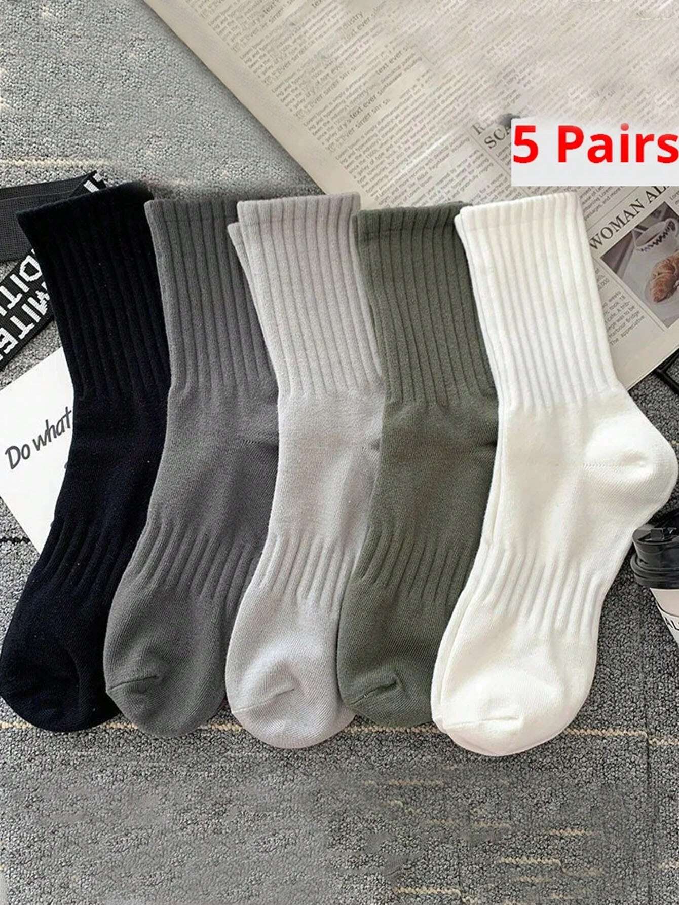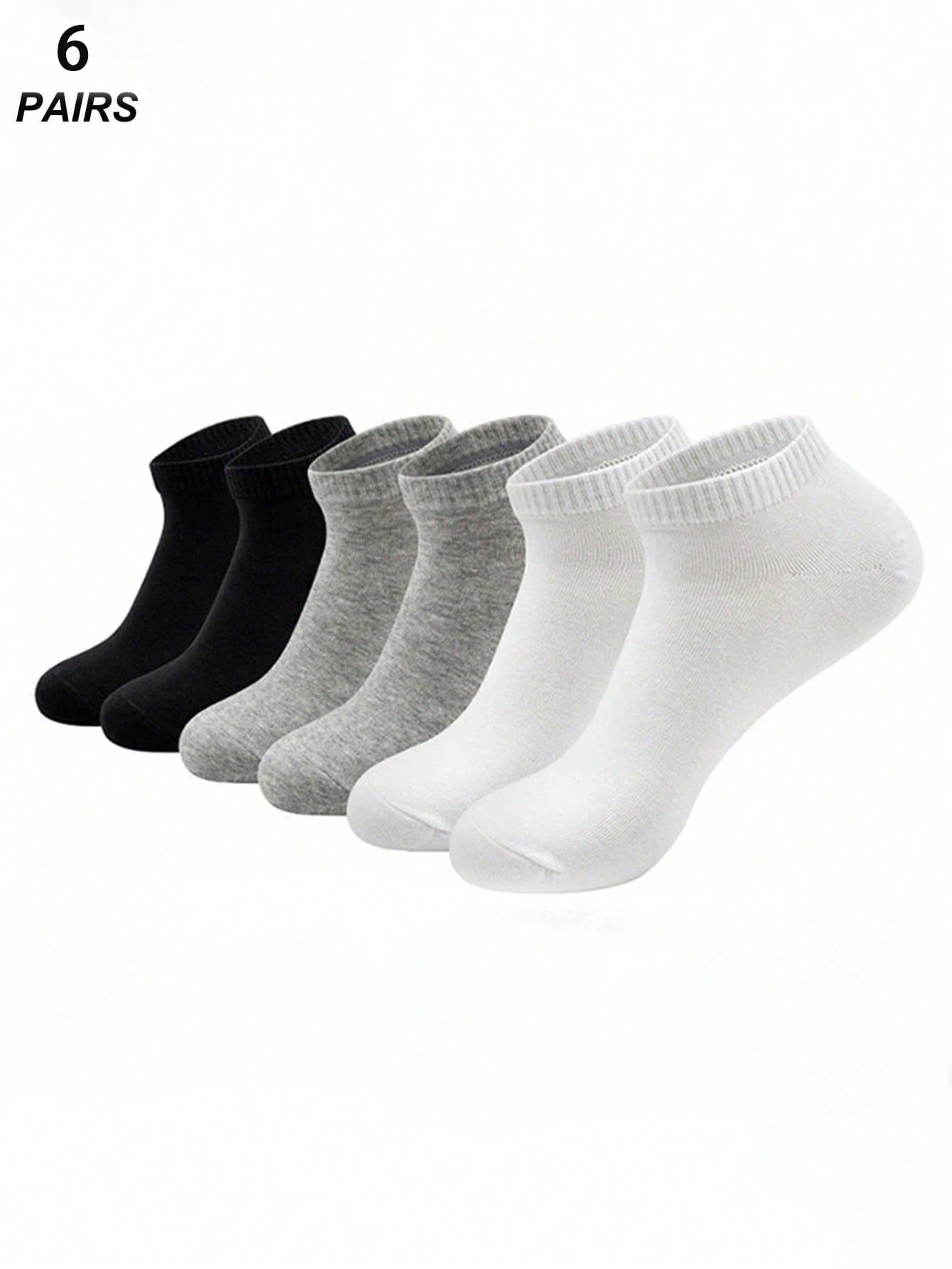 6 Pairs Solid Color Casual Sport Crew Socks, For Women, Autumn/Winter