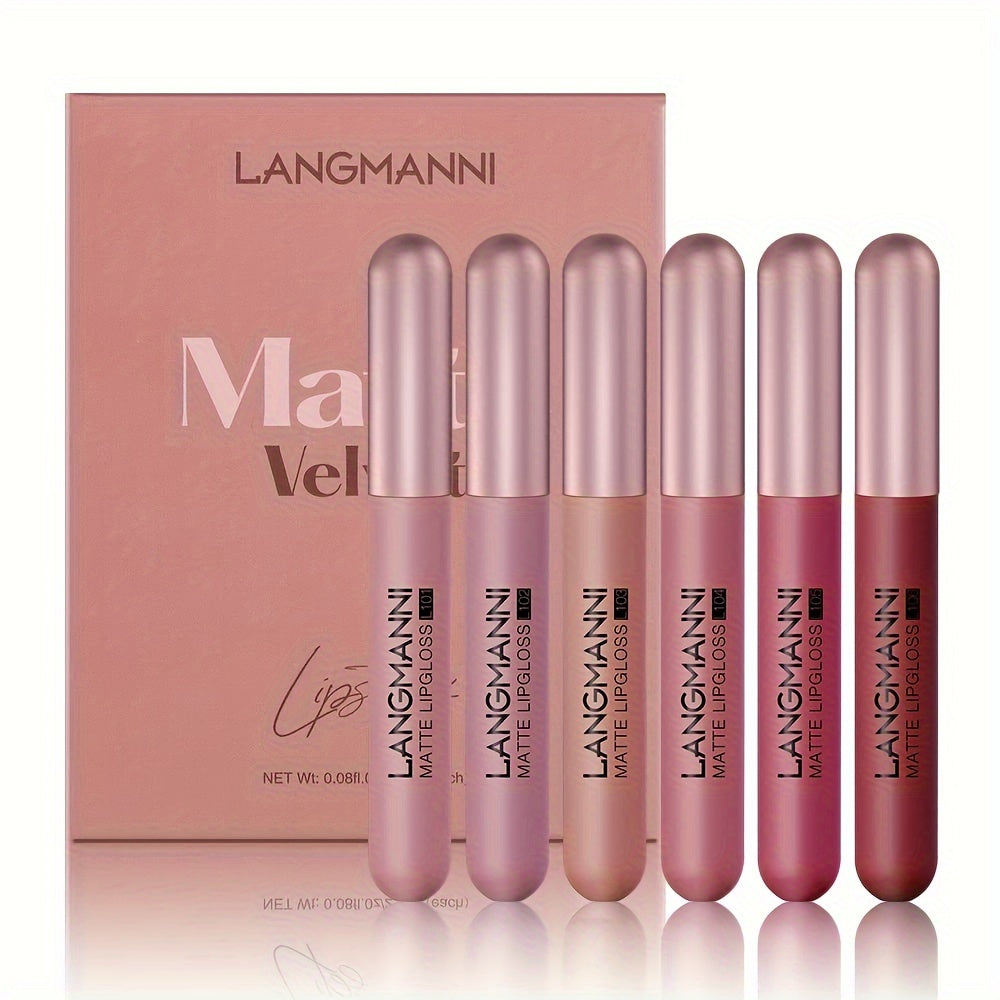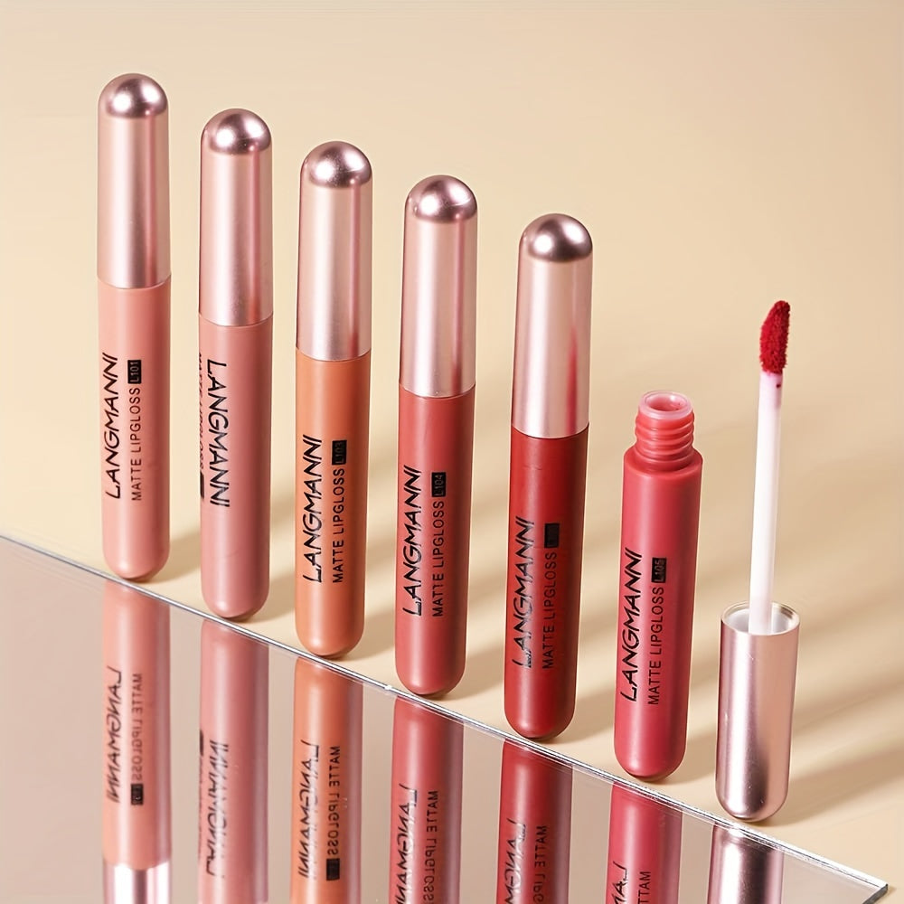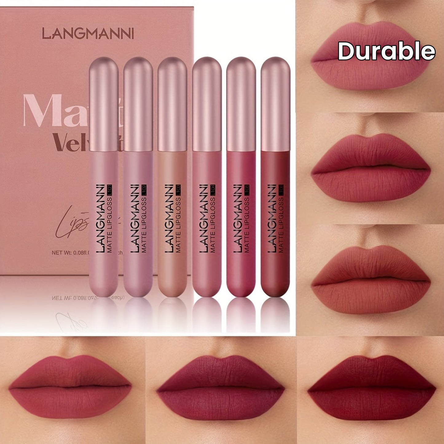 6 Pcs Matte Liquid Lipstick Makeup Set Velvety Liquid Lipstick Long Lasting Durable Nude Lip Gloss Beauty Cosmetics Set for Girls and Women Non-Stick Cup Lip Gloss Kit for Girls Women Make Up Gift Set for Halloween