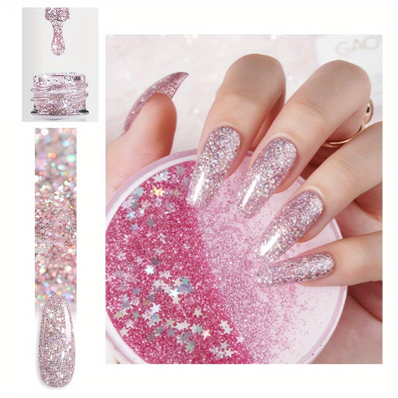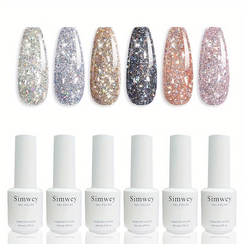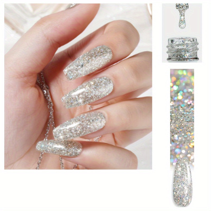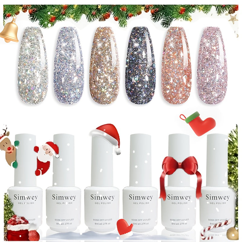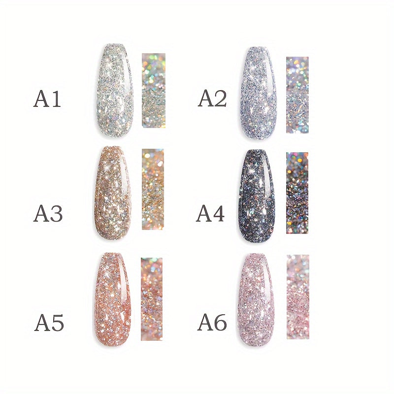 6 Pieces, Christmas Stars High Density Platinum Nail Polish Glue, Burst Nail Art Fine Glitter Silver Sequin Nail Polish Glue, Silver Gold Glitter Gel Nail Polish, 6 Colors, One-time DIY Nail Art Nail Painting, 0.27oz EACH. Perfect For Christmas Gifting