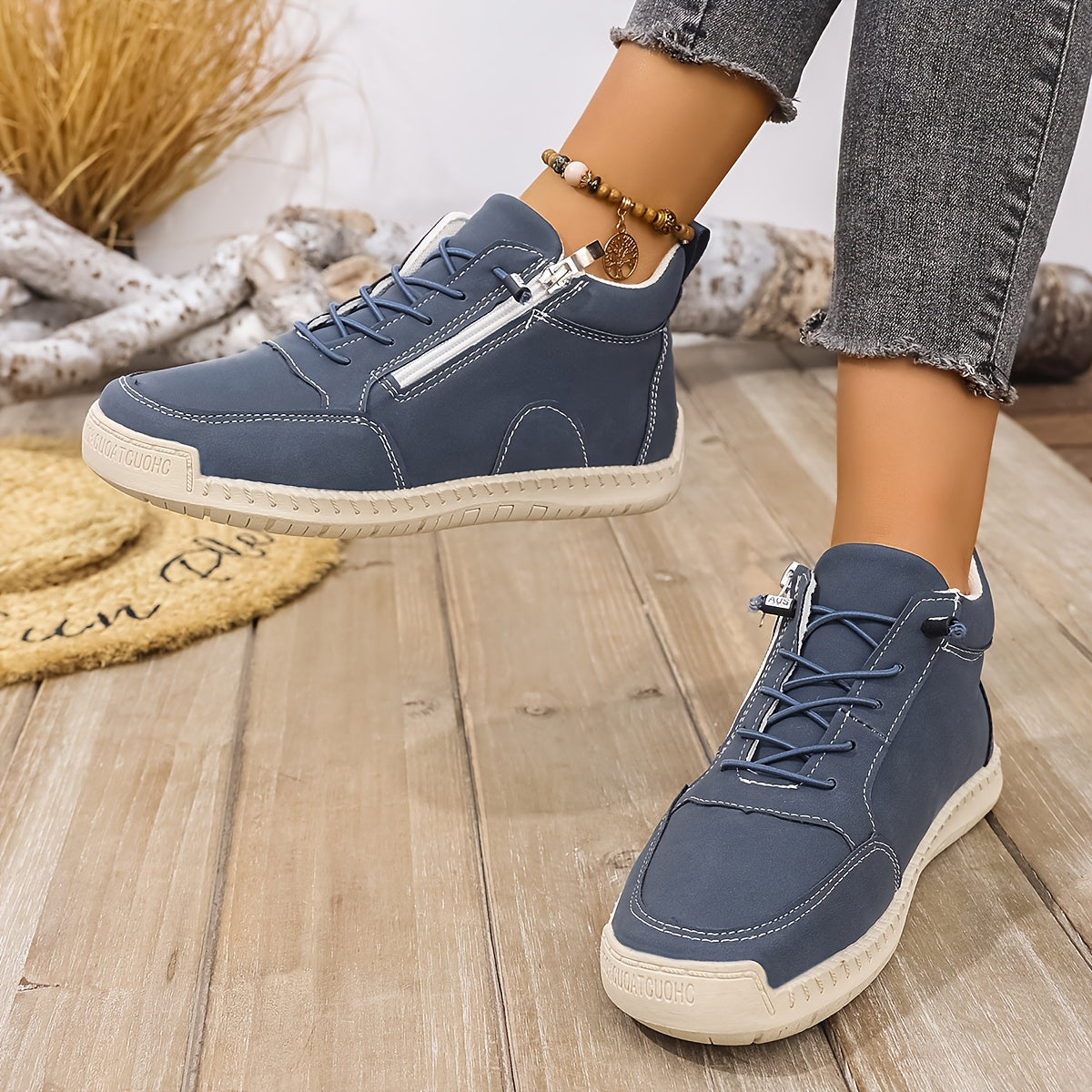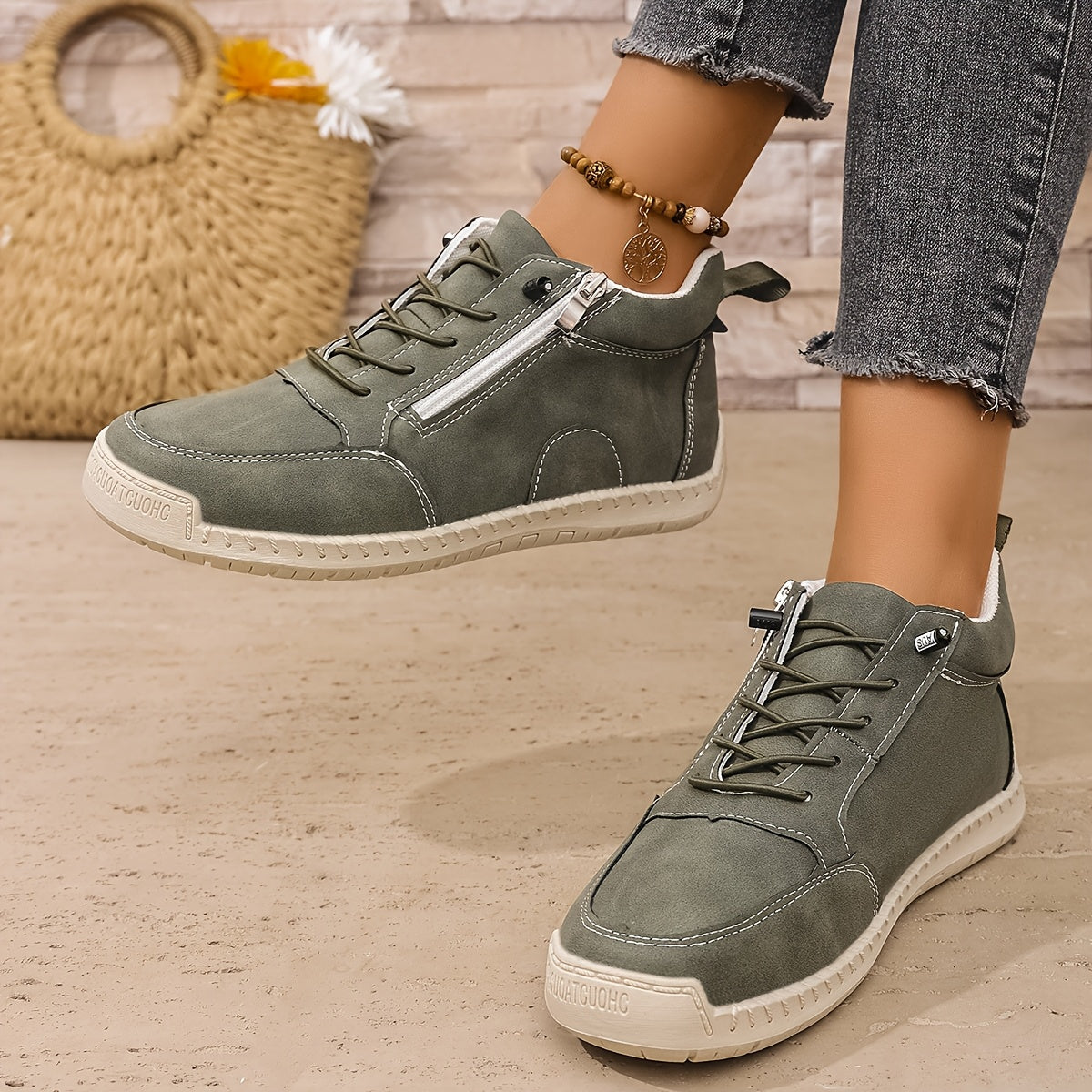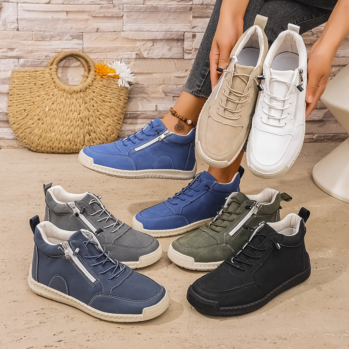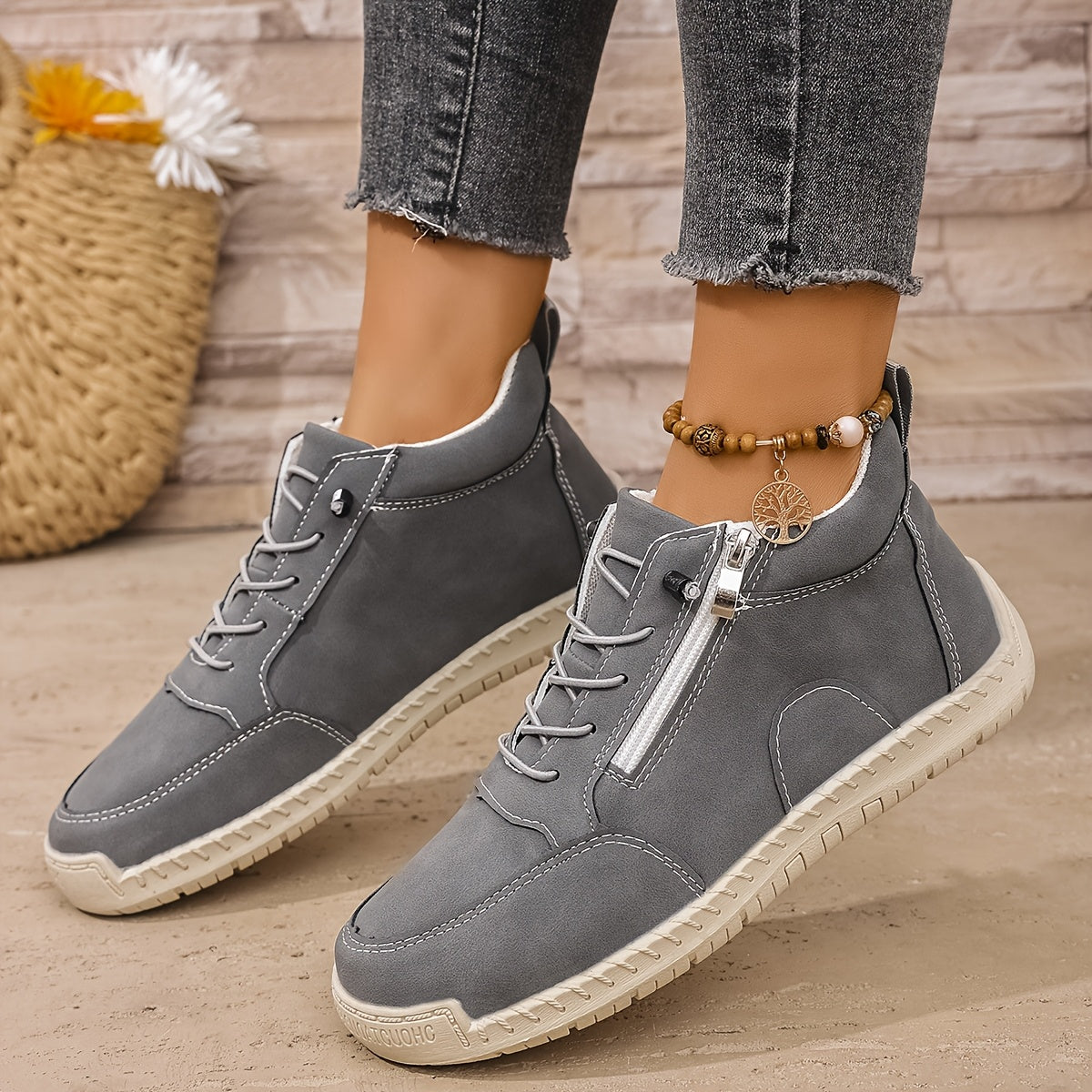669-2 Women'S Mid-Top Sneakers - Round Toe Lace-Up Casual Shoes with Zipper Closure, Faux Fabric Upper & TPR Sole, All-Season Comfort, Stylish Streetwear Design, Perfect Gift for 11 Occasions, Versatile Footwear, Trendy Street Style, Durable Traction Foot
