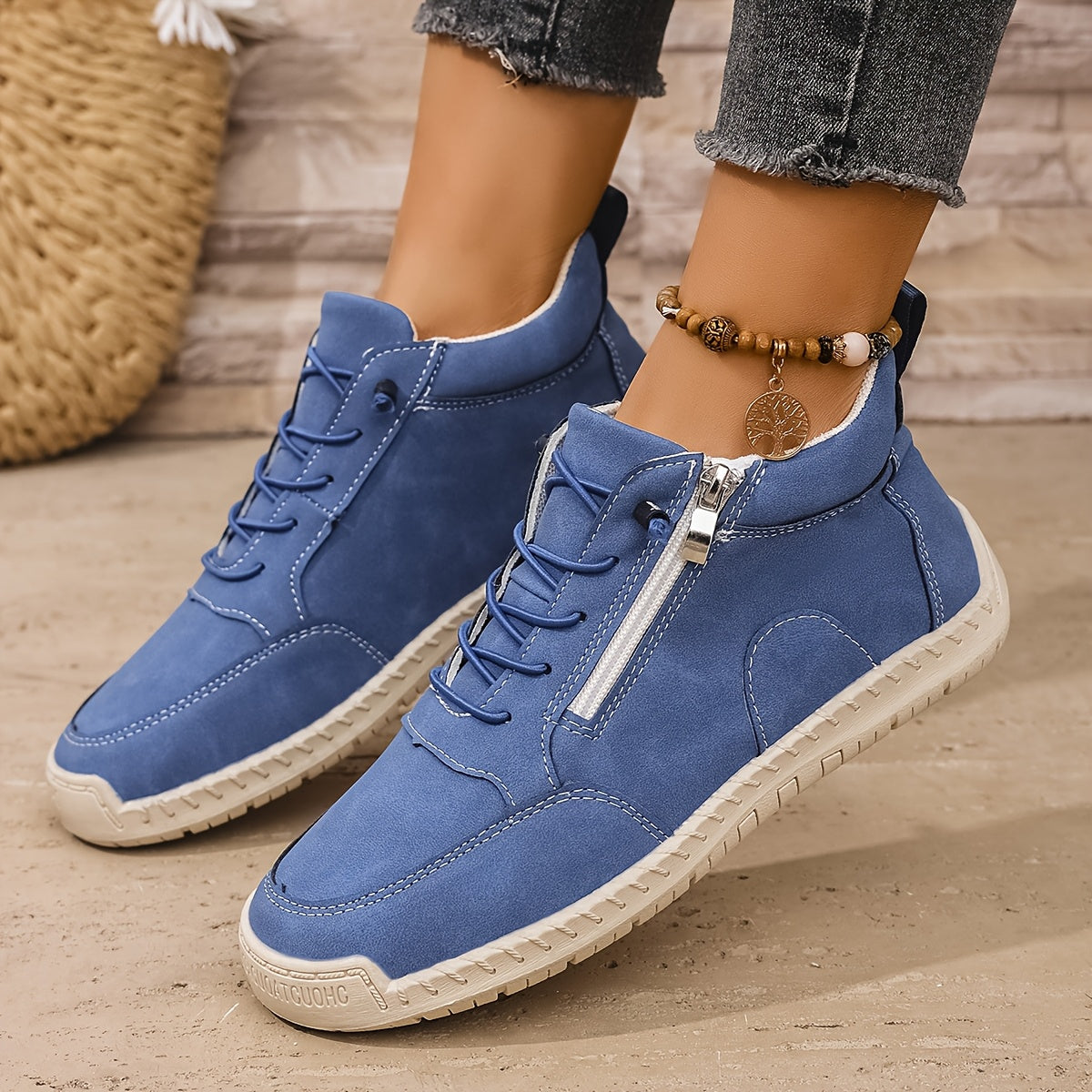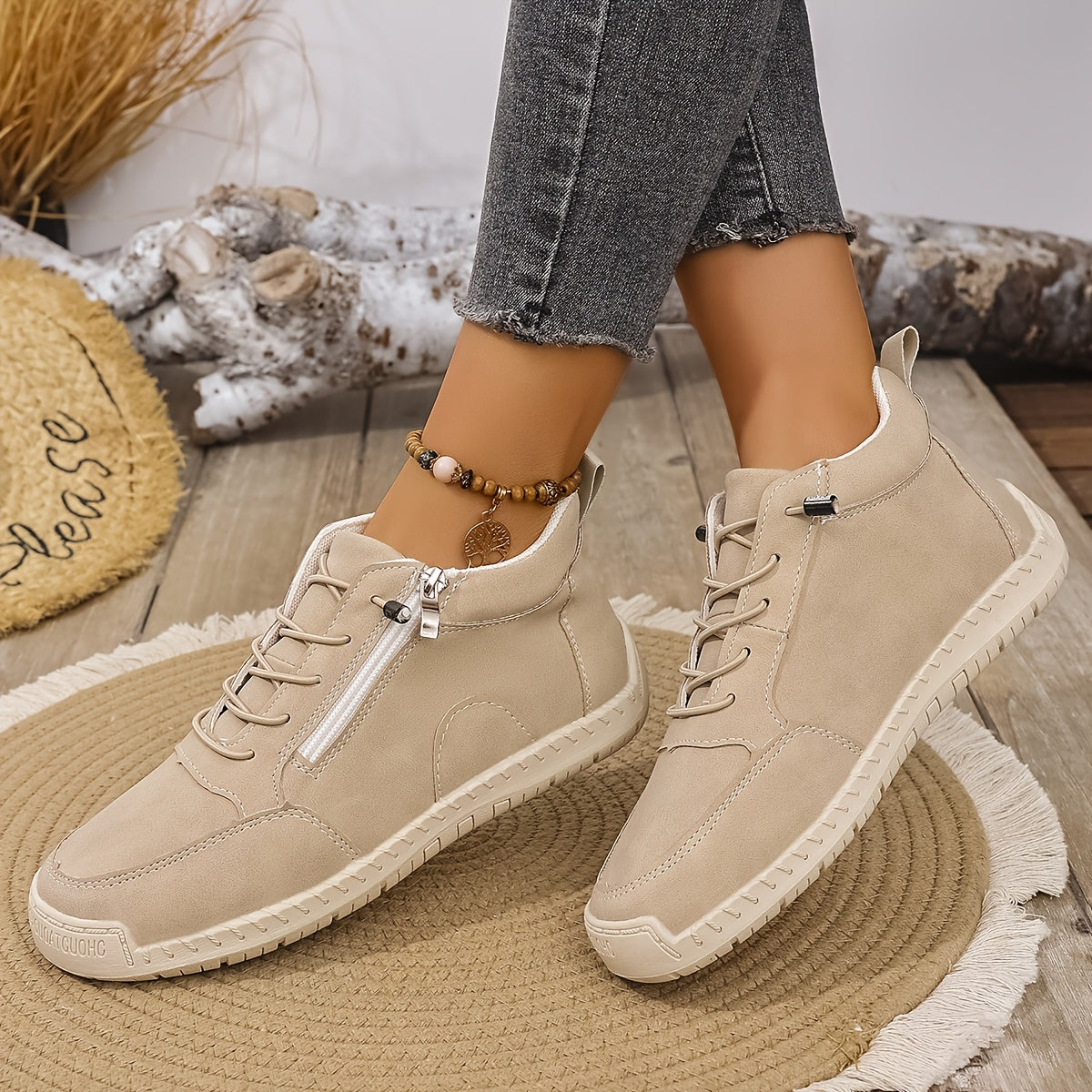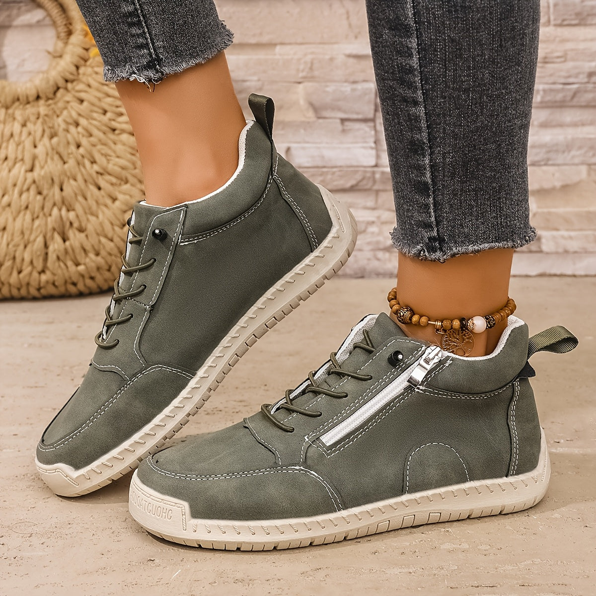 669-2 Women'S Mid-Top Sneakers - Round Toe Lace-Up Casual Shoes with Zipper Closure, Faux Fabric Upper & TPR Sole, All-Season Comfort, Stylish Streetwear Design, Perfect Gift for 11 Occasions, Versatile Footwear, Trendy Street Style, Durable Traction Foot