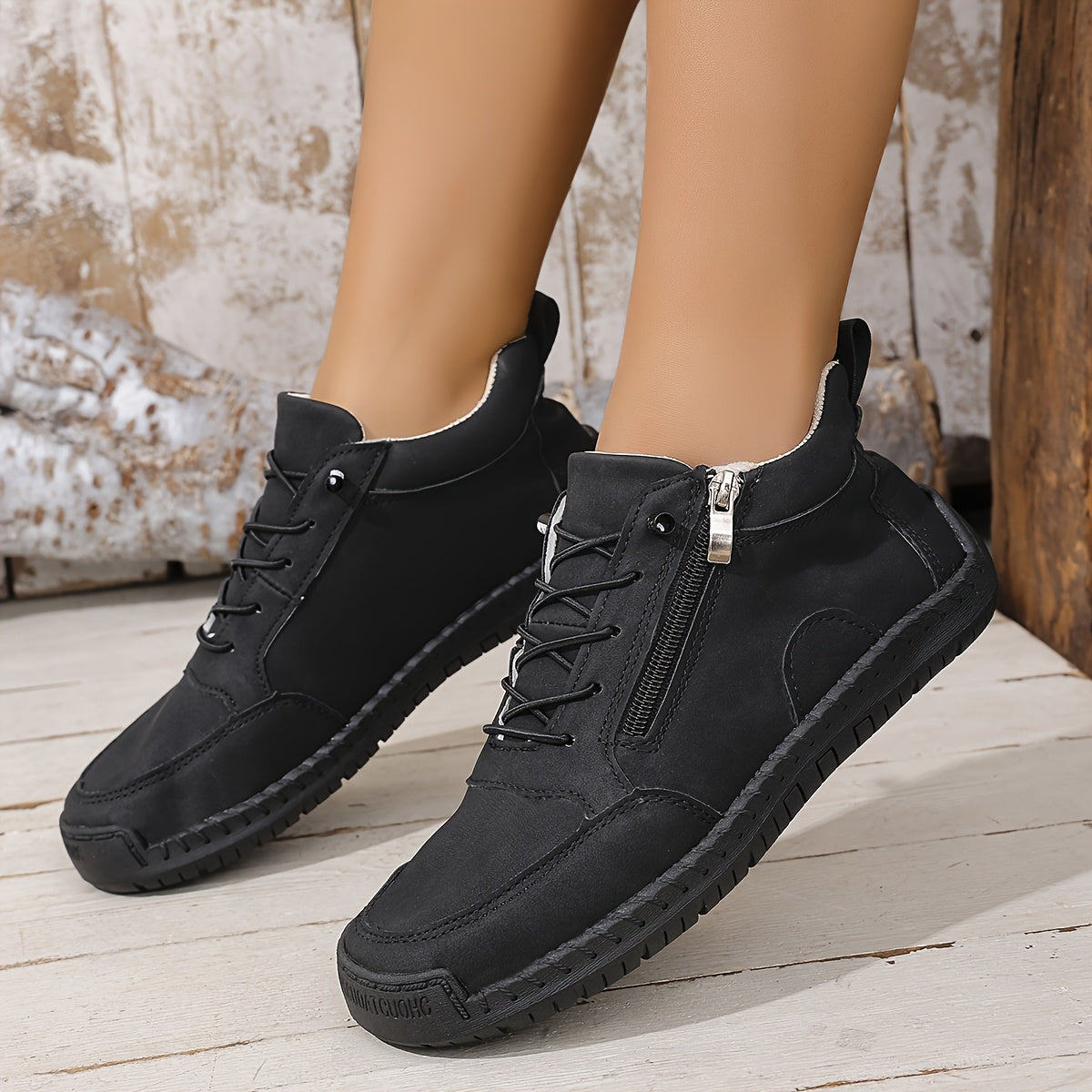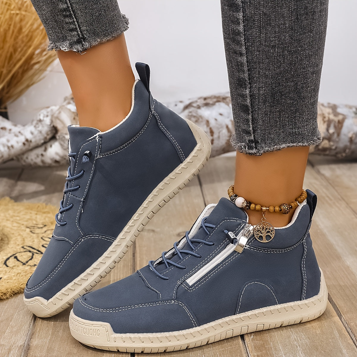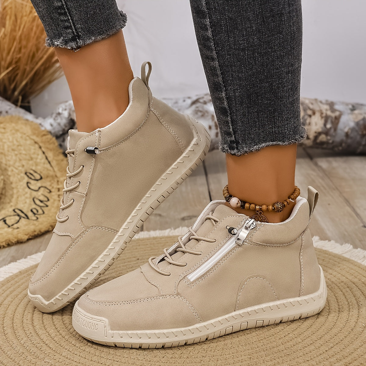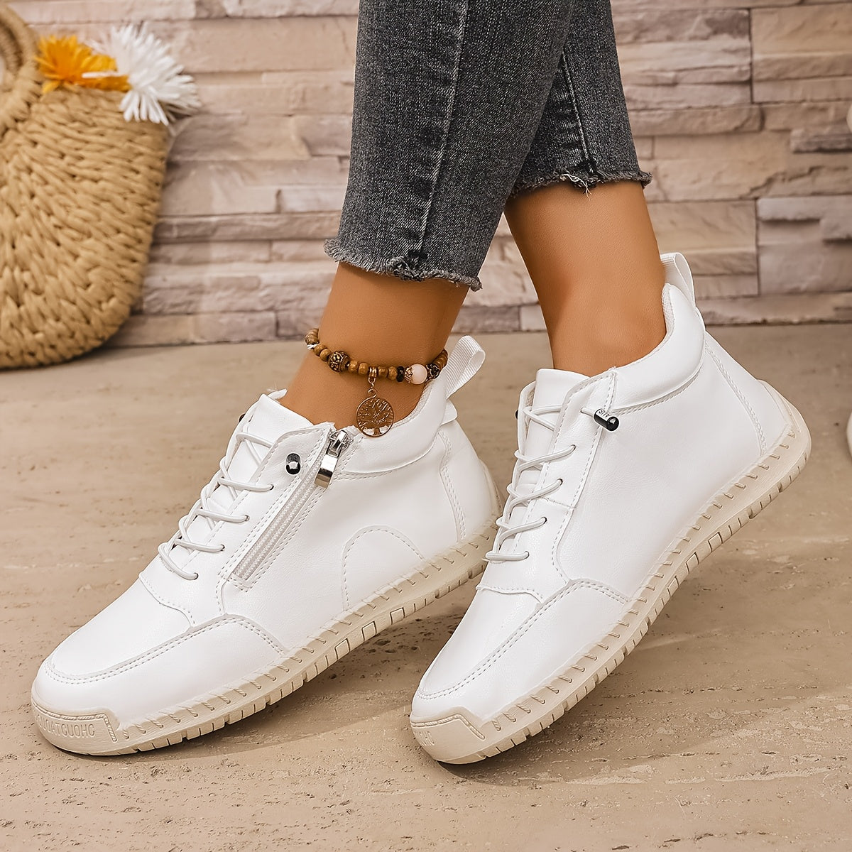 669-2 Women'S Mid-Top Sneakers - Round Toe Lace-Up Casual Shoes with Zipper Closure, Faux Fabric Upper & TPR Sole, All-Season Comfort, Stylish Streetwear Design, Perfect Gift for 11 Occasions, Versatile Footwear, Trendy Street Style, Durable Traction Foot