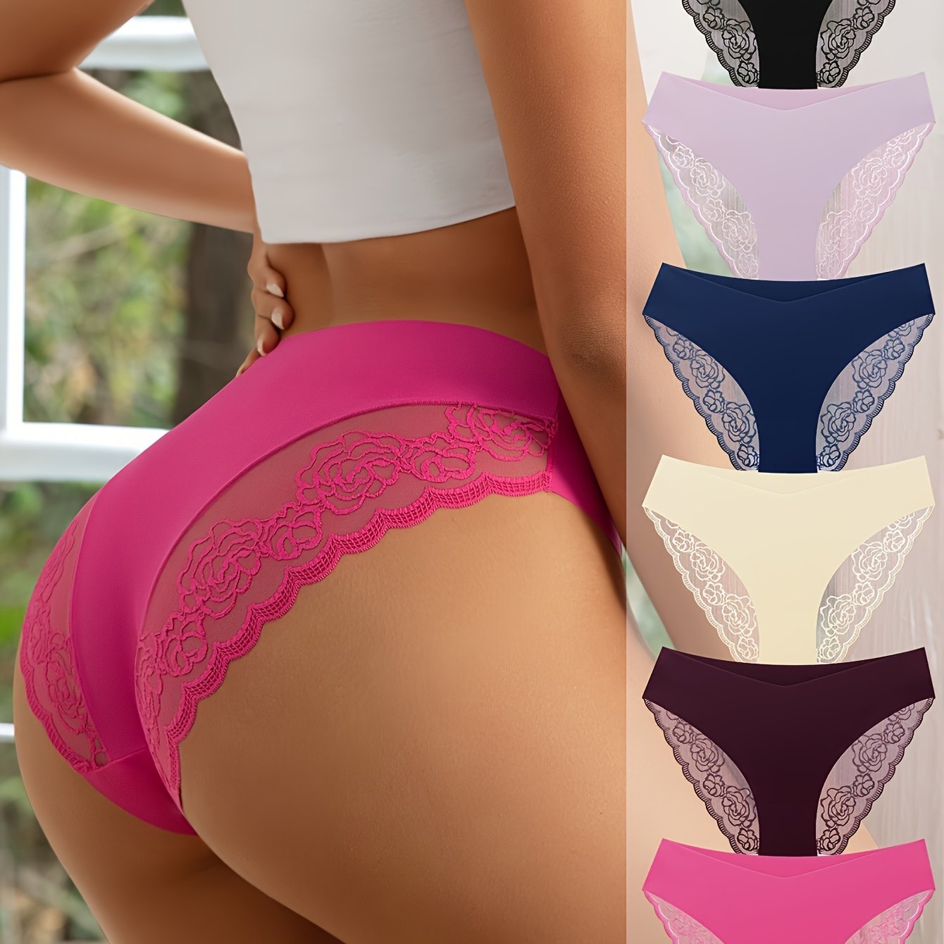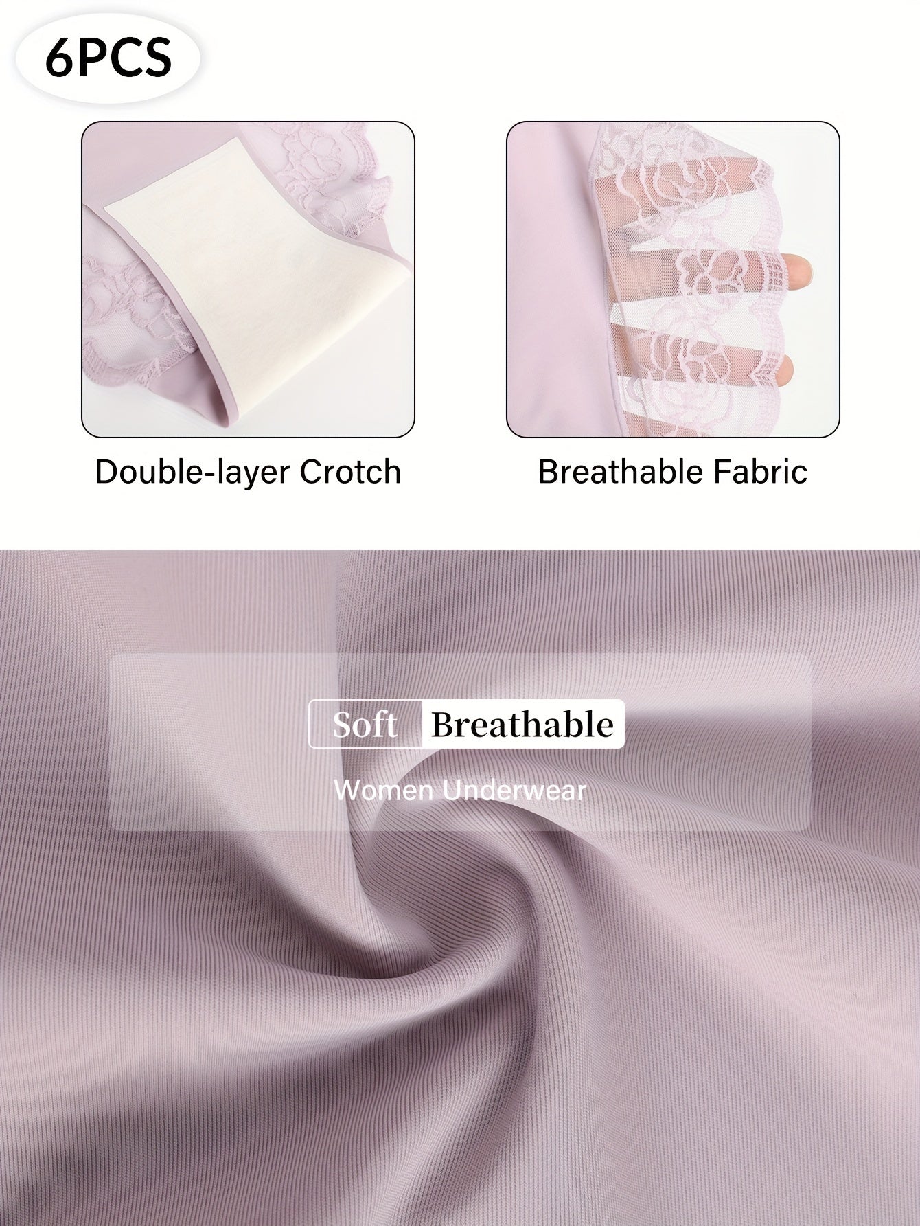 6pcs Lightweight Contrast Lace Briefs, Seamless Intimates Panties, Women's Lingerie & Underwear