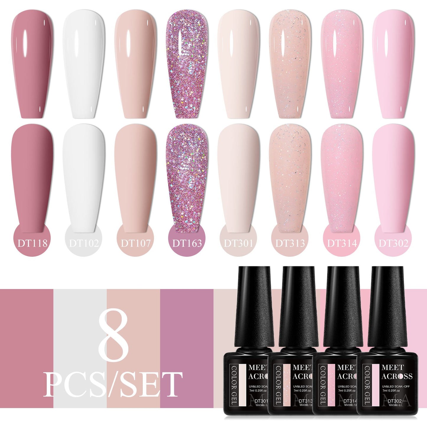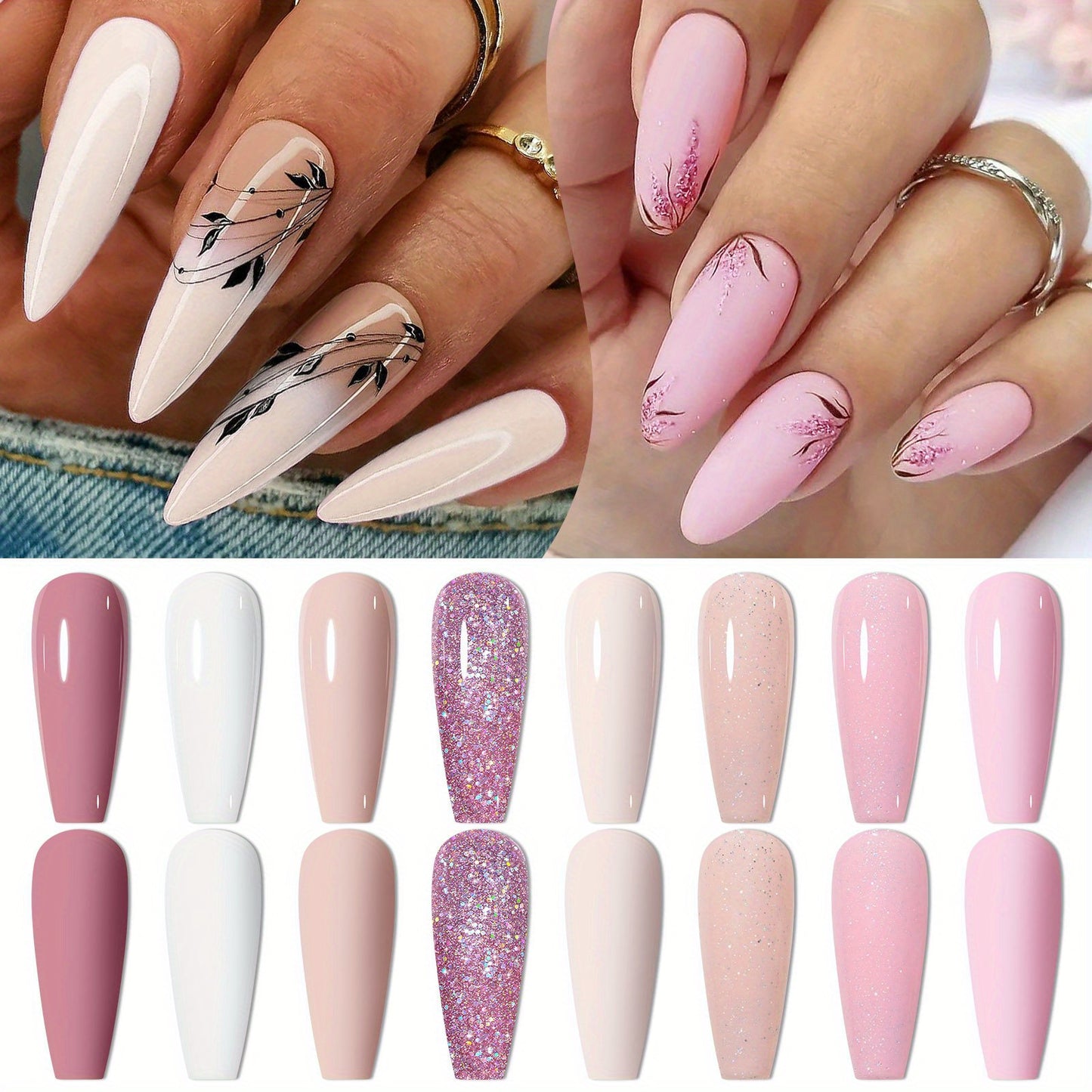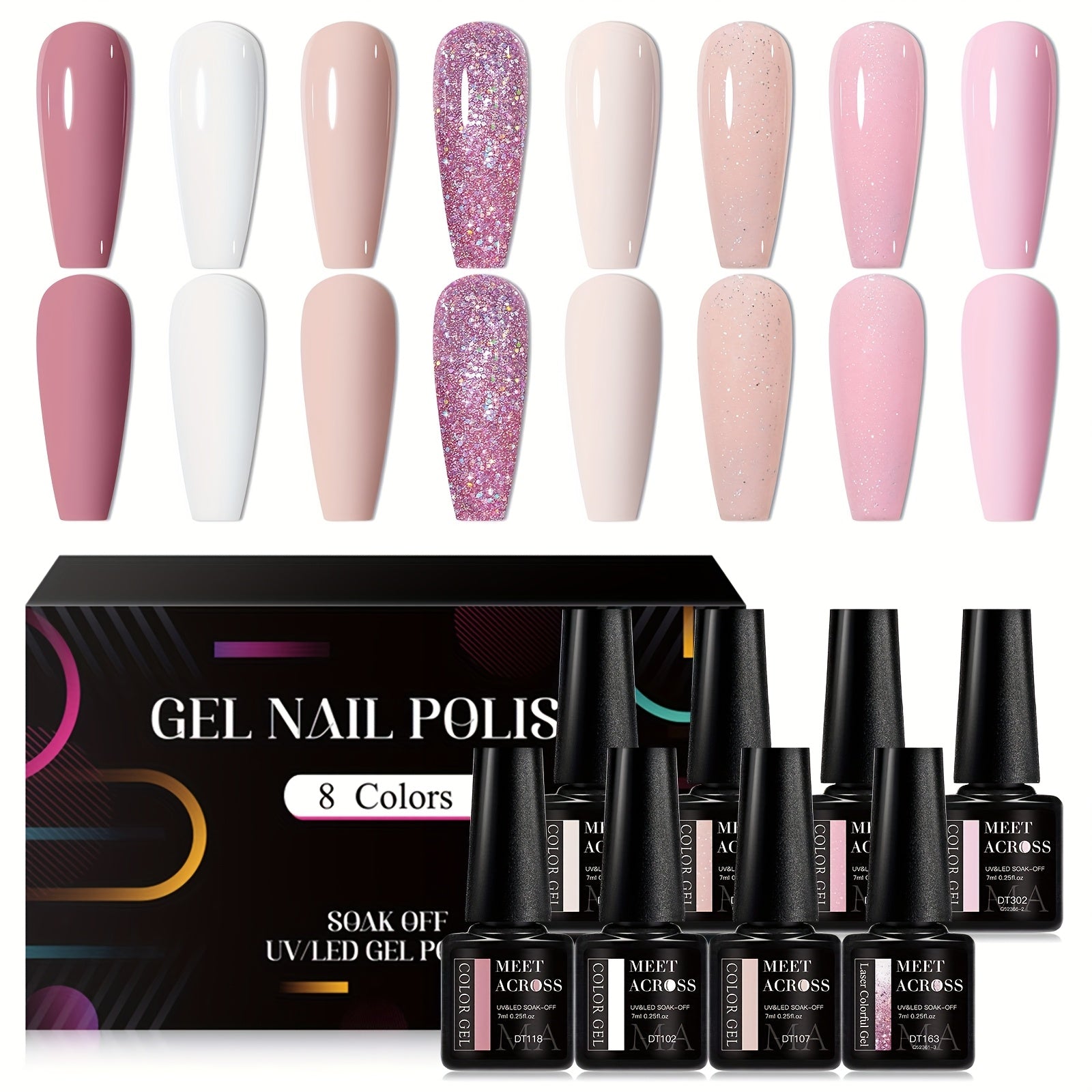 8pcs Gel Nail Polish Set - Sparkling Pink & Glitter Shades, Semi-Permanent Soak Off UV/LED Varnish for Manicure Designs, & Unscented