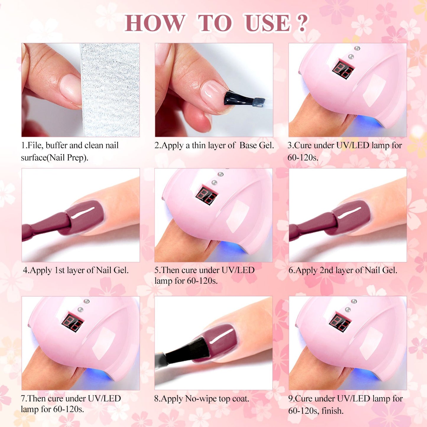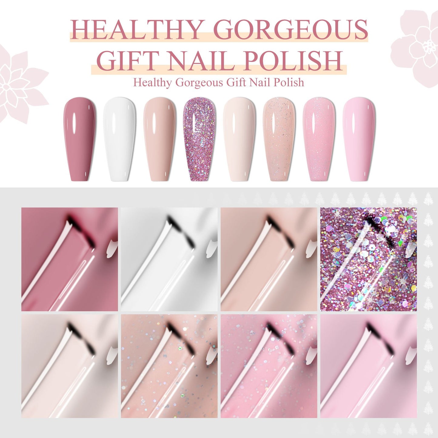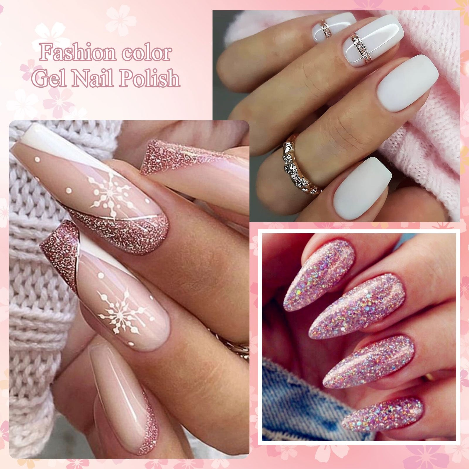 8pcs Gel Nail Polish Set - Sparkling Pink & Glitter Shades, Semi-Permanent Soak Off UV/LED Varnish for Manicure Designs, & Unscented