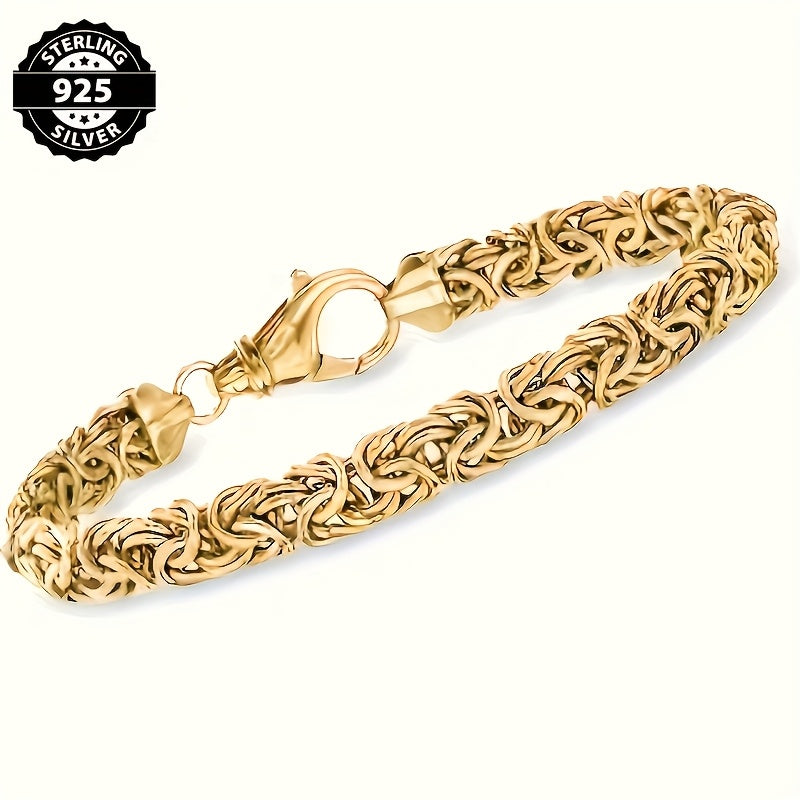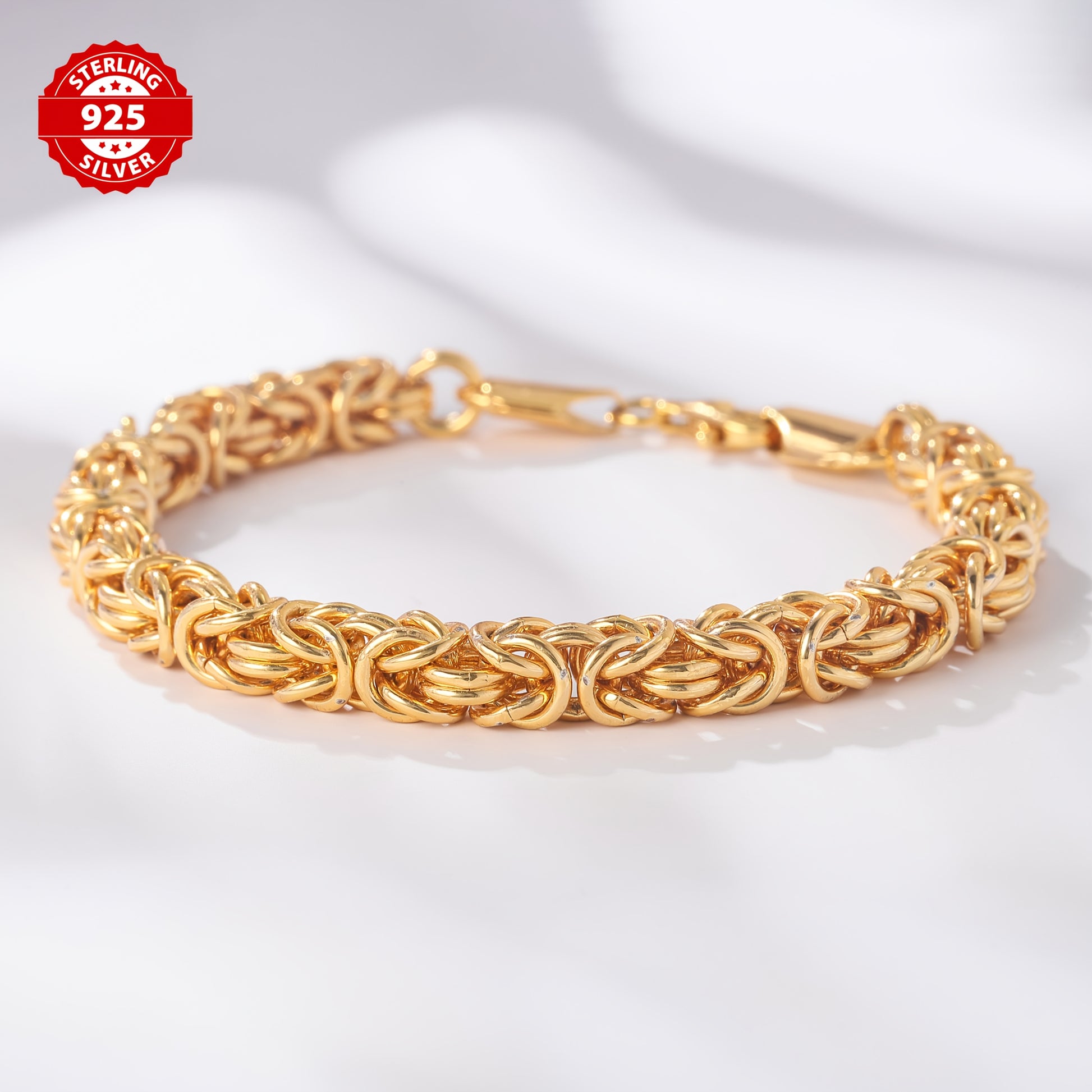 925 Pure Silvery Plated with 18K Gold Plated High Quality Cuban Grass Rope Bracelet, Girlfriend Valentine's Day Mother's Day Gift, Mother's Christmas Wedding Gift, Gift Box