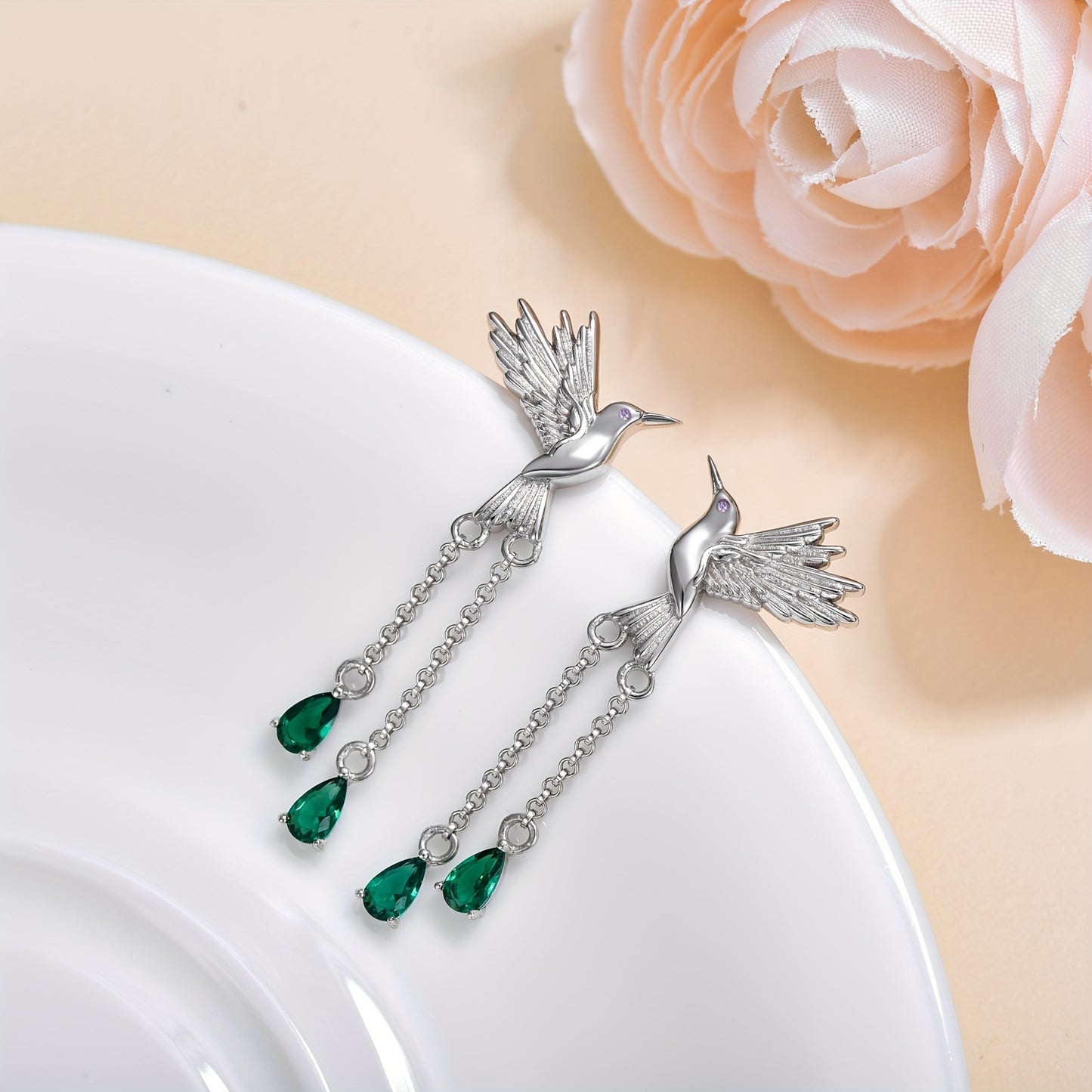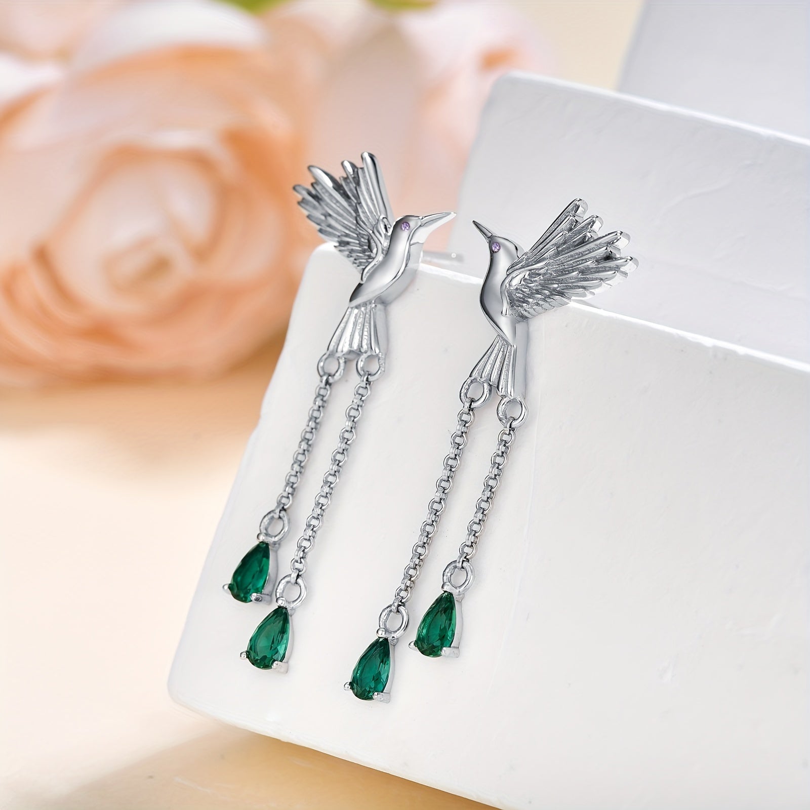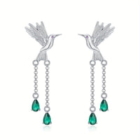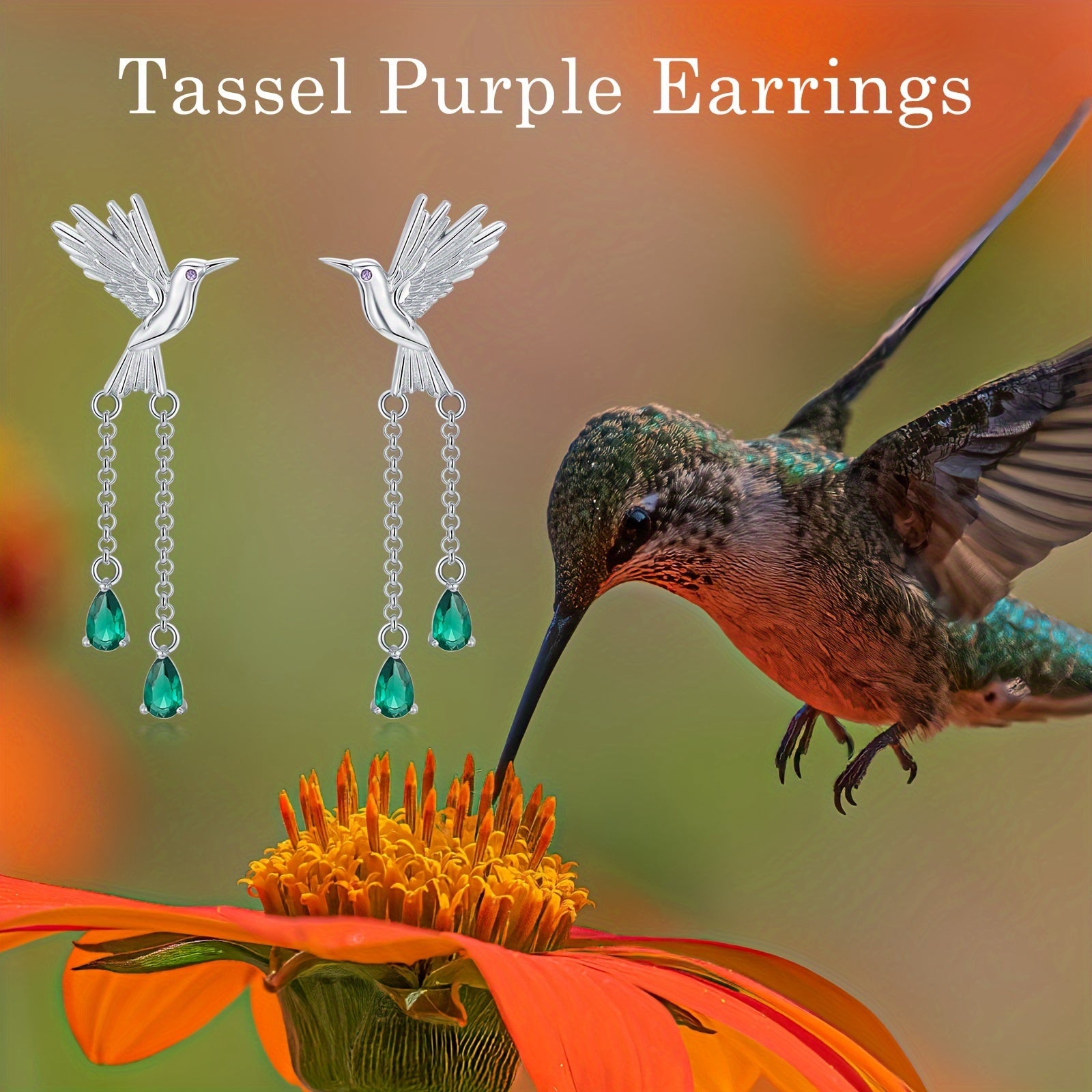 925 Sterling Silver Hummingbird Tassel Drop Dangle Earrings For Women