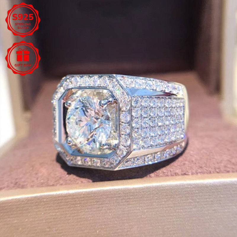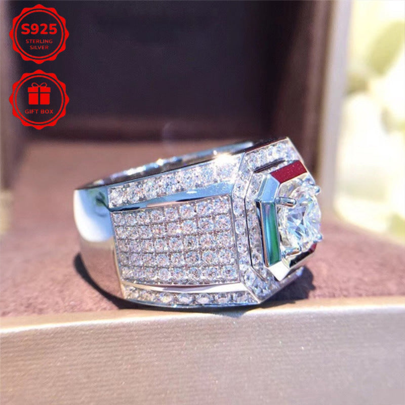 925 Sterling Silver Low Allergy, High-quality, Domineering and Super Sparkling Design Men's Ring, Luxurious and High-end Sparkling Creative Ring, Versatile for Daily Business Activities, Trendy and Fashionable Ring, Hand Jewelry Gift Box Packaging