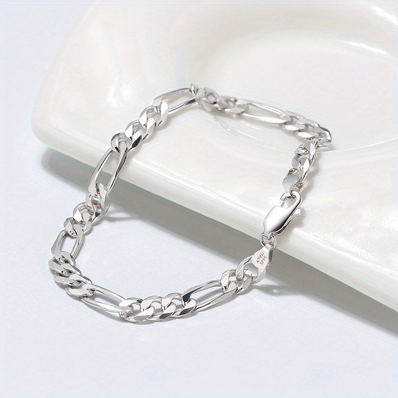 925 Sterling Silvery Bracelet Personalized Fashion Hip Hop Unique Cool Trend Exaggerated Temperament Figaro Bracelet Car Flower Chain Popular Men'S And Women'S Bracelets Holiday Gift about 5.7G