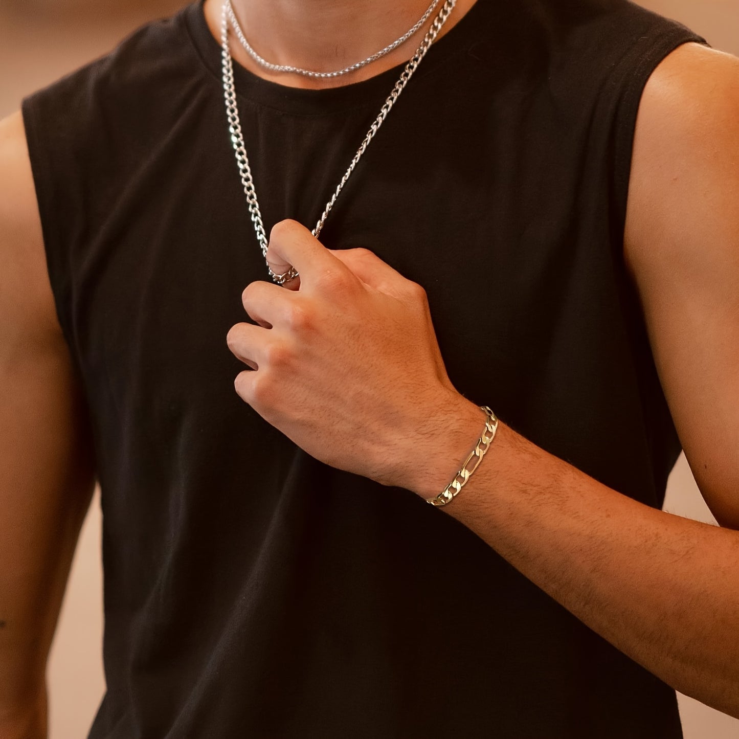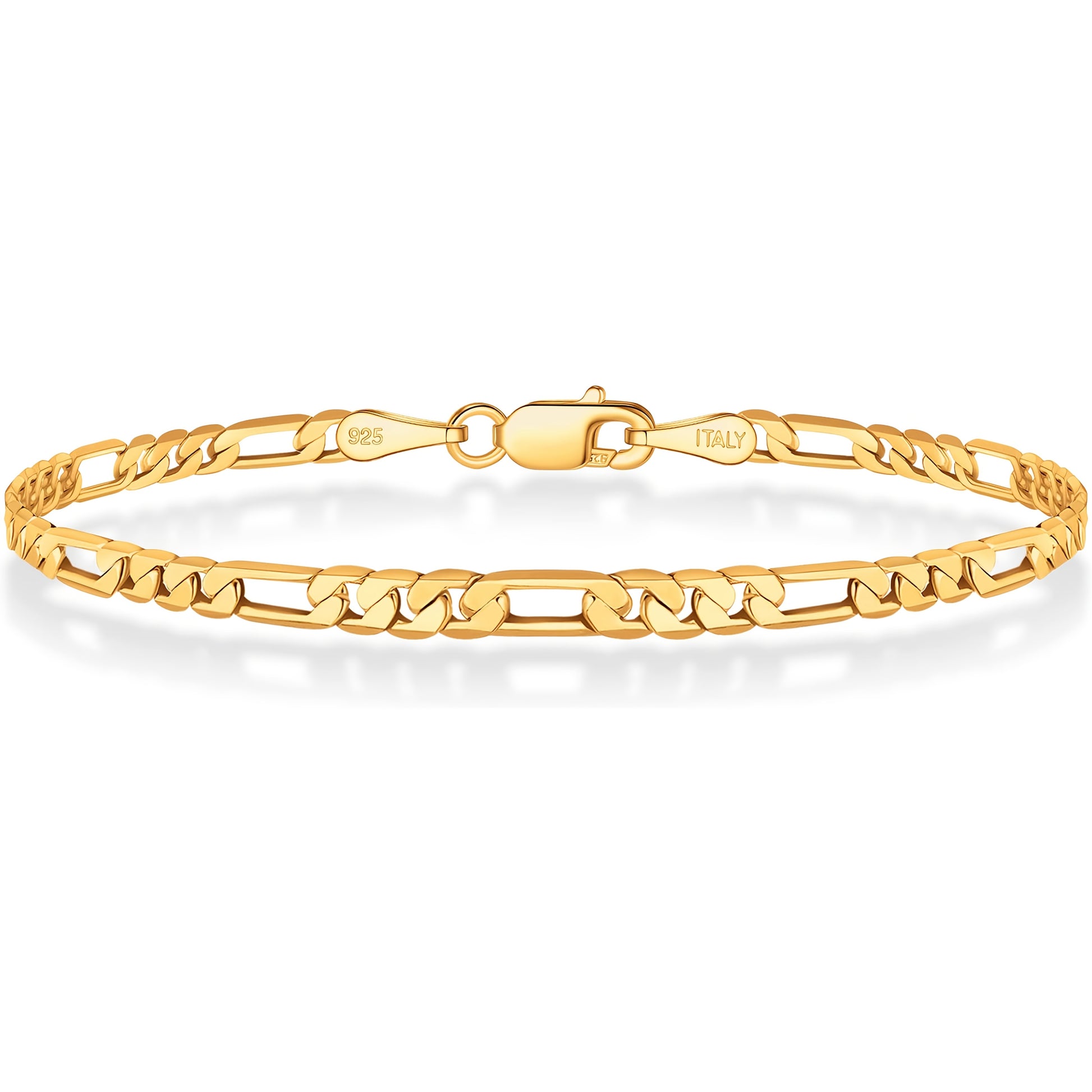 925 Sterling Silvery Plated 18K Gold Plated Figaro Bracelet for Men and Women, A Gift for Men, Boyfriends, Friends, Suitable for Daily, Party Wear, with a Beautiful Gift Box