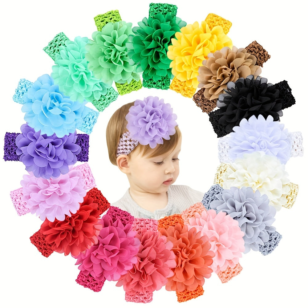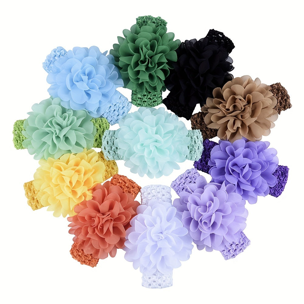 9pcs Youngsters Girls Chiffon Hollow Elastic Wide Hairband, Hairband, DARBINY