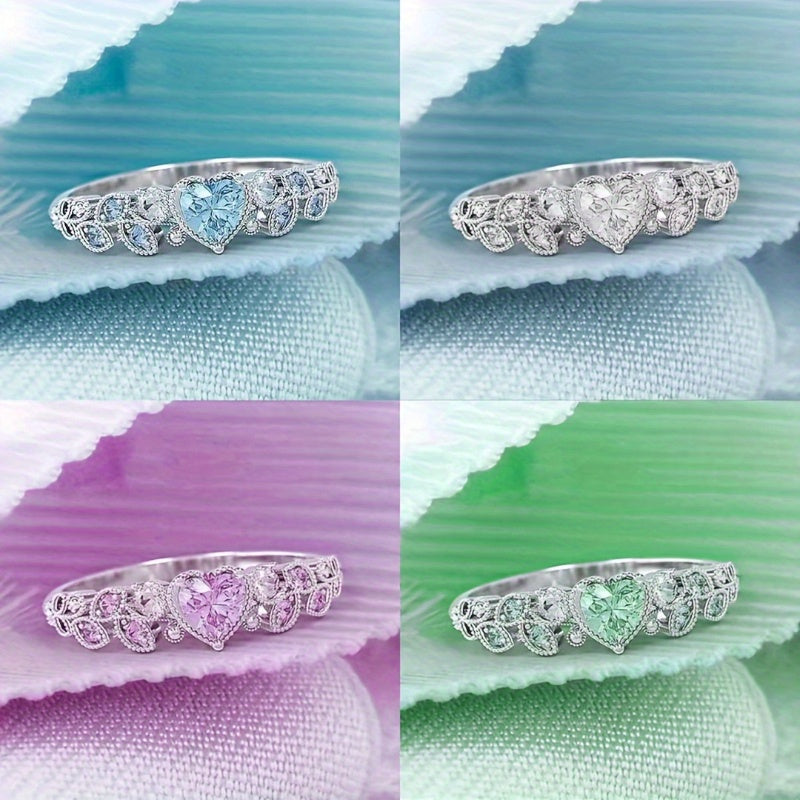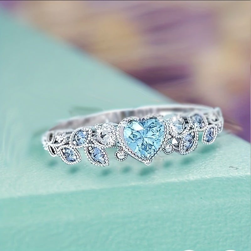 A delicate zirconia ring for ladies, with noble leaves and heart-shaped rings, a luxurious jewelry gift for ladies