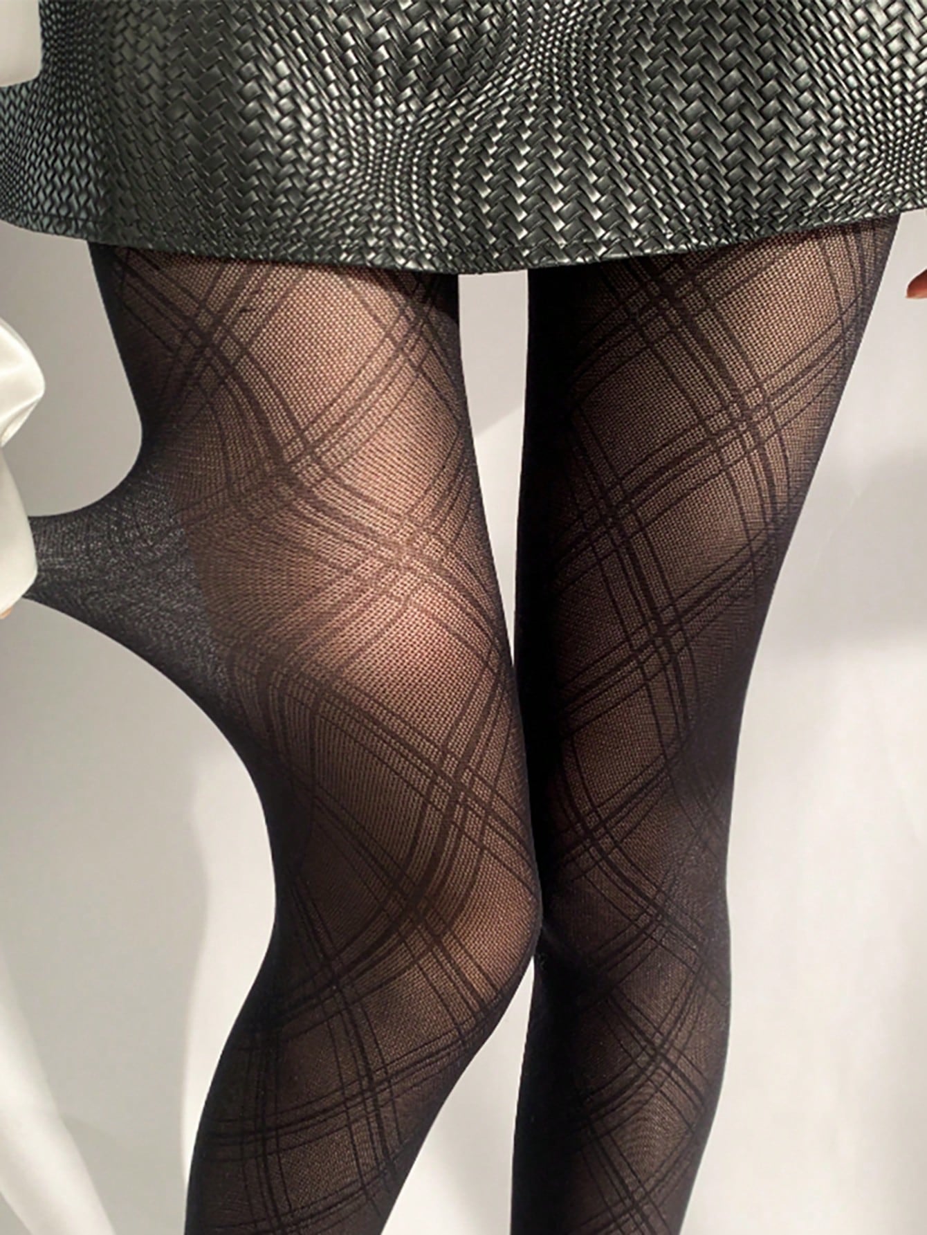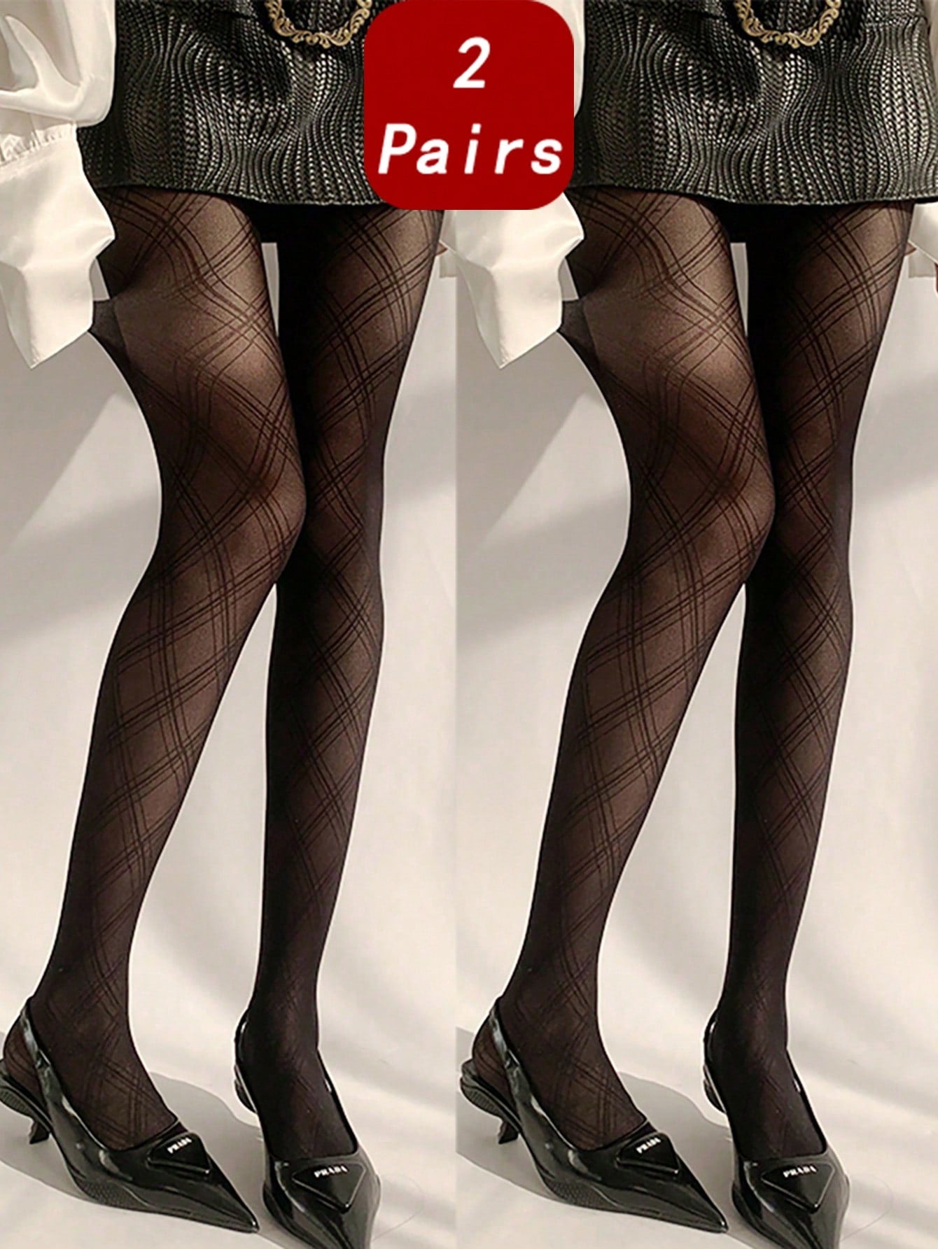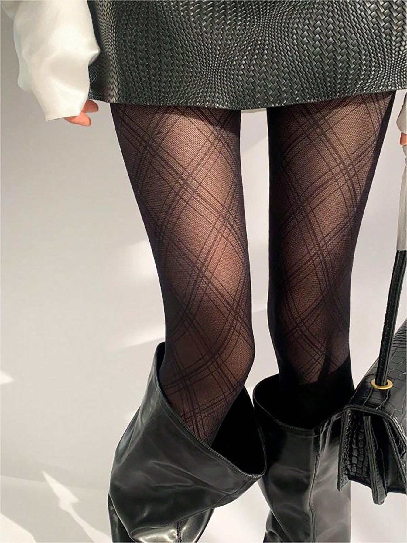 A Pair Of Thin Style Checkered Stockings With Diamond Pattern, Thin Black Silk Pantyhose, Beautiful Leg Bottoms, JK Grid Stripes, Geometric Pattern, Niche, Purely Sexy Tight Socks