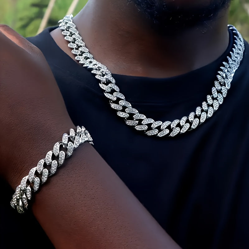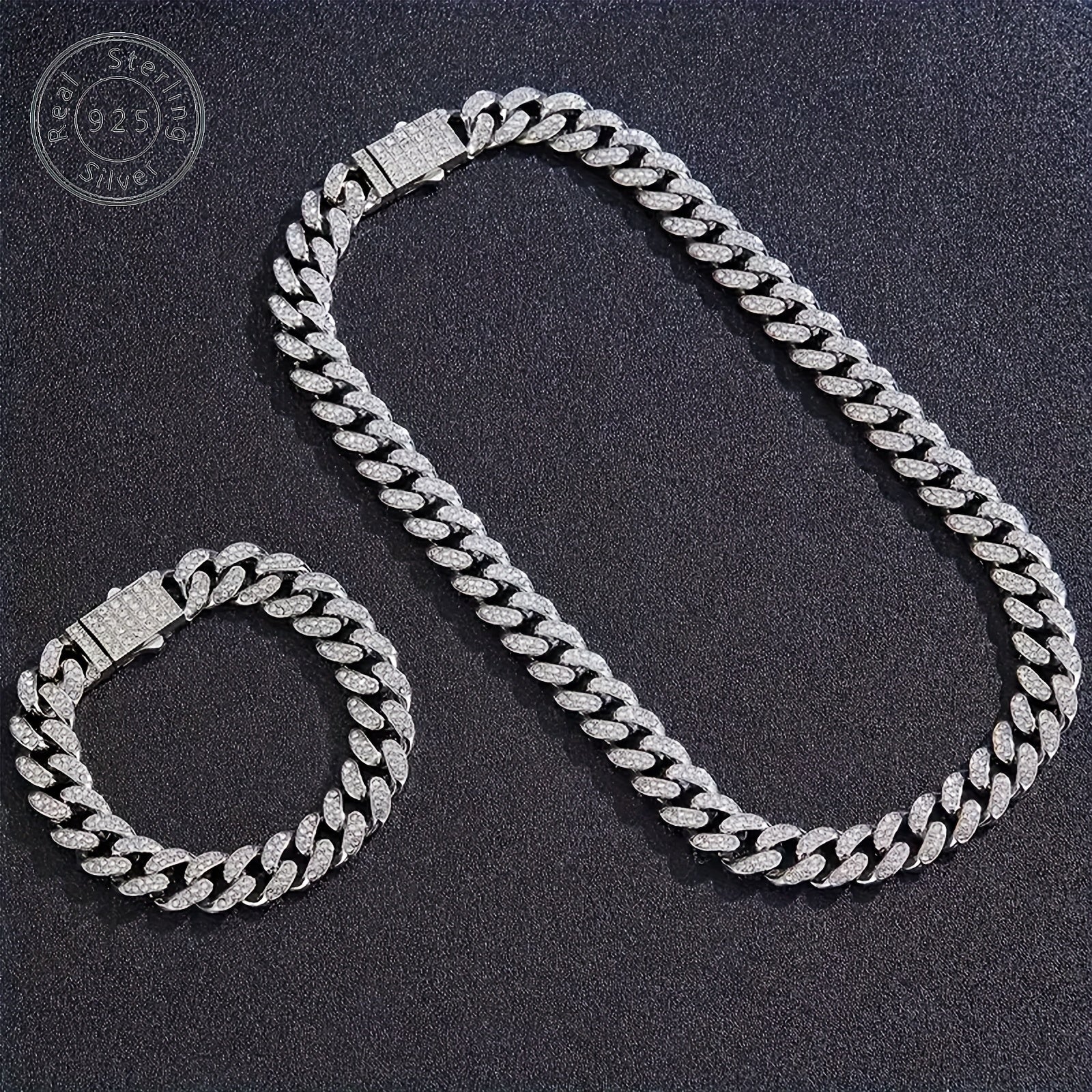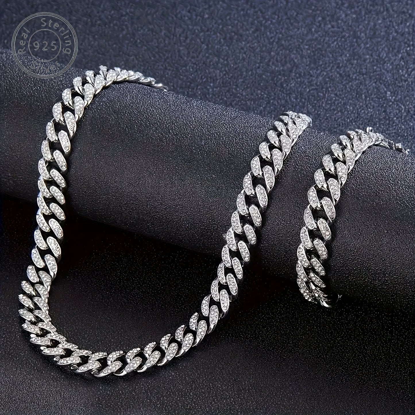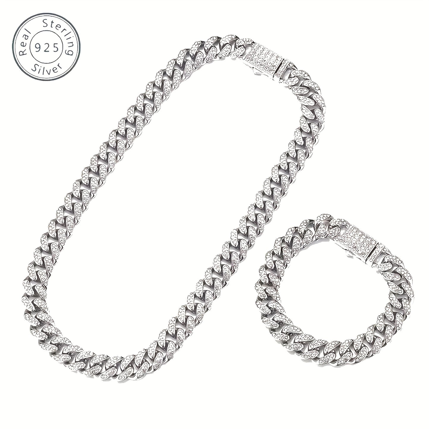A Set Of Two 925 Silver Items, A Silvery Cuban Necklace And Bracelet, With A Hip-hop Style, Suitable For Daily Wear When Going Out, Simple And Fashionable, Perfect For Birthday Or Anniversary Gifts, Comes With An Exquisite Gift Box.