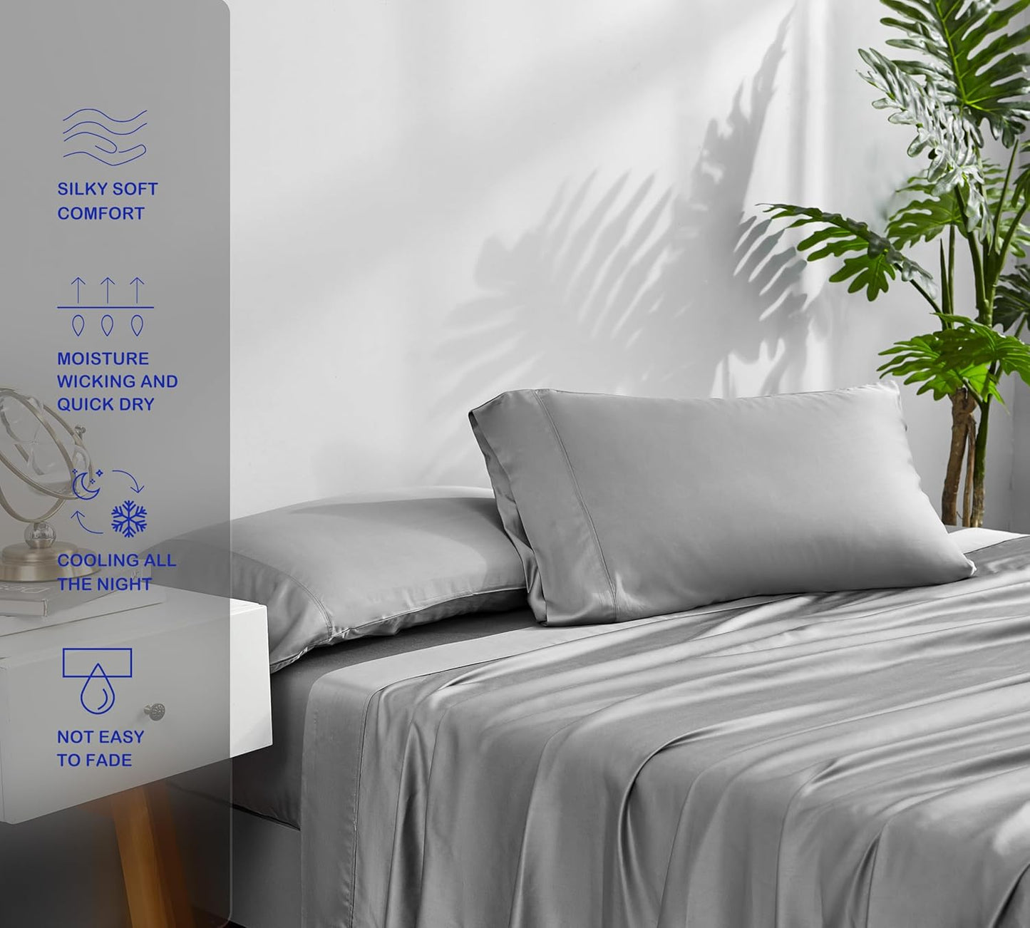 ACCURATEX Cooling Sheets King Size Grey - Viscose Made from Bamboo, Luxury Hotel Sheet Set for King Size Bed, Super Soft Breathable Bedding Sheets up to 16 inches Deep Pockect
