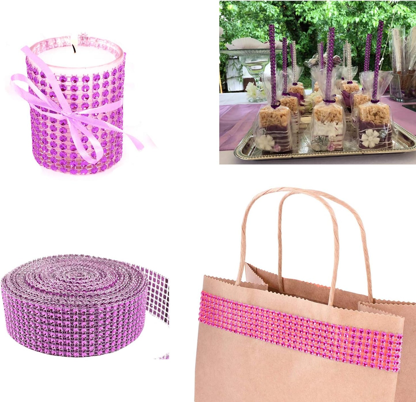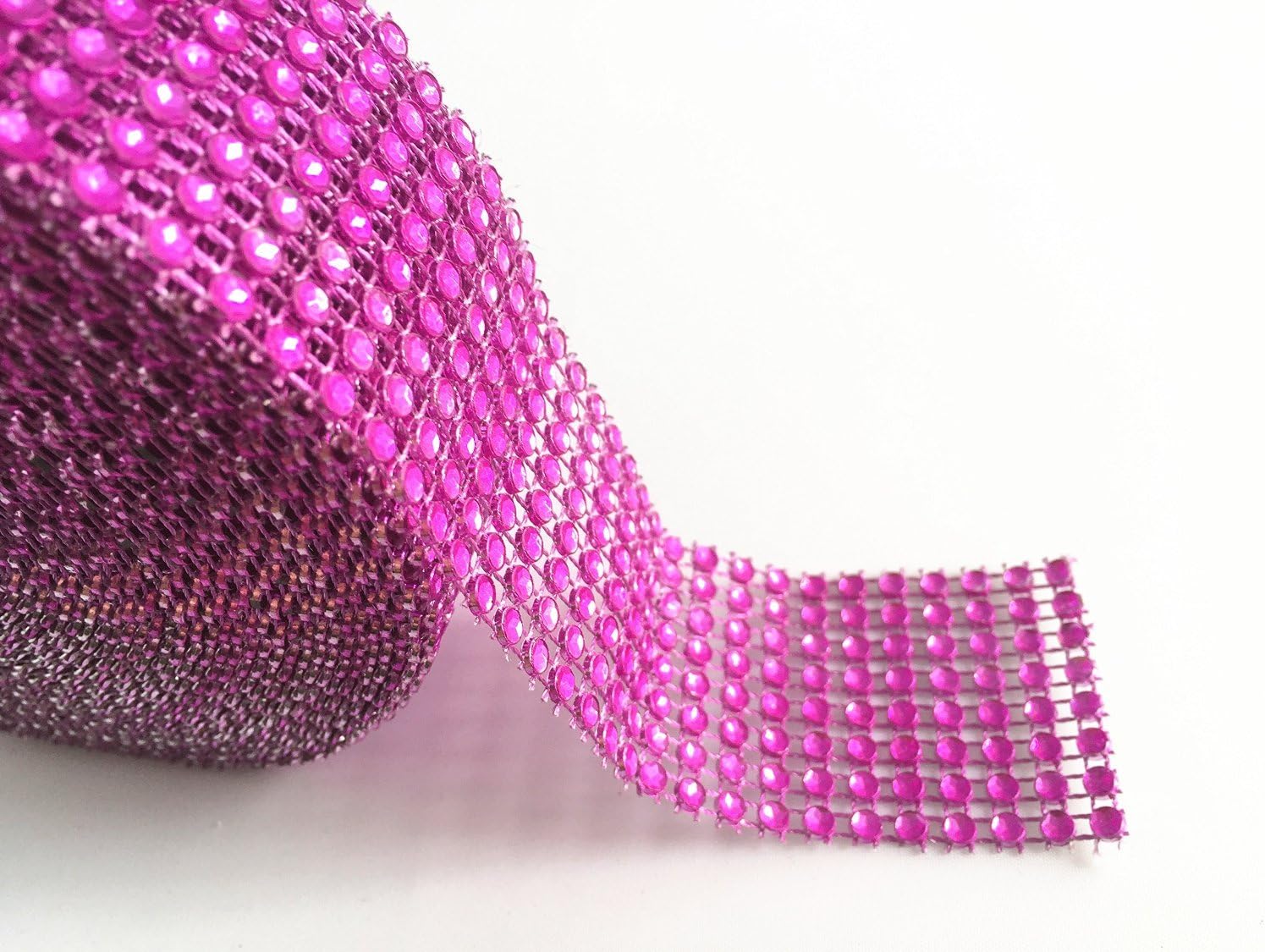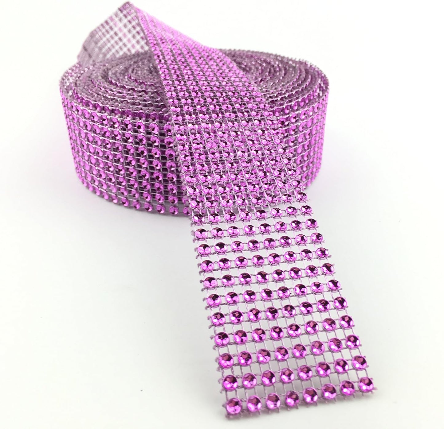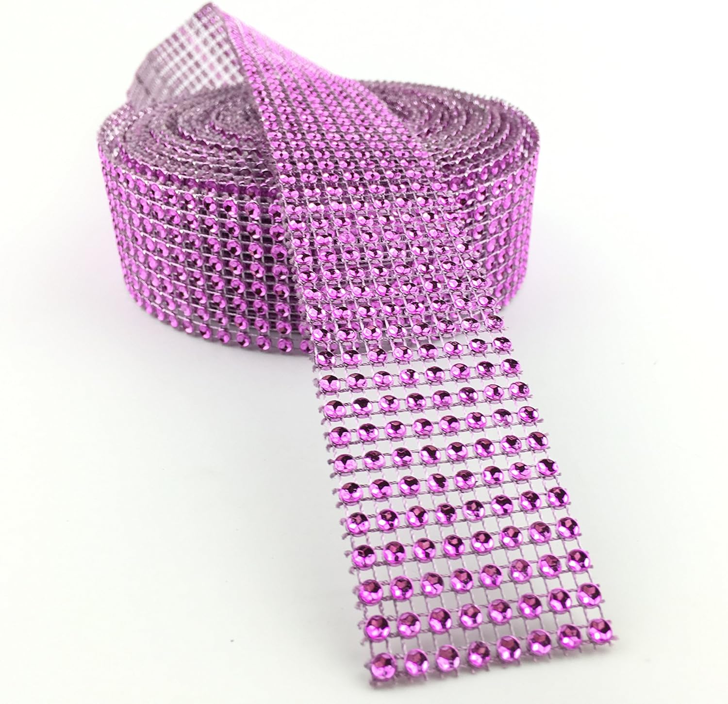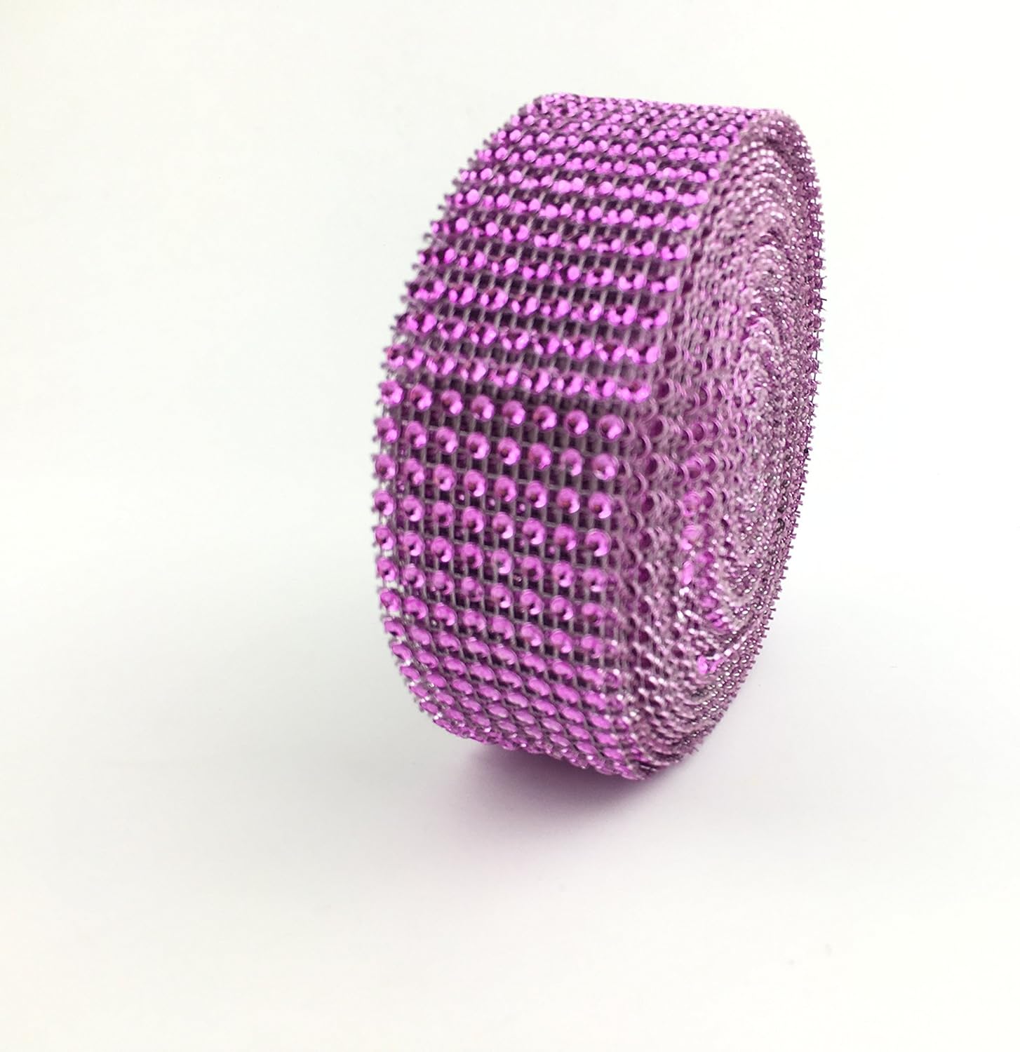 Dimensions1.55"W x 10yard (30ft), Pink Purple,30ft 8 Row Purple Diamond Rhinestone Mesh. Best for Birthday Wedding Decorations,Wedding Cakes, Party Supplies,Baby Shower Events, Arts Crafts Projects Diamond Mesh Wrap for Decorations.Great for any occasion decorations, create brilliant elegant accents to your accessories with bright glittering mesh ,Perfect for wedding bouquets, tables, candles, vases, cake stands, chairs and other special event decor to provide a truly platinum look.