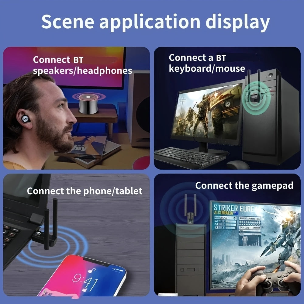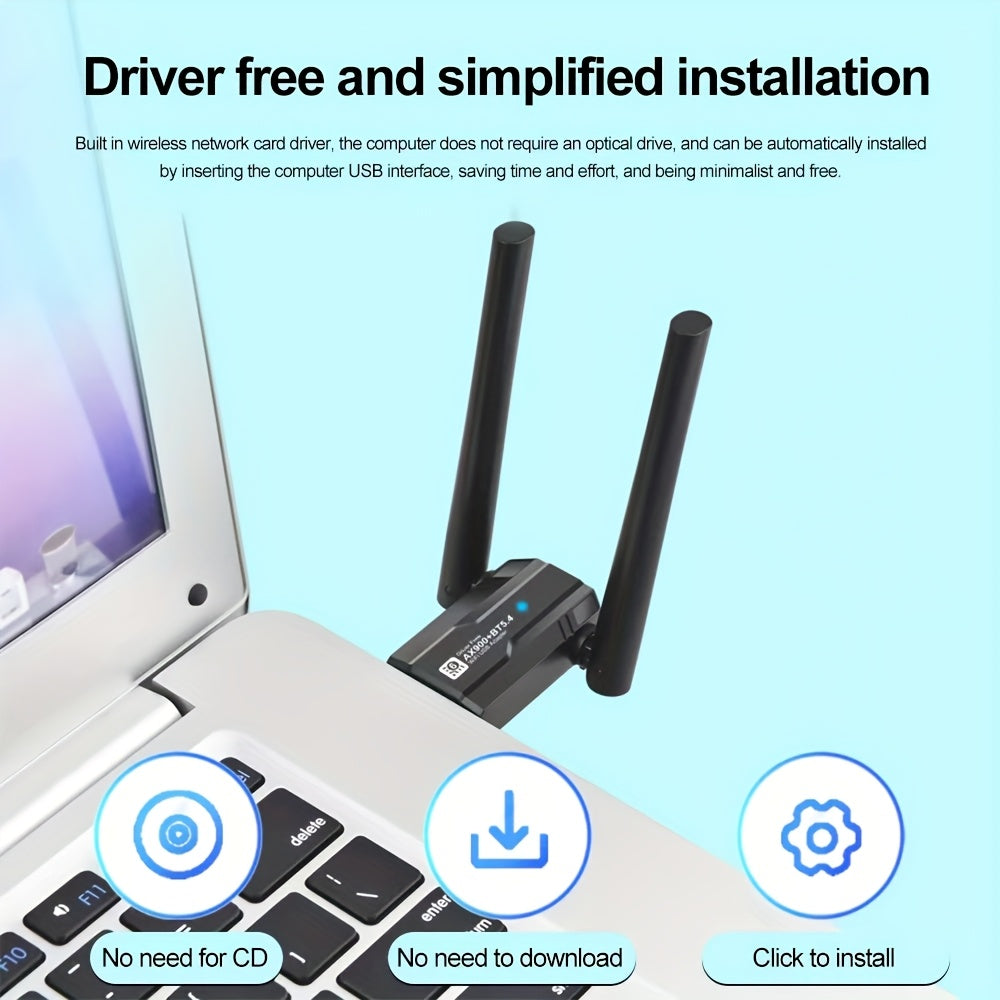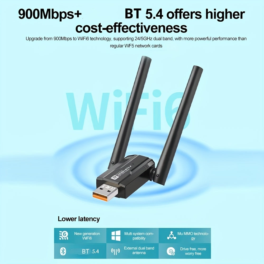Adaptateur de réseau WiFi 5G double bande AX900M, sans fil USB 5.4, configuration sans outil, adaptateur PC/Mac, antennes sans fil doubles, mode alimentation USB, Wi-Fi 2.0