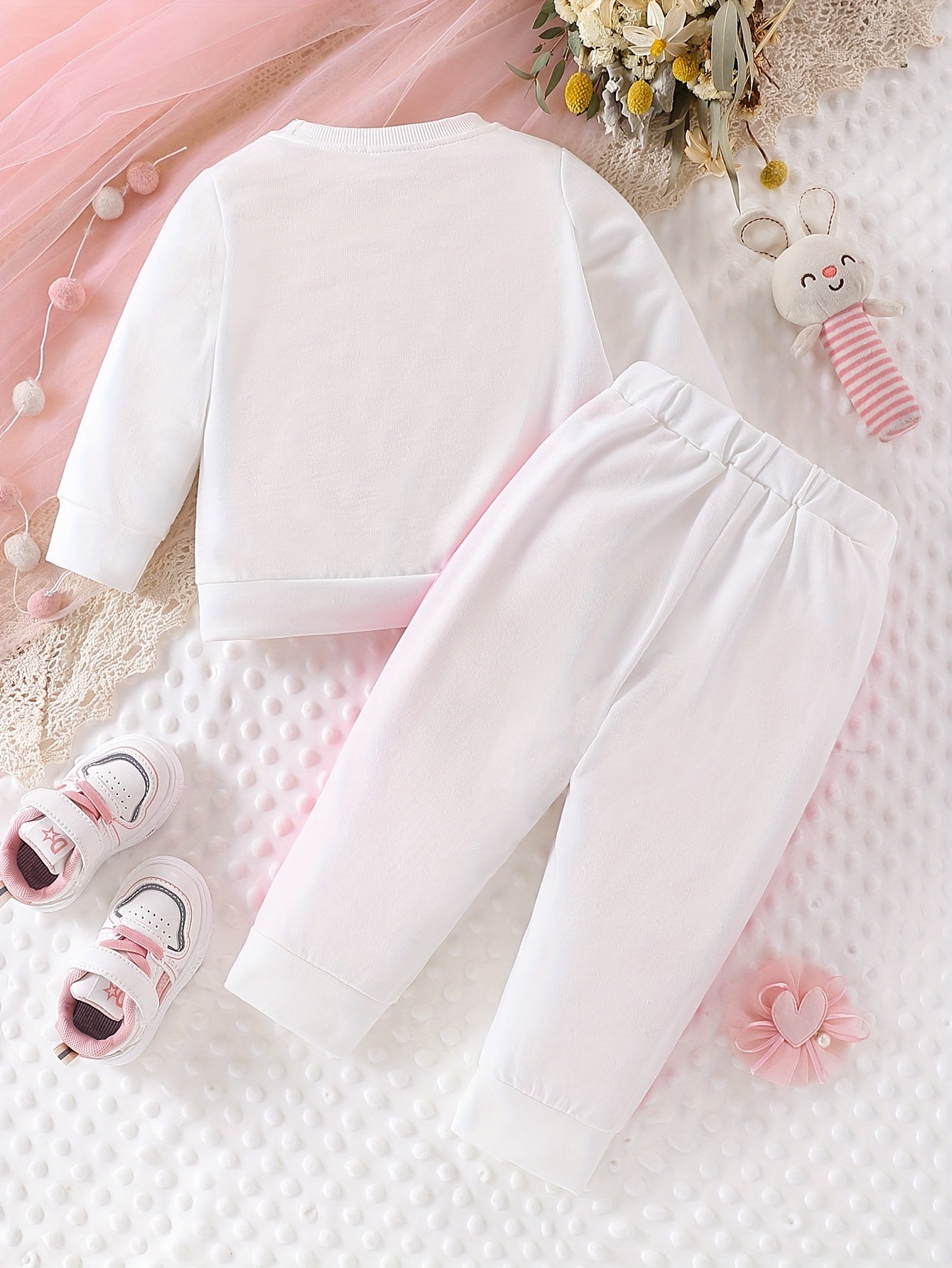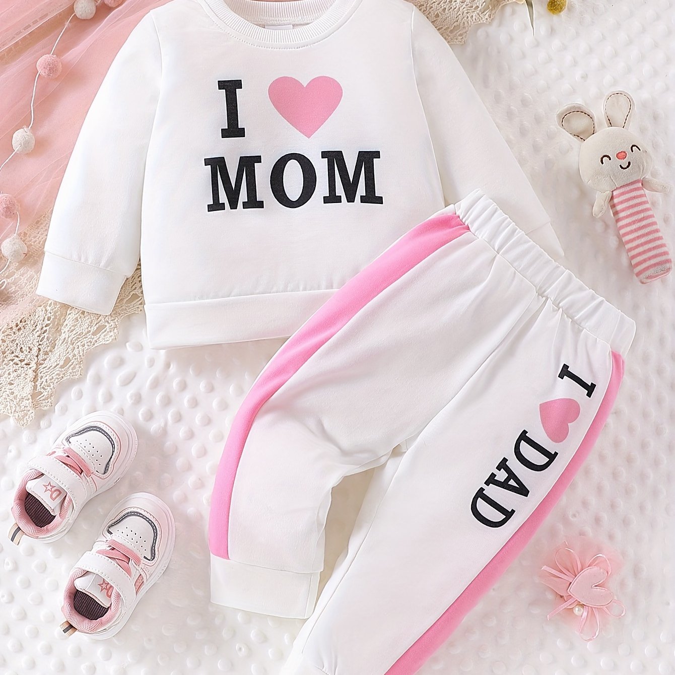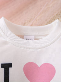 Adorable 'I Love Mom' Letter & Heart Print Knit Fabric T-Shirt and Pants Set for Baby Girls - Cozy Casual Outfit with Elastic Waistband, Perfect for Fall/Winter, Baby Girl Clothes, Perfect for Outdoor