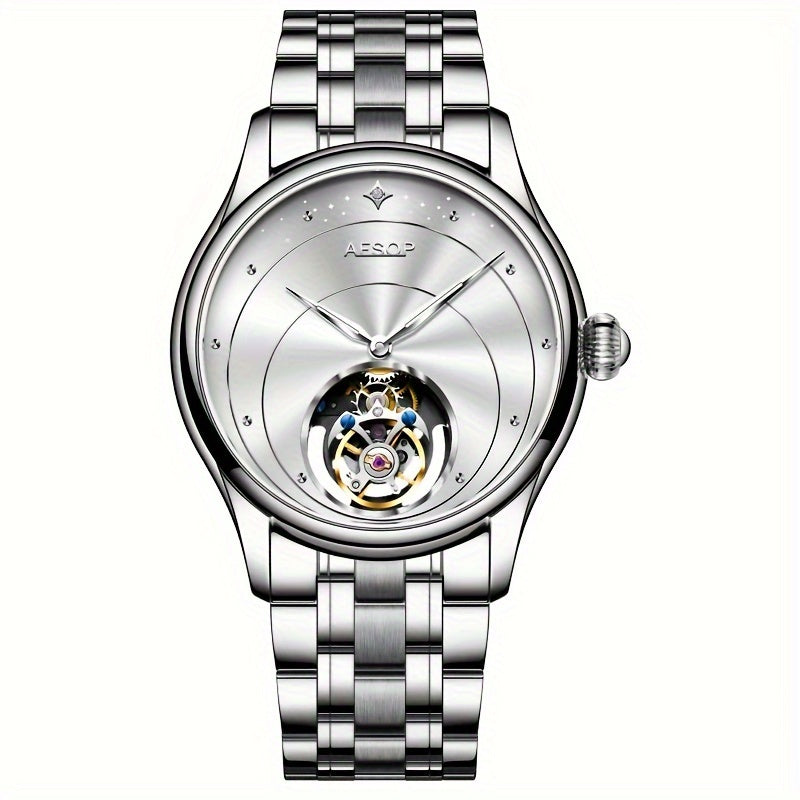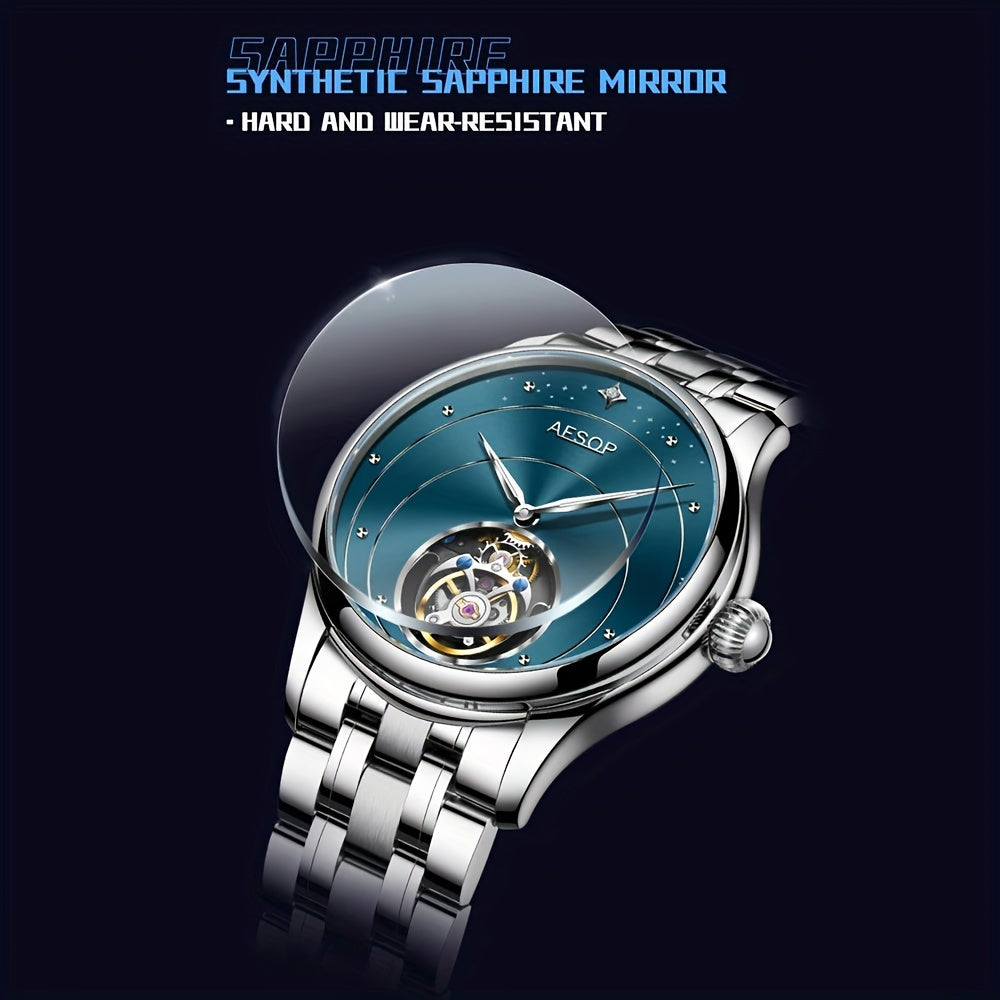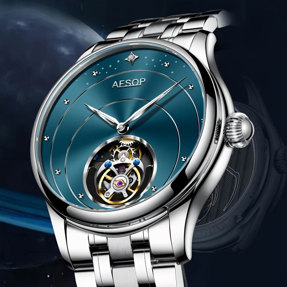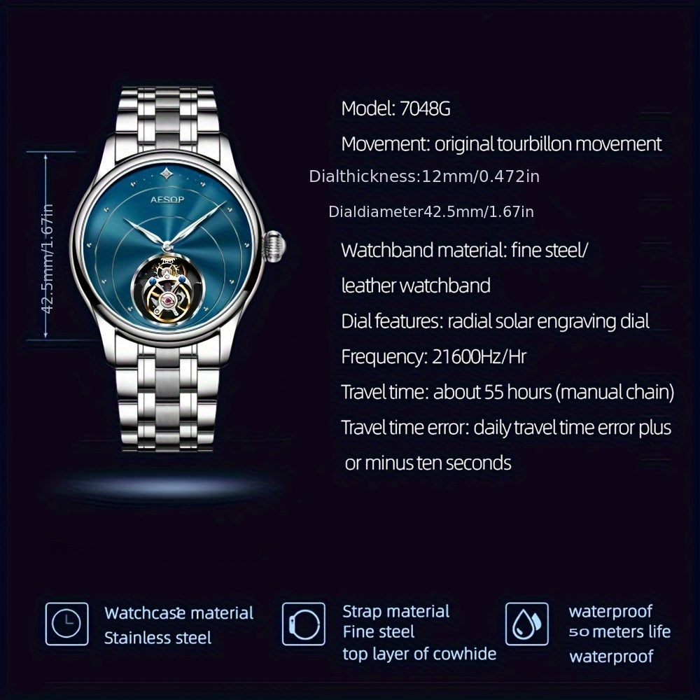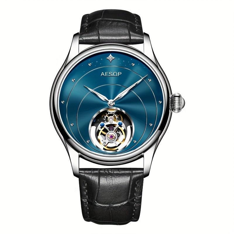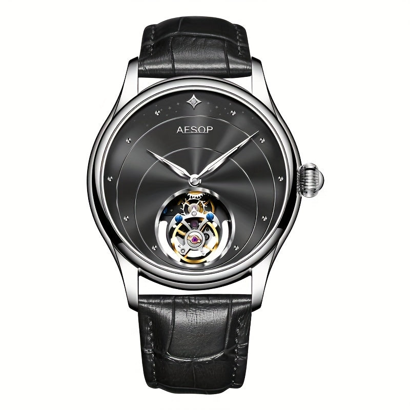 AESOP] Men's Mechanical Tourbillon Watch, Luxury Skeleton Movement, Synthetic Sapphire Manual Winding Watch, Holiday Gift