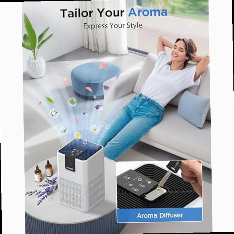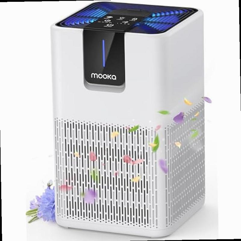 Air Purifiers for Home Large Room Up to 1250 Ft MOOKA H13 HEPA Air Purifier for Pets Dust Odor Smoke Aromatherapy Function Air Cleaner with 15dB Quiet Sleep Mode for Bedroom Office Living Room White