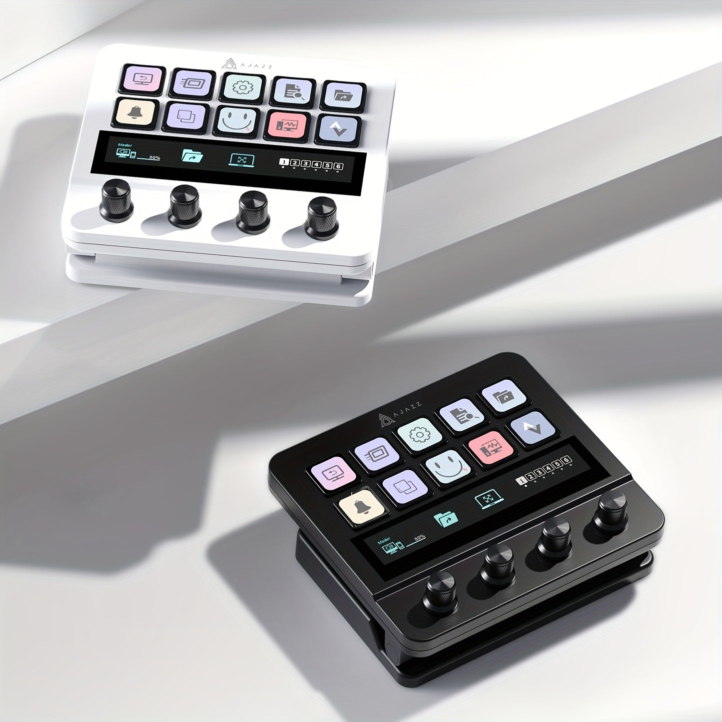 AKP05 Contrôleur de Média Ergonomique avec Écran LCD, Support Réglable & Câble USB - Version Multilingue, Fonctionnalité d'Écran Tactile, 36V ou Moins, Options Blanc et Noir, Télécommande Ergonomique | Interface Conviviale | Akp05Remote