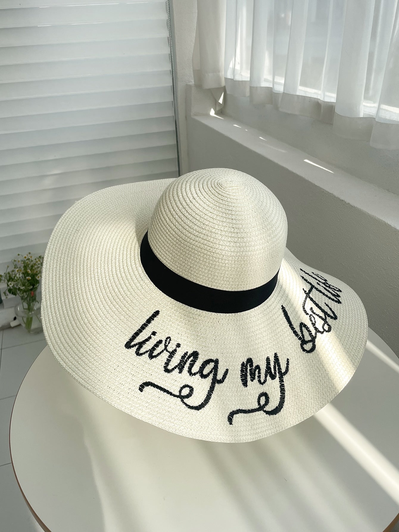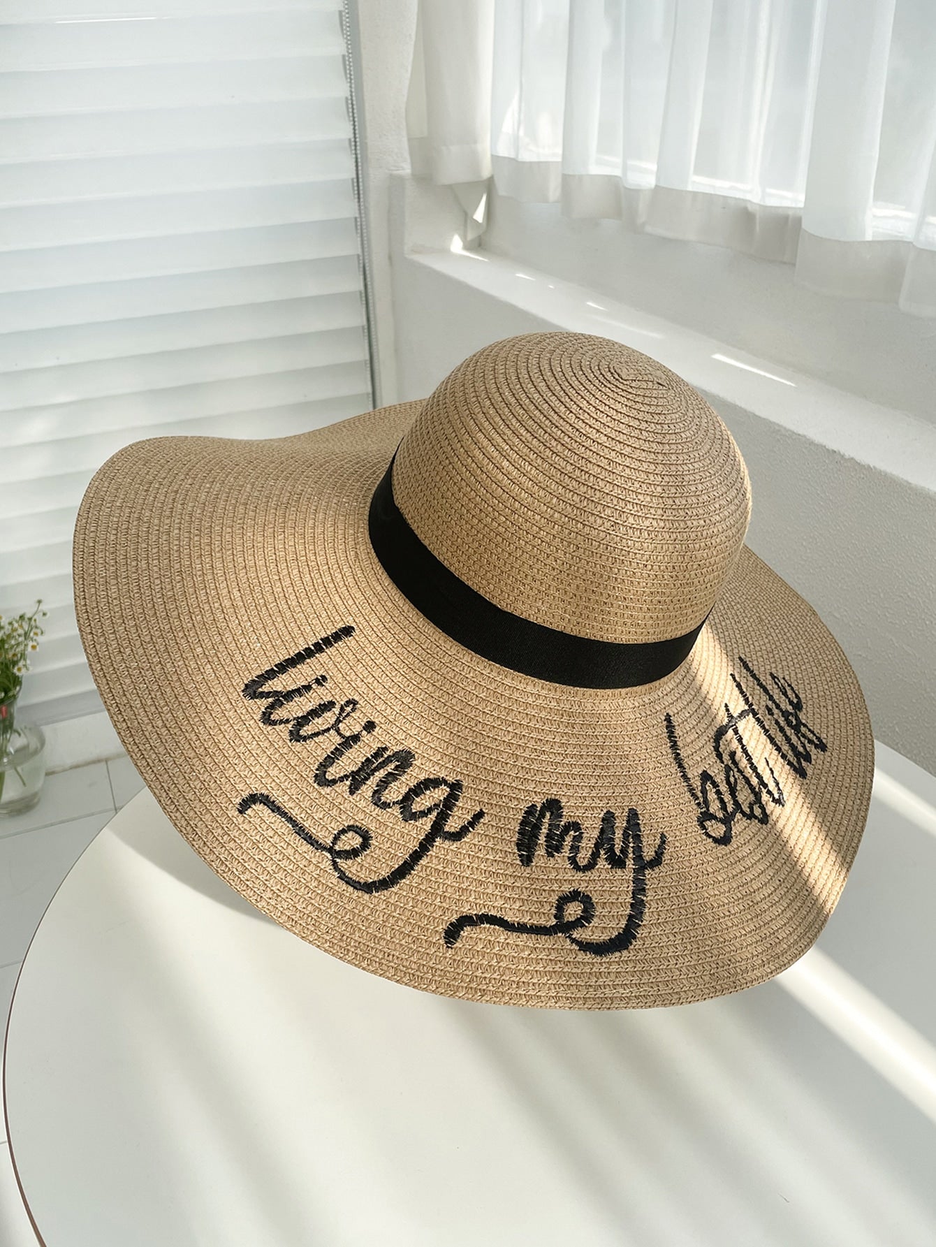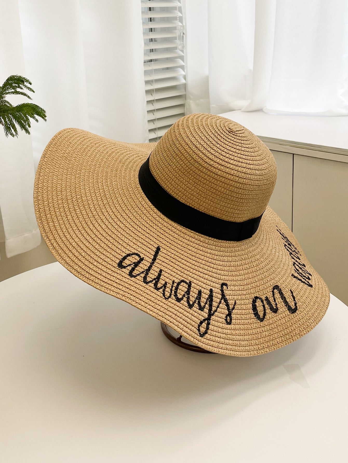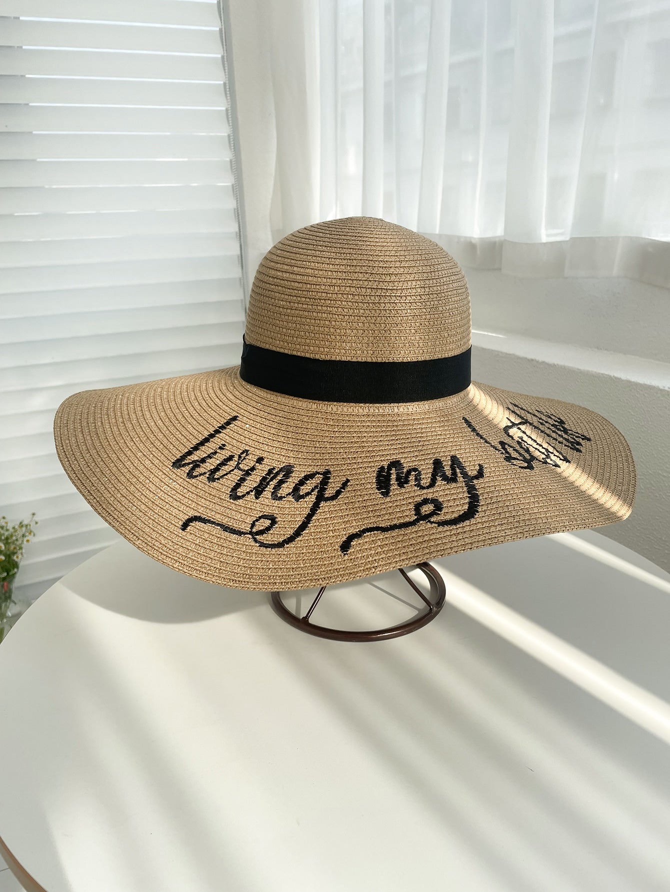Alphabet Pattern Wide Brim Straw Hat Boho
