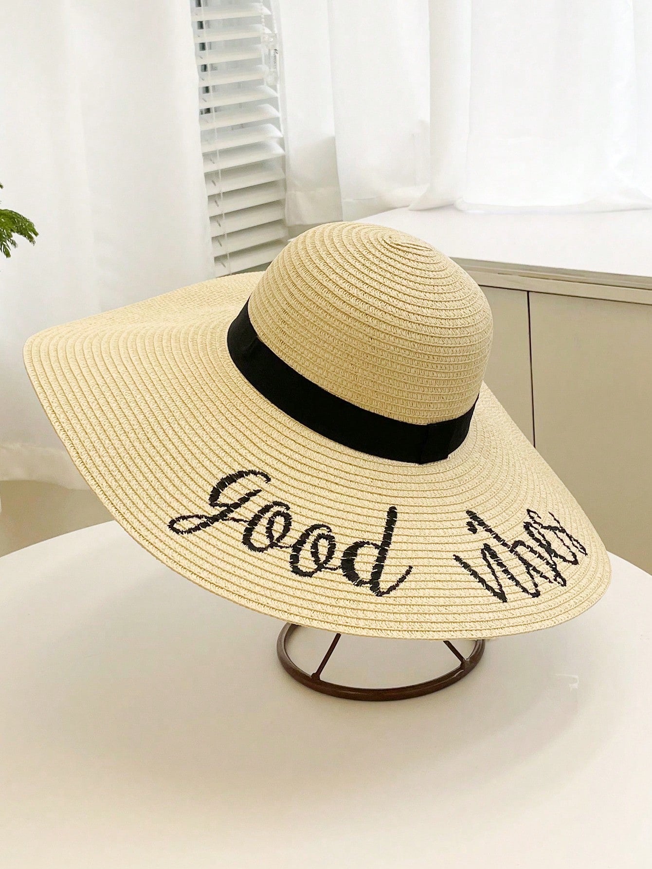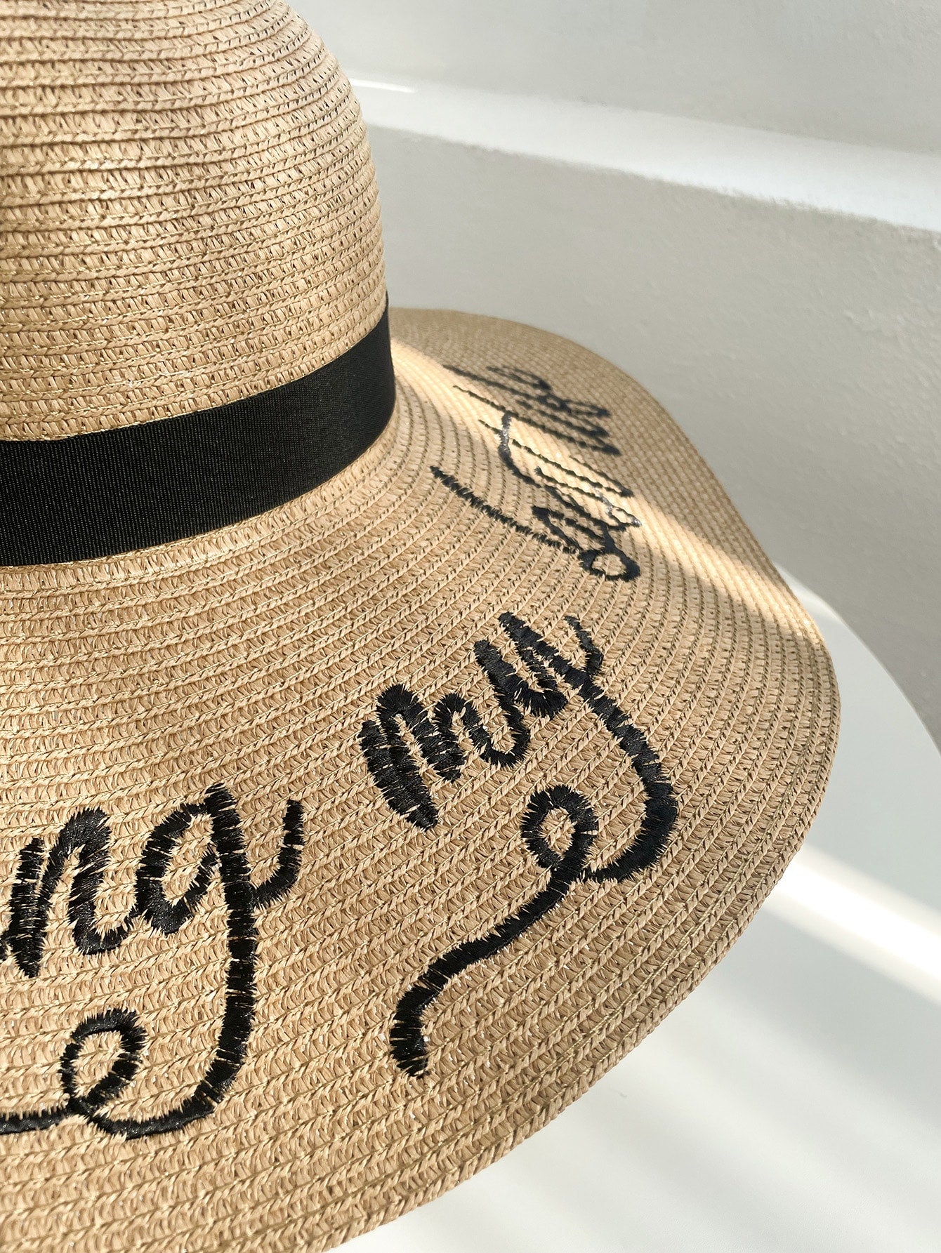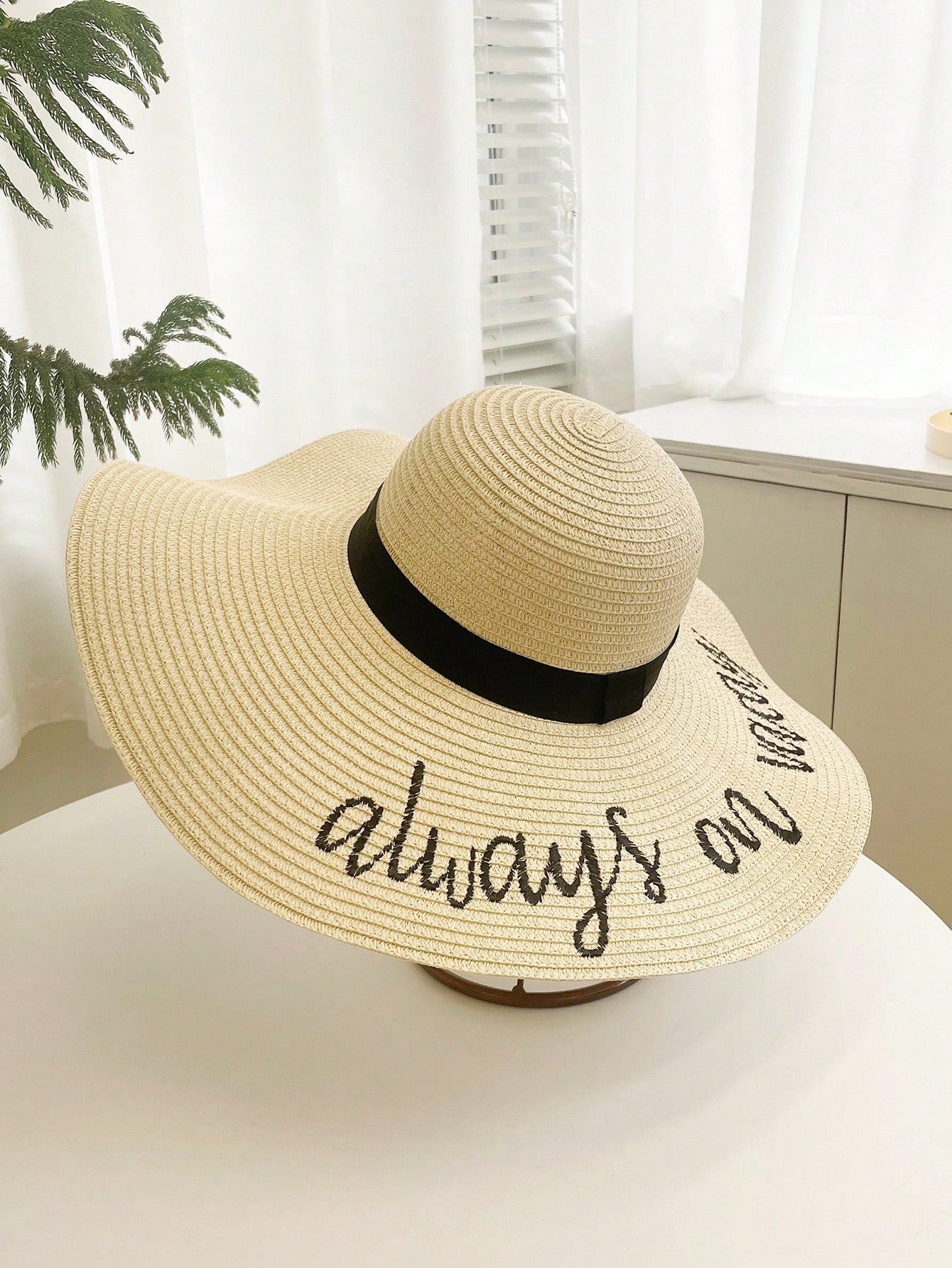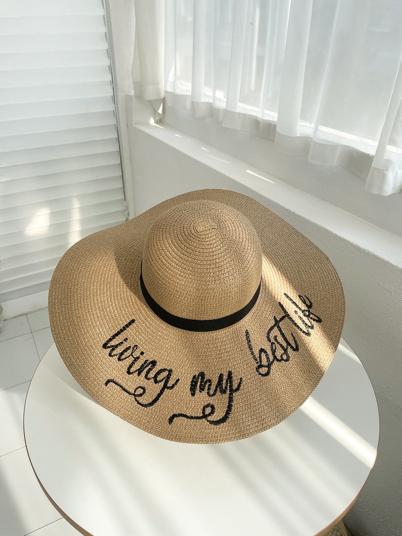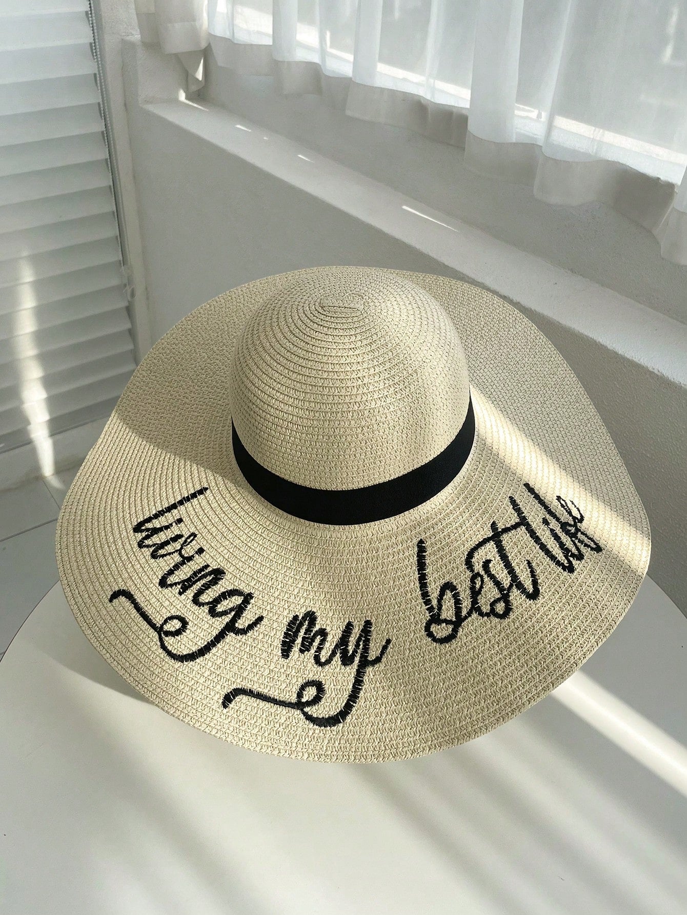 Alphabet Pattern Wide Brim Straw Hat Boho