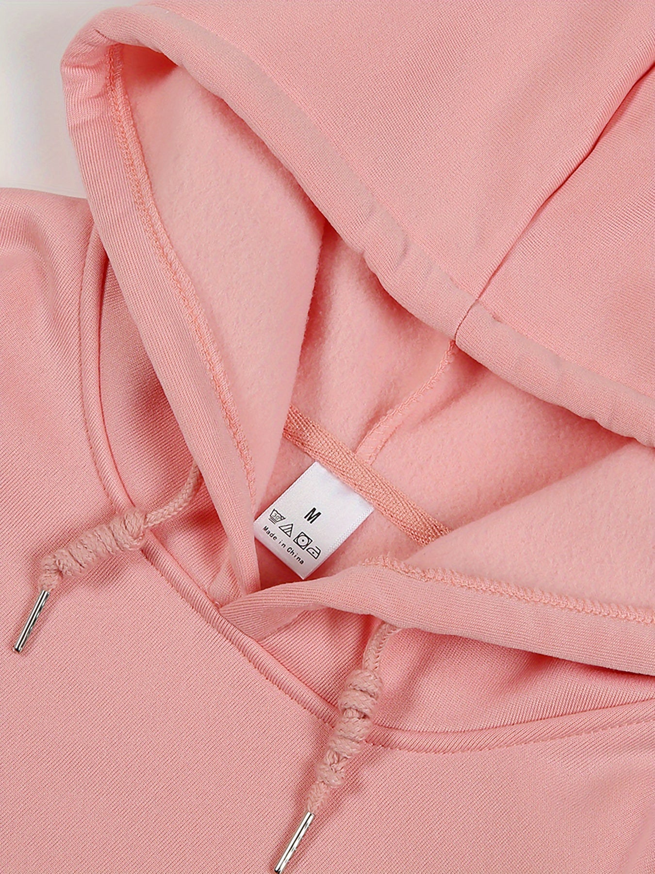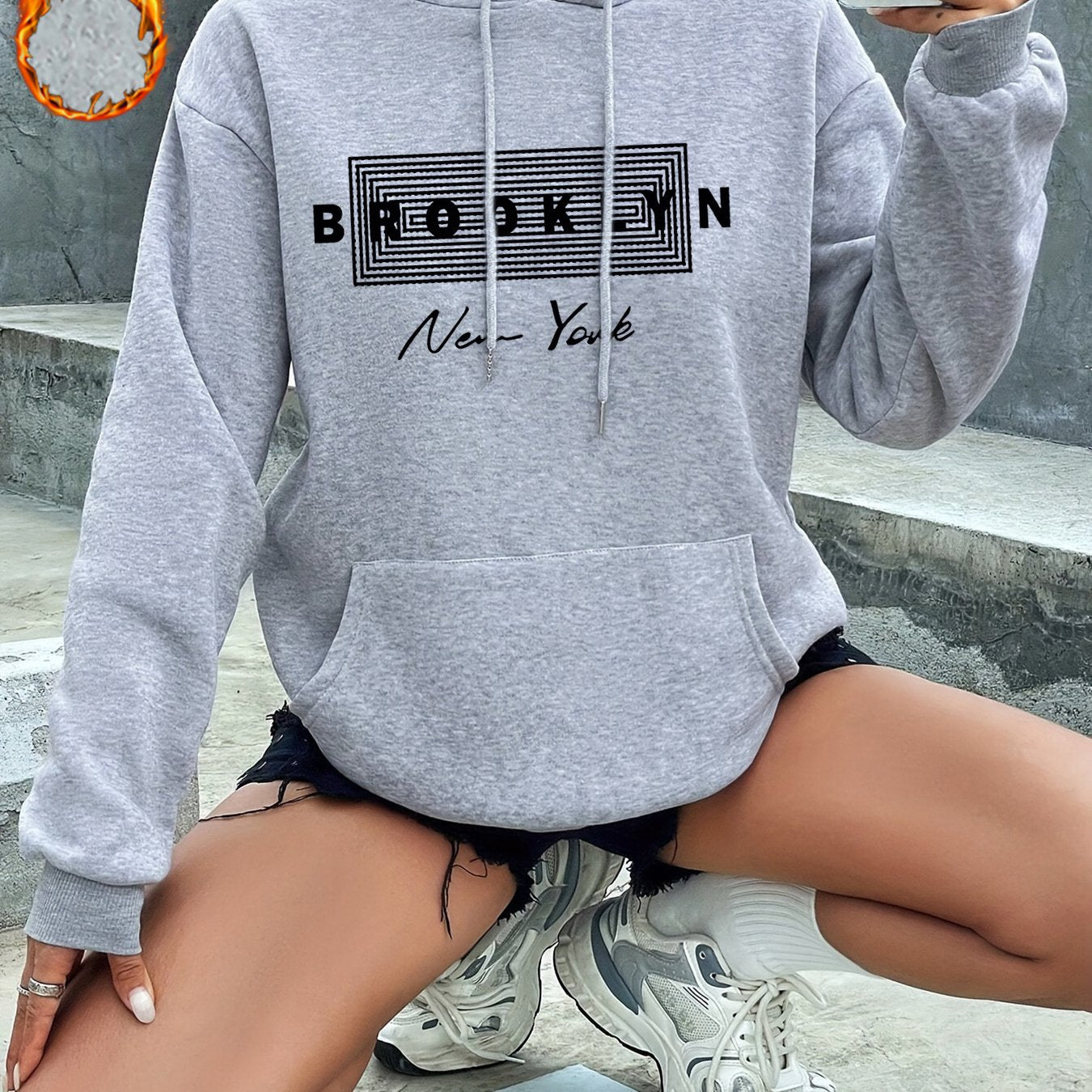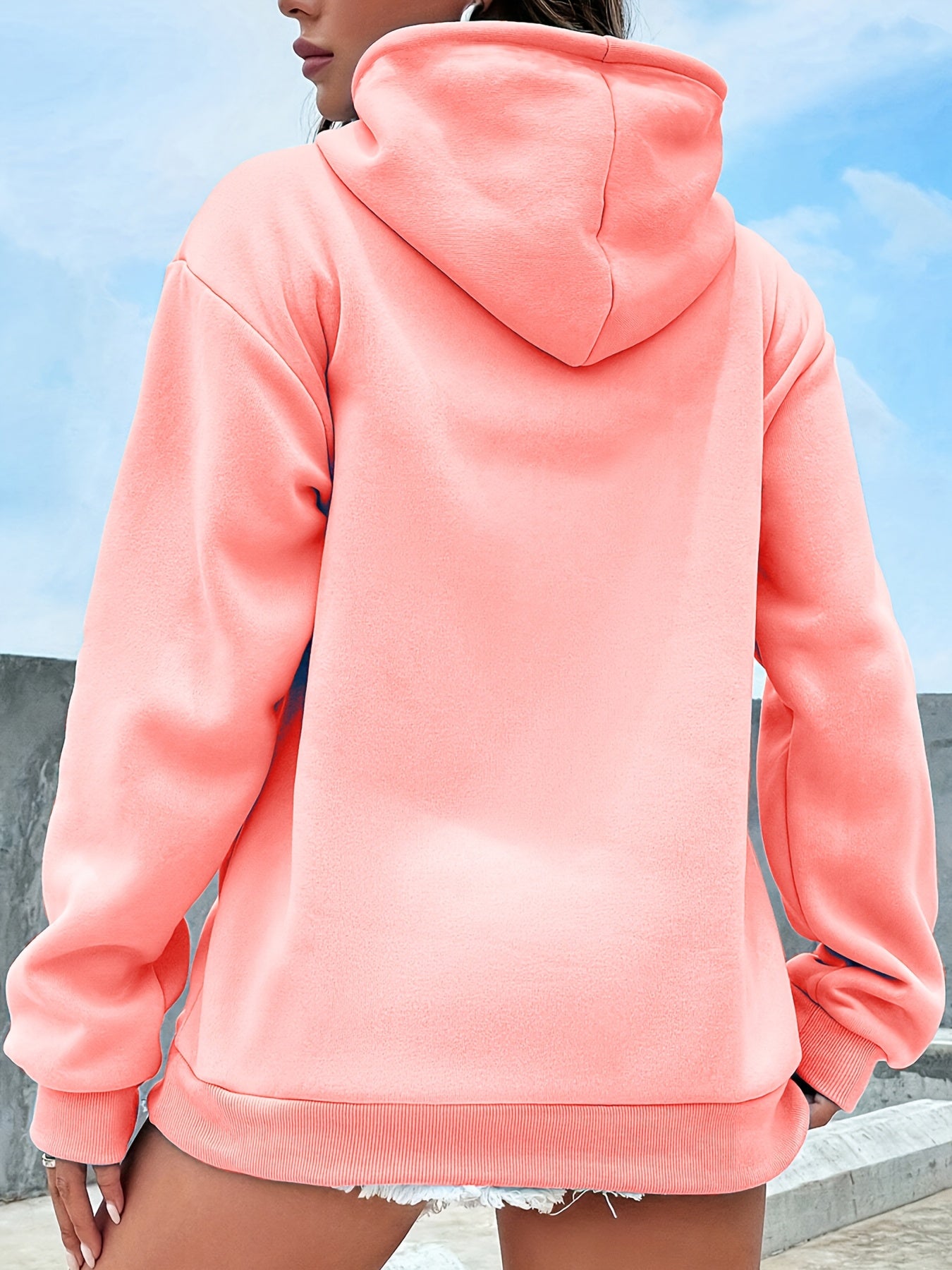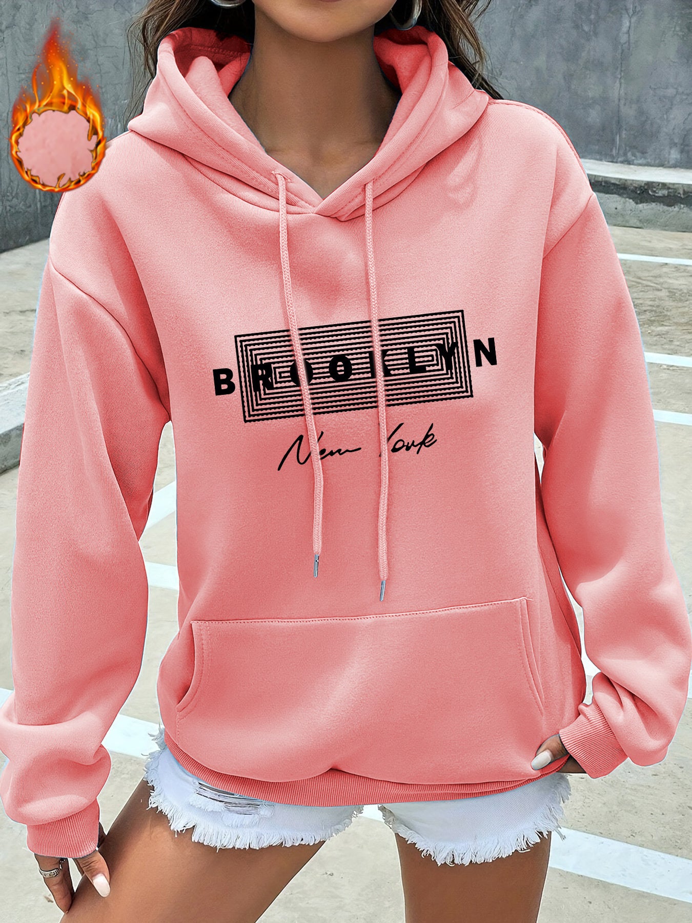 [Alphabet Print Hoodie] Polyester Alphabet Print Hoodie - Women's Casual Regular Length Pullover with Slight Stretch - 250g/m² Fabric Weight